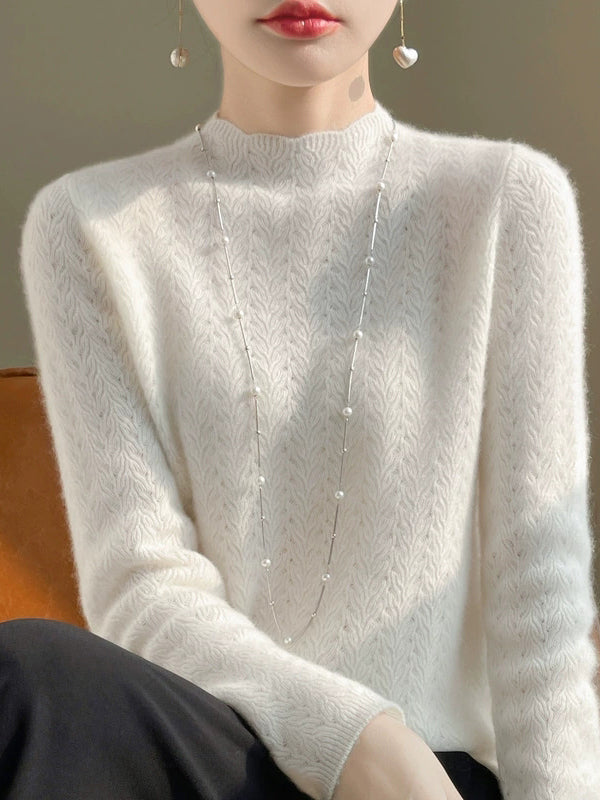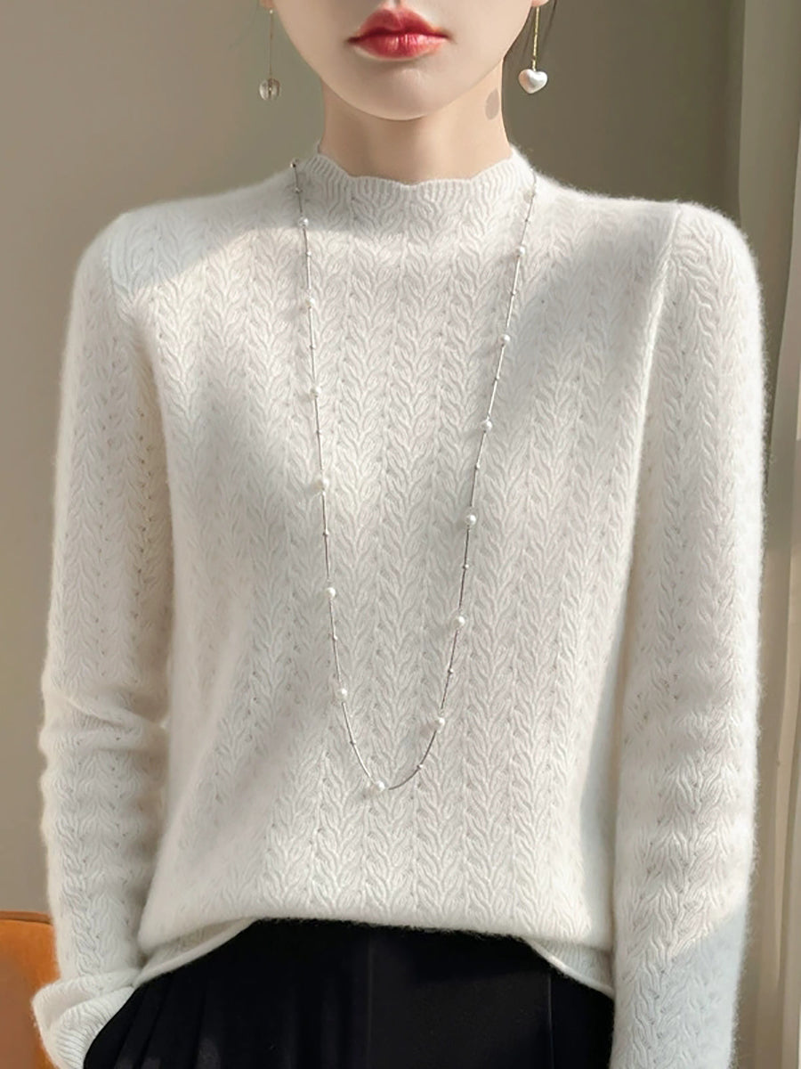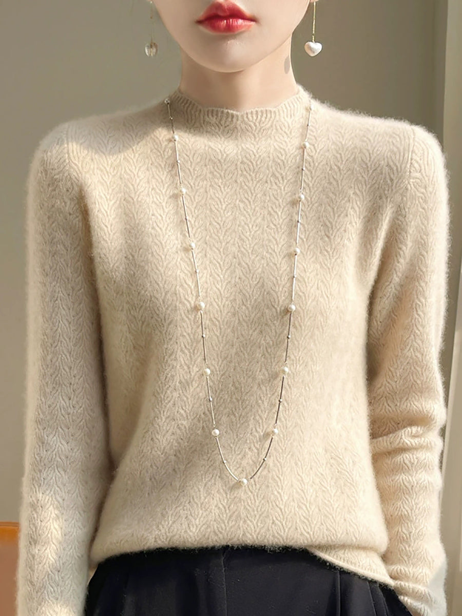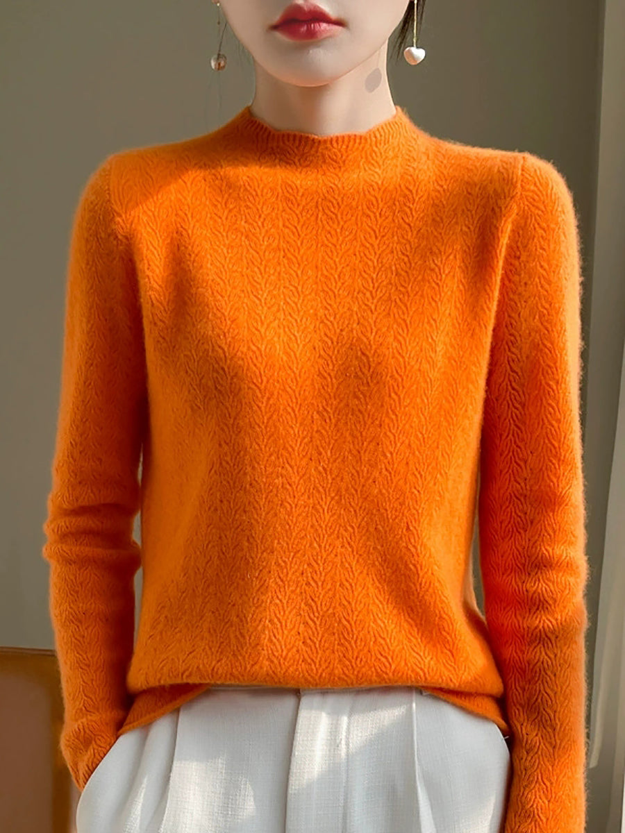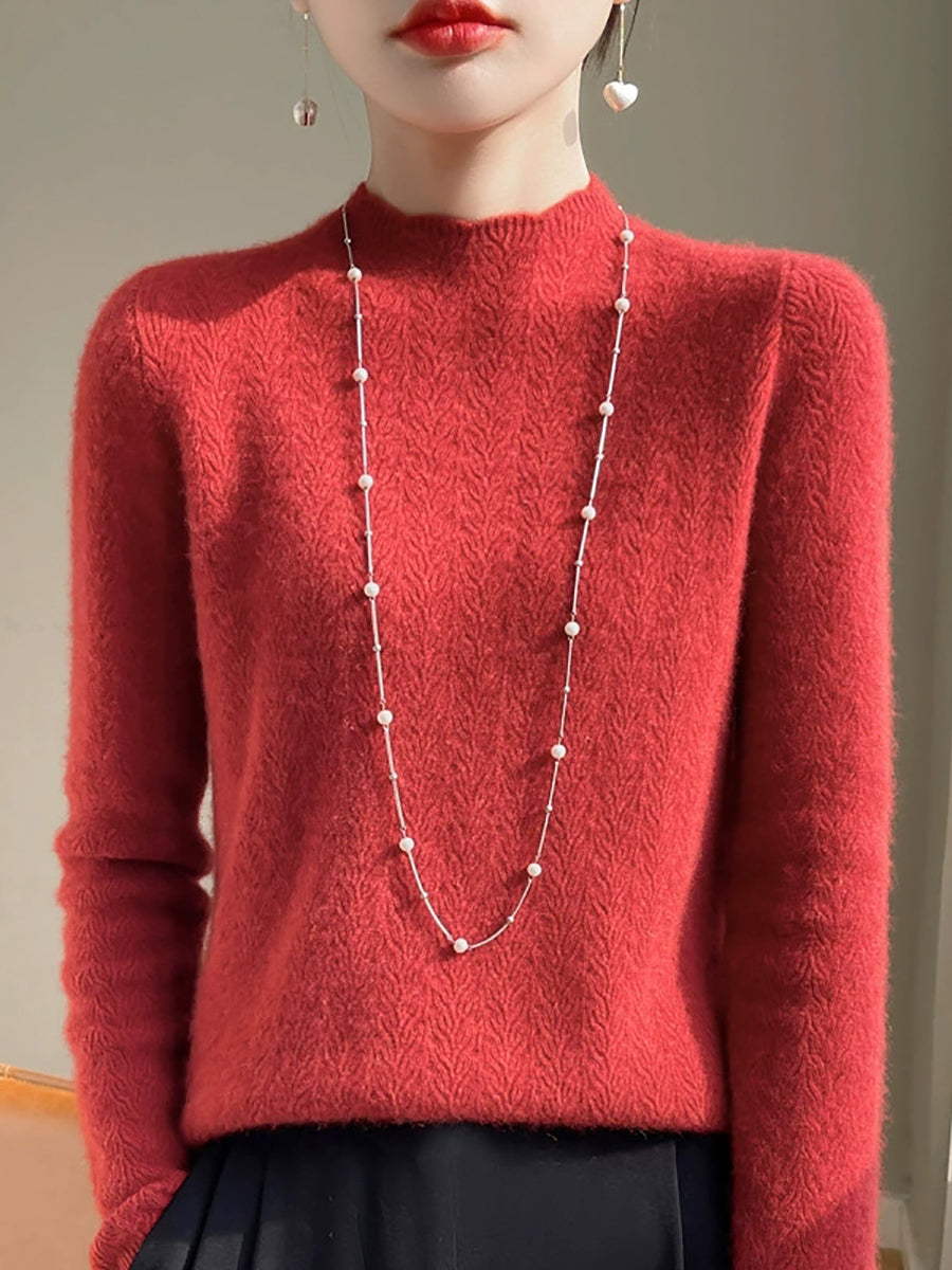 Women Spring Artsy Pure Color Half-turtleneck Sweater