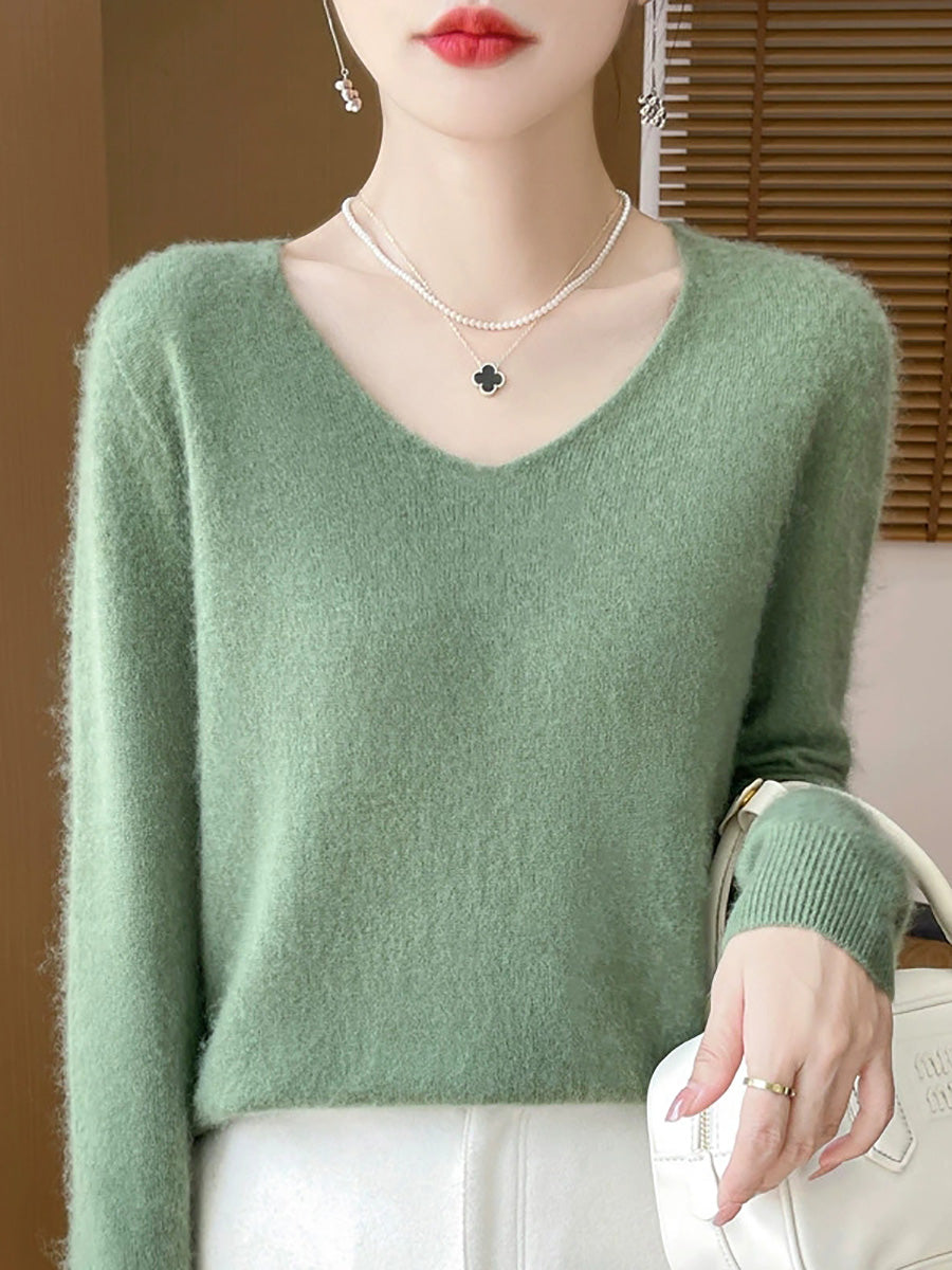 Women Spring Artsy Pure Color V-Neck Sweater