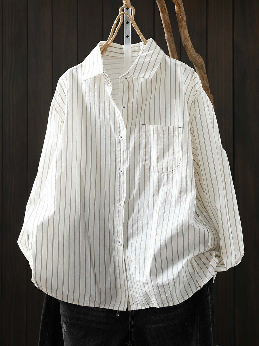 Women Spring Artsy Stripe 100%Cotton Shirt
