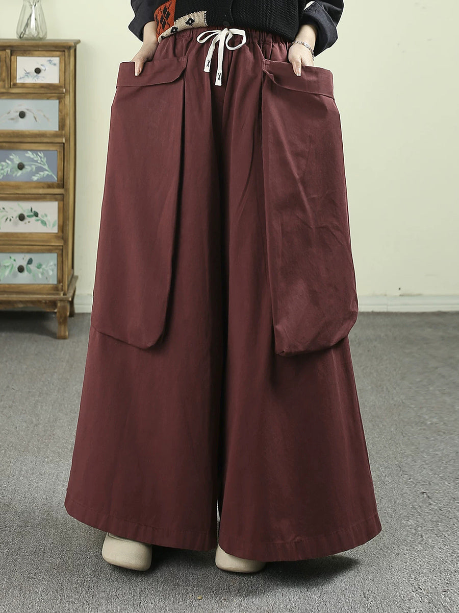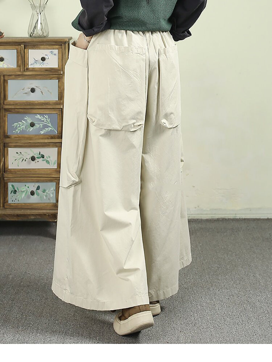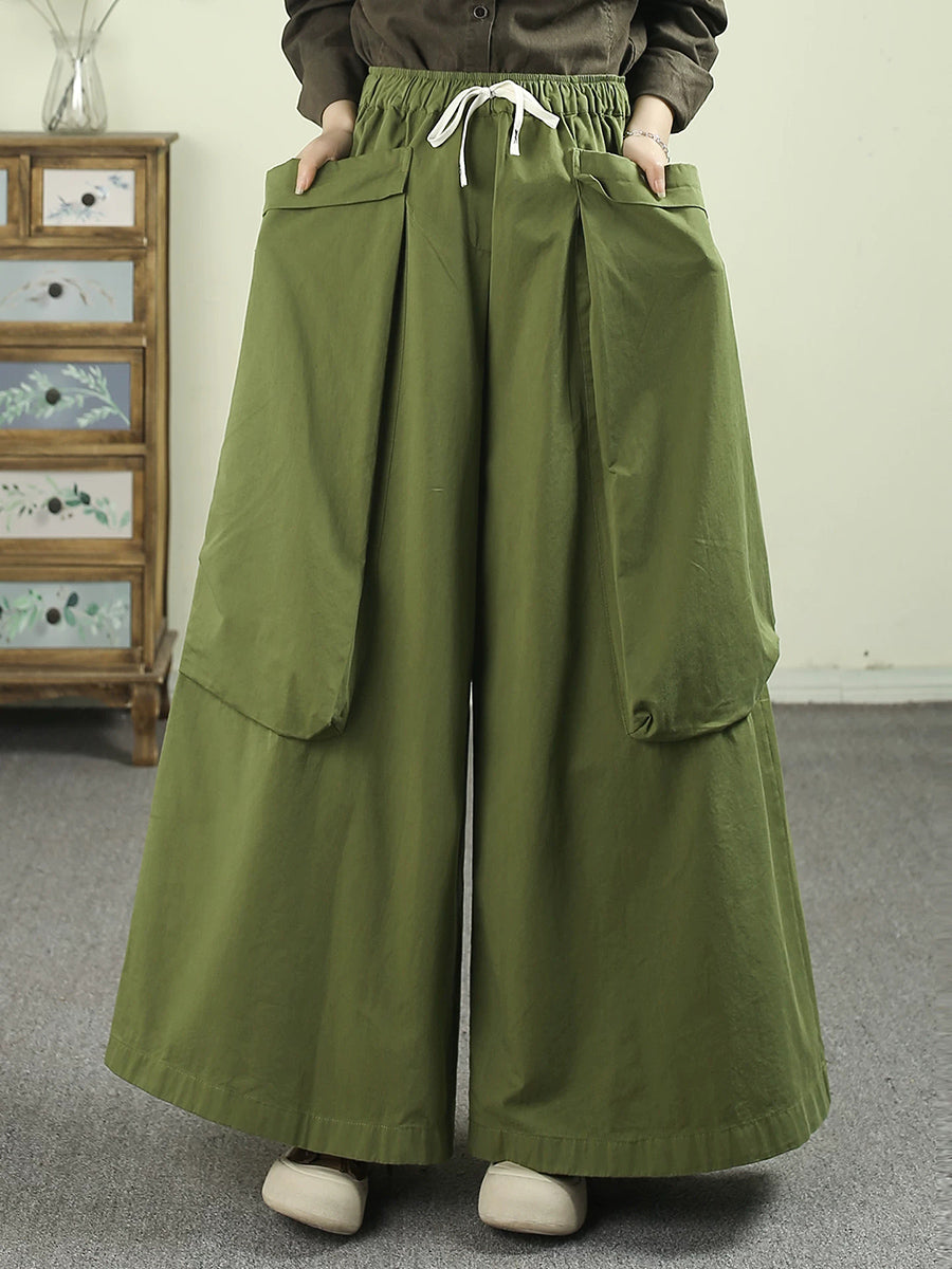 Women Spring Casual Pure Color Cotton Wide-leg Pants