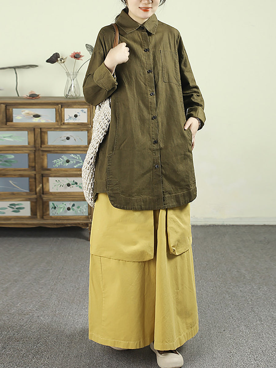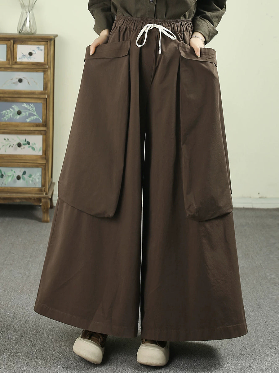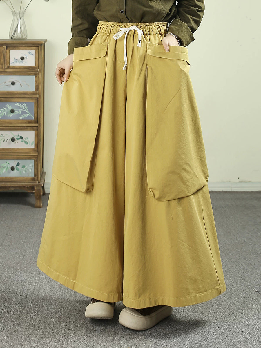 Women Spring Casual Pure Color Cotton Wide-leg Pants