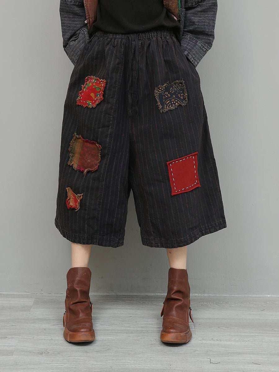 Women Spring Ethnic Patch Spliced O-Neck Suits