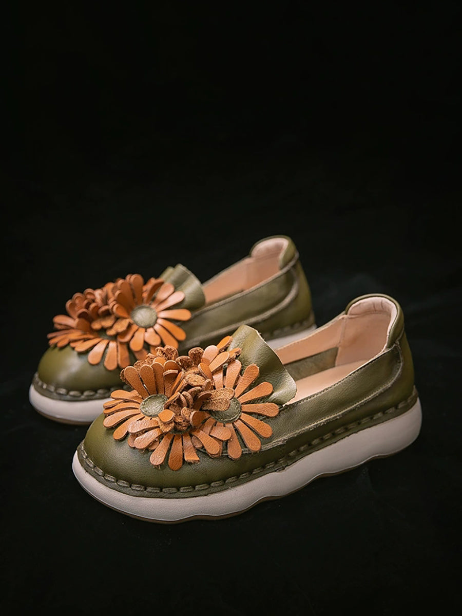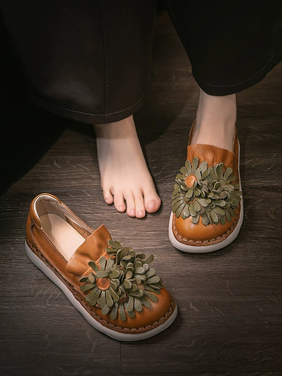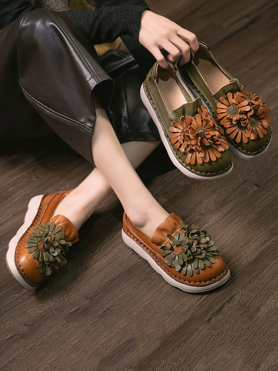 Women Spring Genuine Leather Flower Shoes