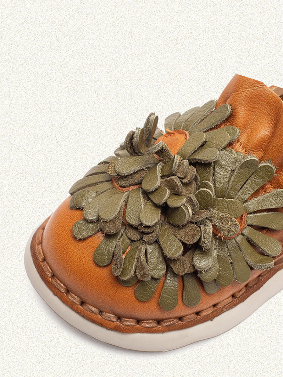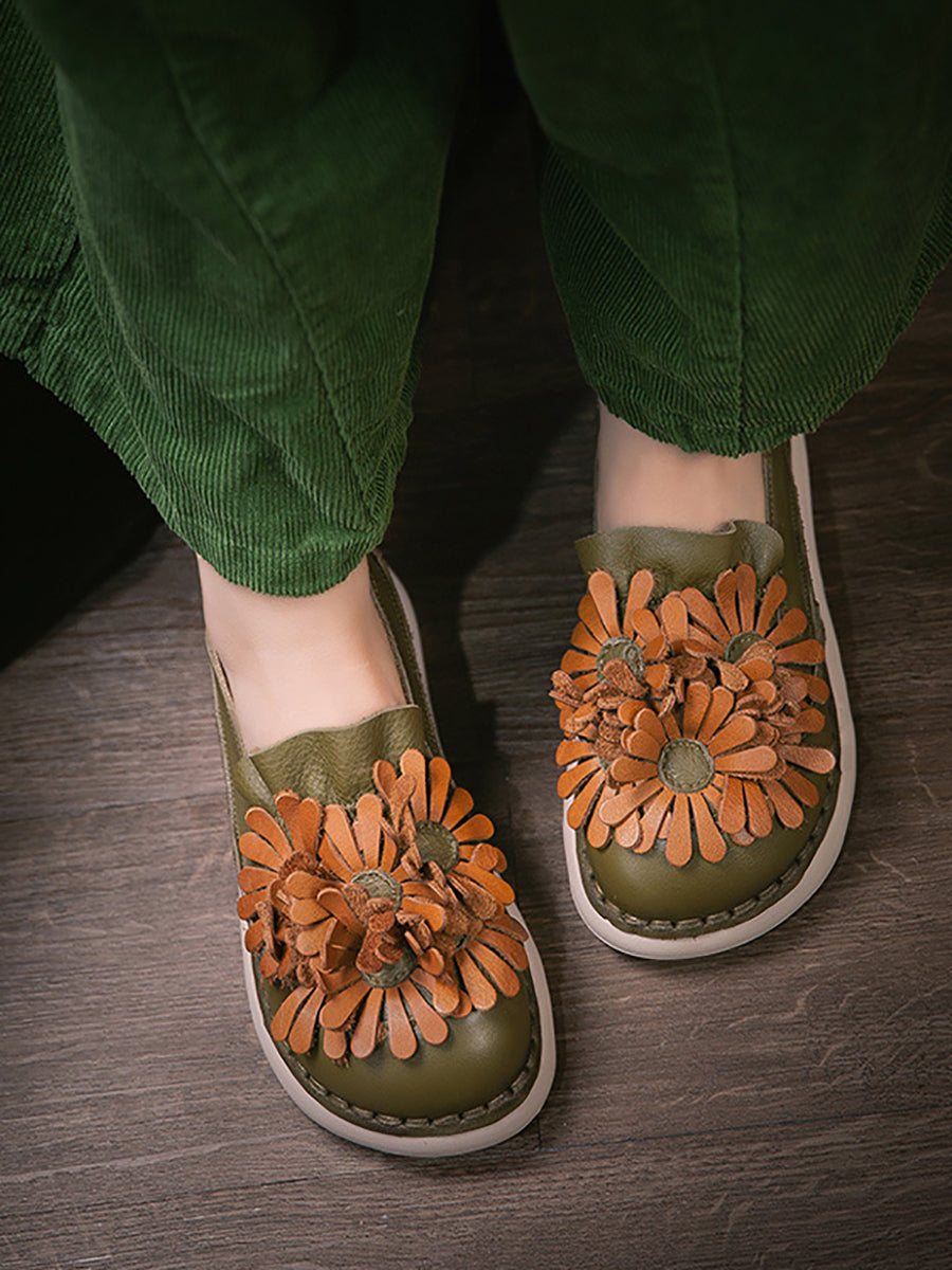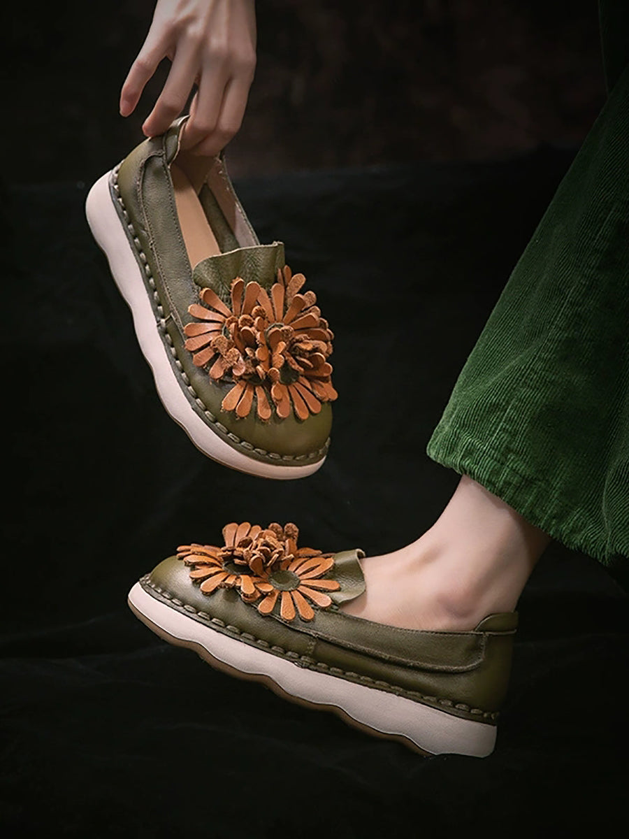 Women Spring Genuine Leather Flower Shoes