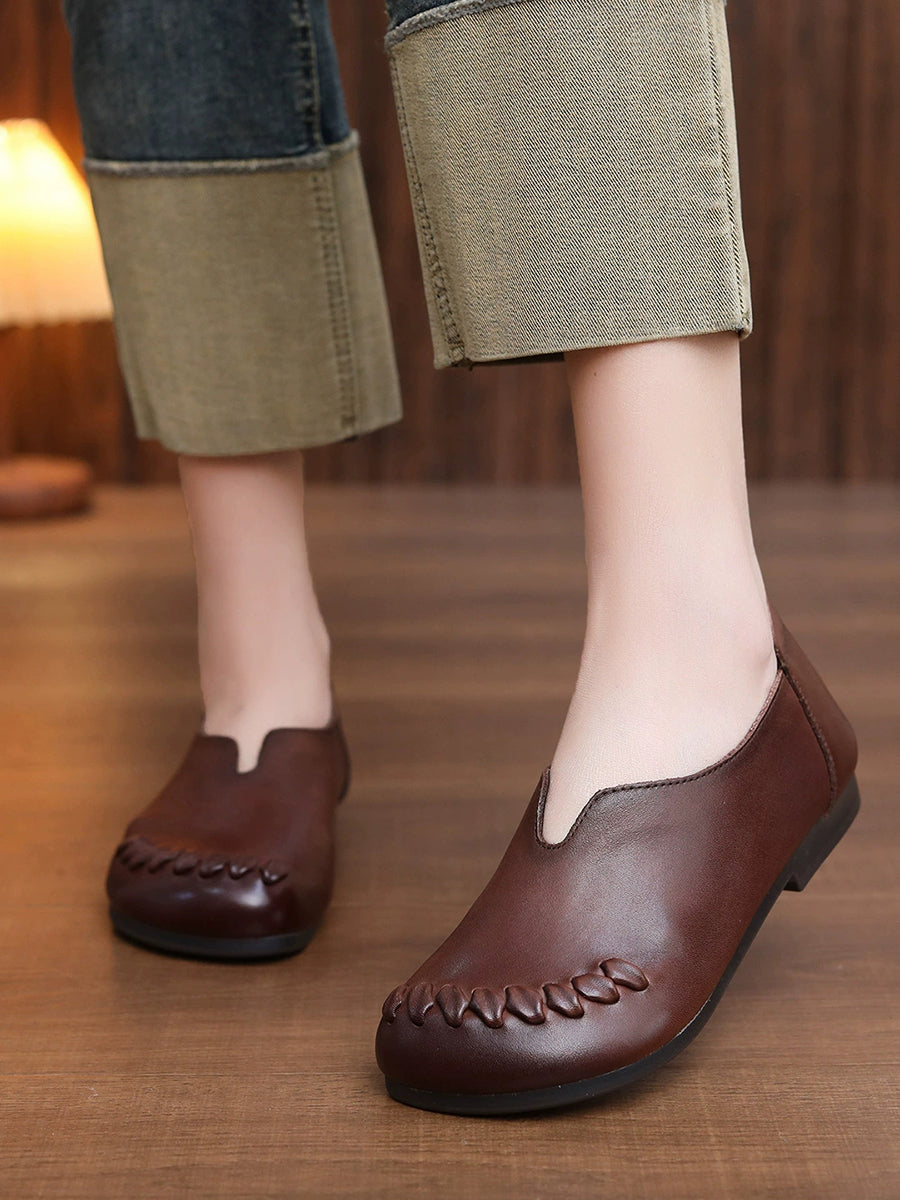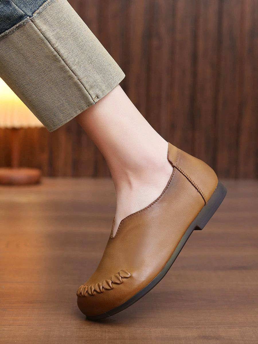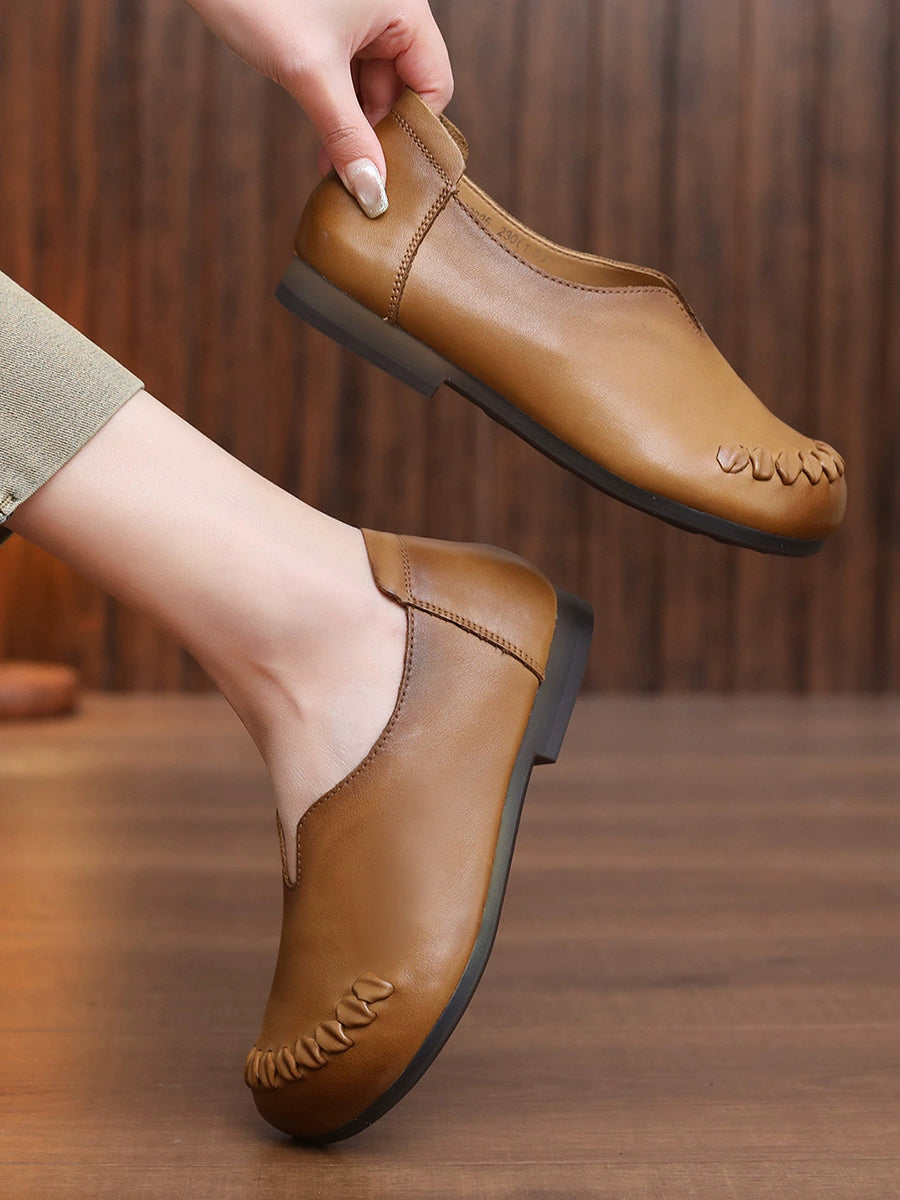 Women Spring Genuine Leather Spliced Low Heel Shoes