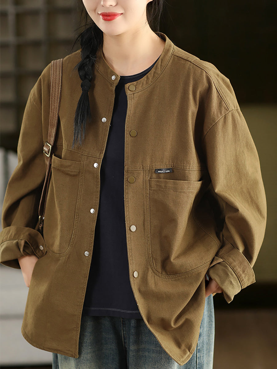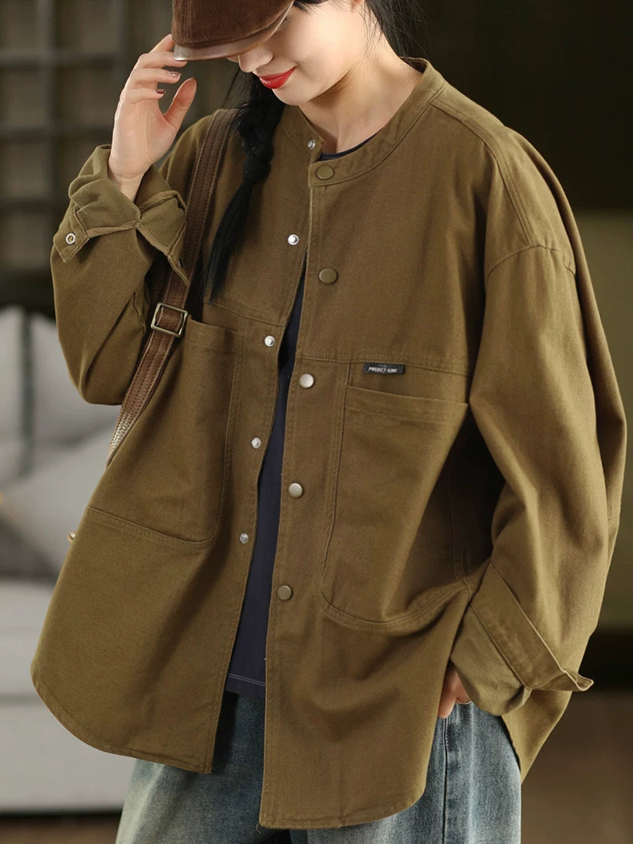 Women Spring Pure Color 100%Cotton Shirt Coat