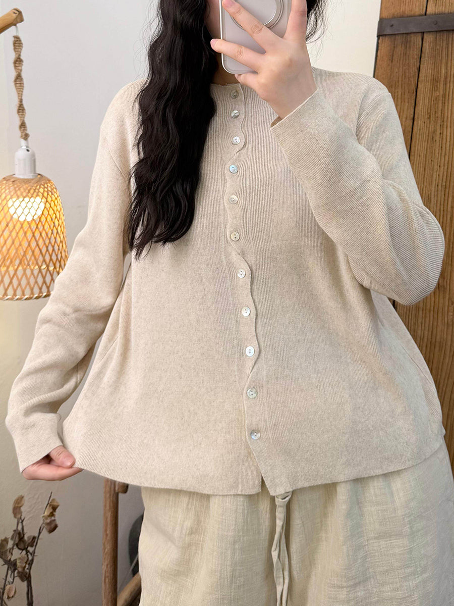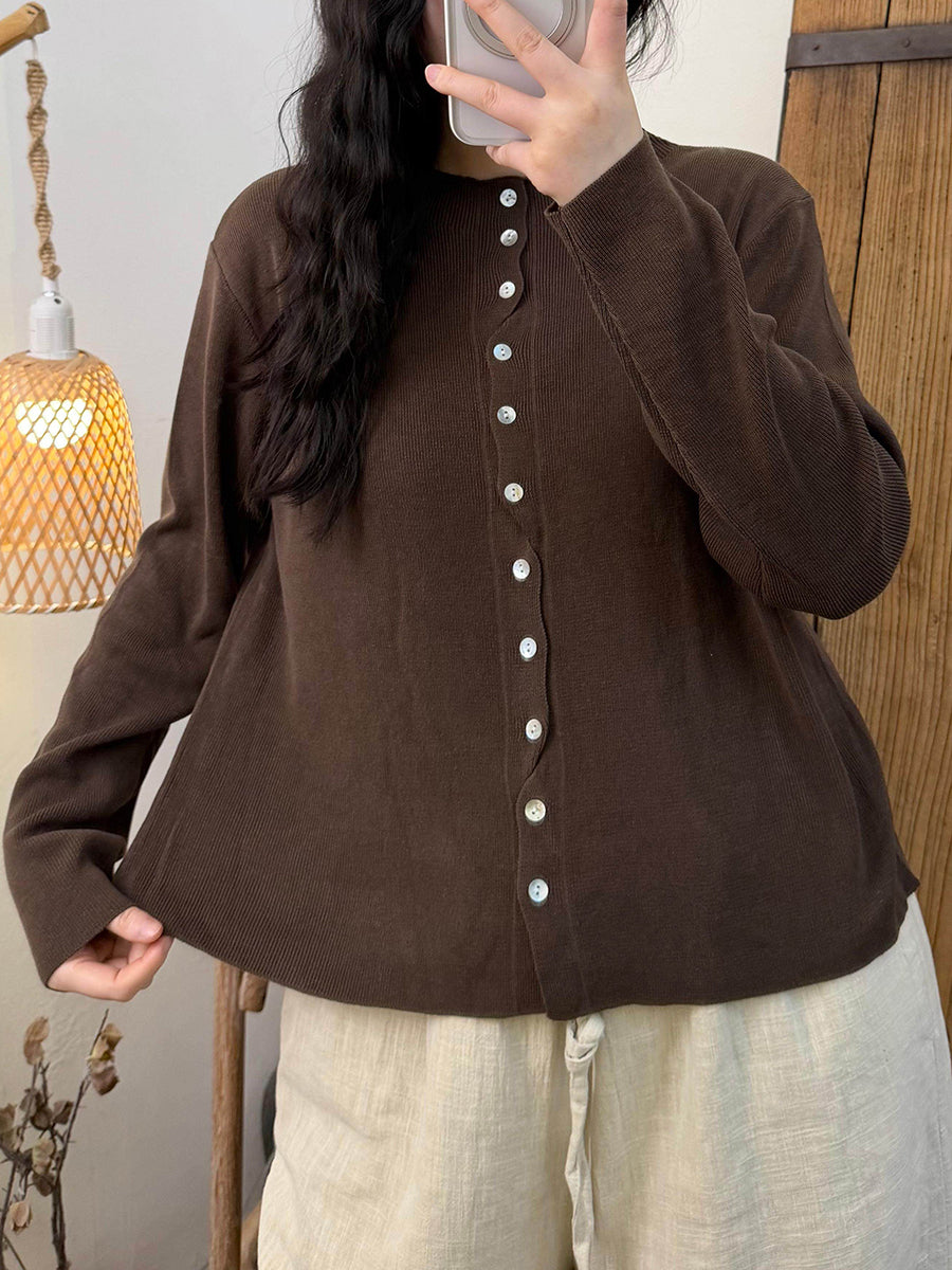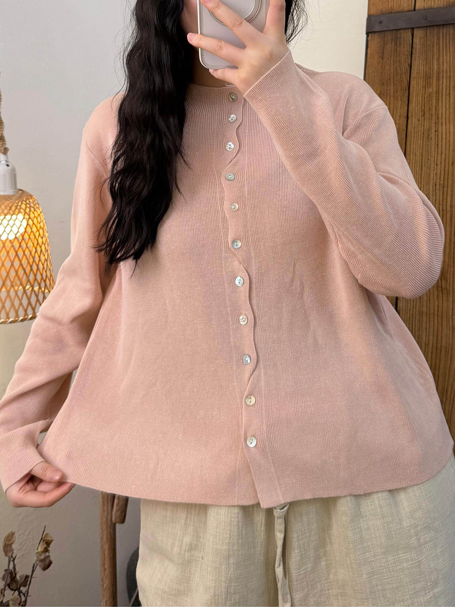 Women Spring Pure Color O-Neck Knitted Shirt