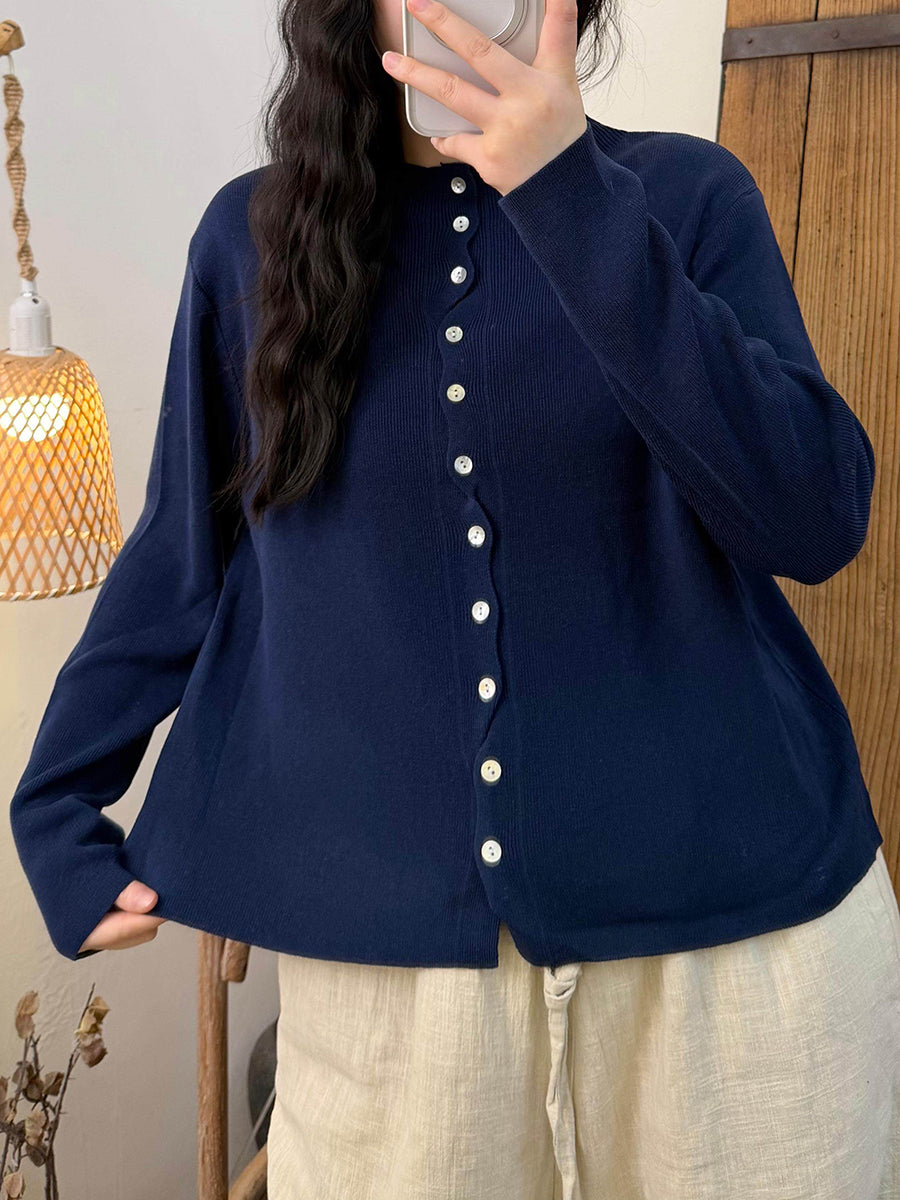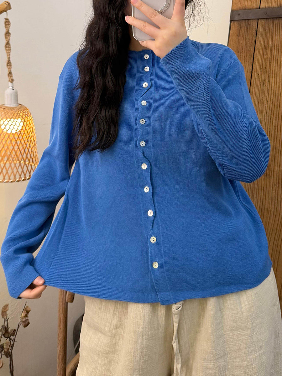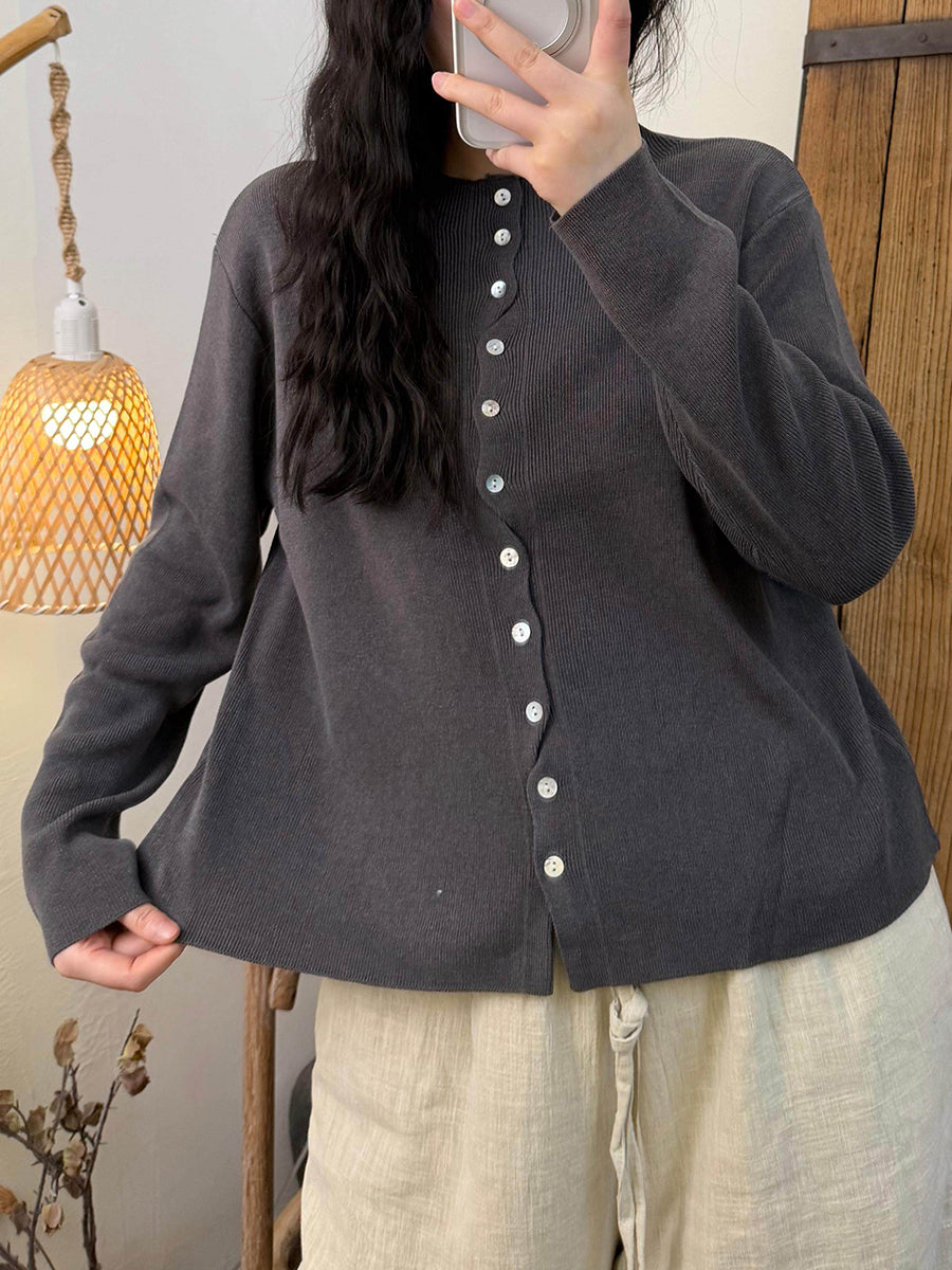 Women Spring Pure Color O-Neck Knitted Shirt