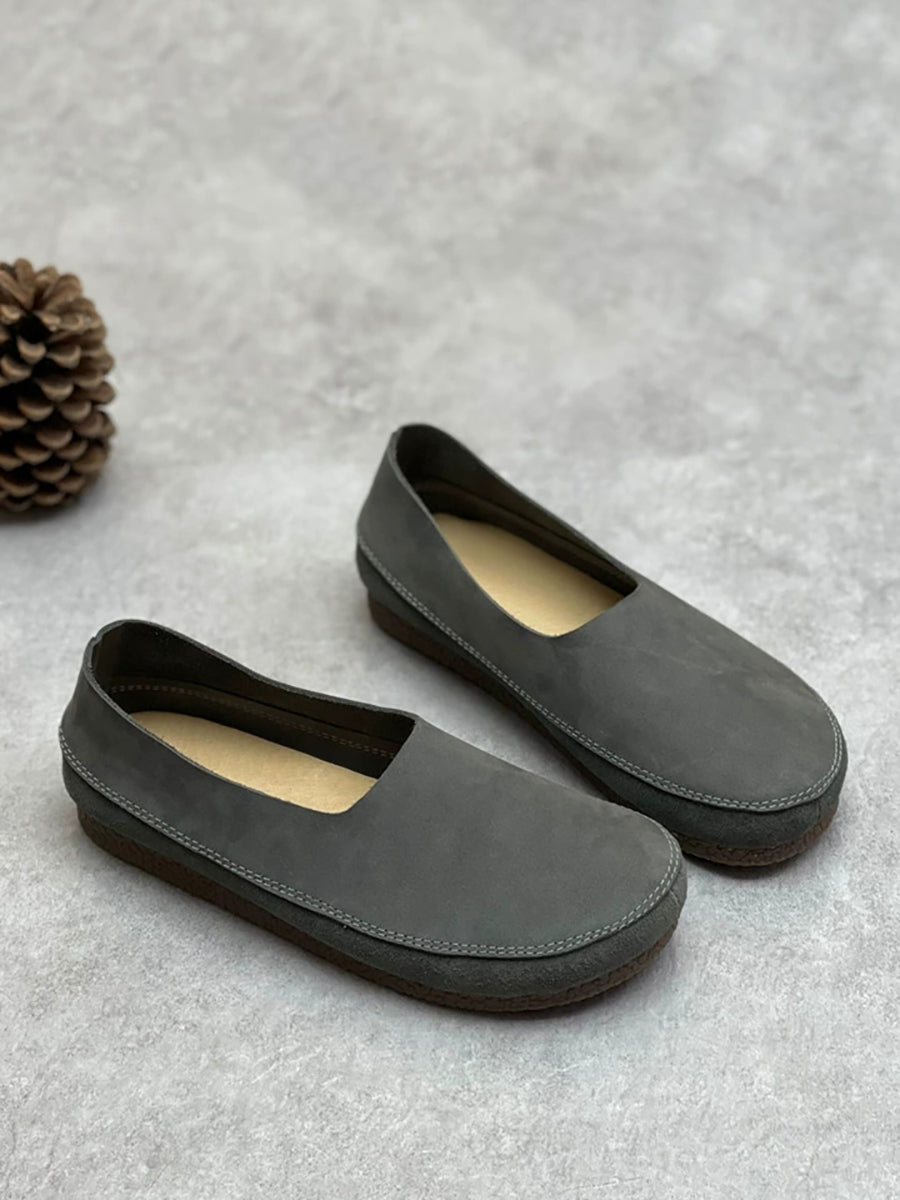 Women Spring Retro Genuine Leather Low Heel Shoes