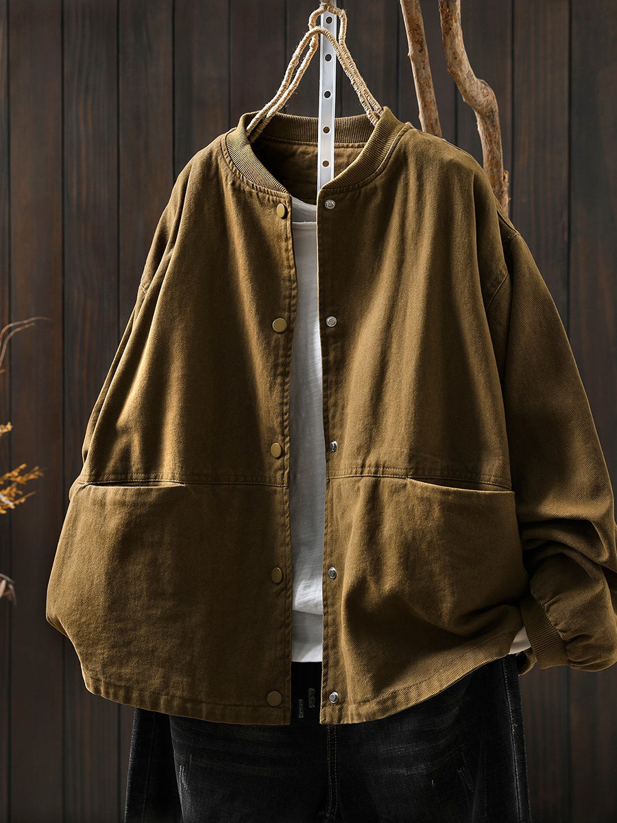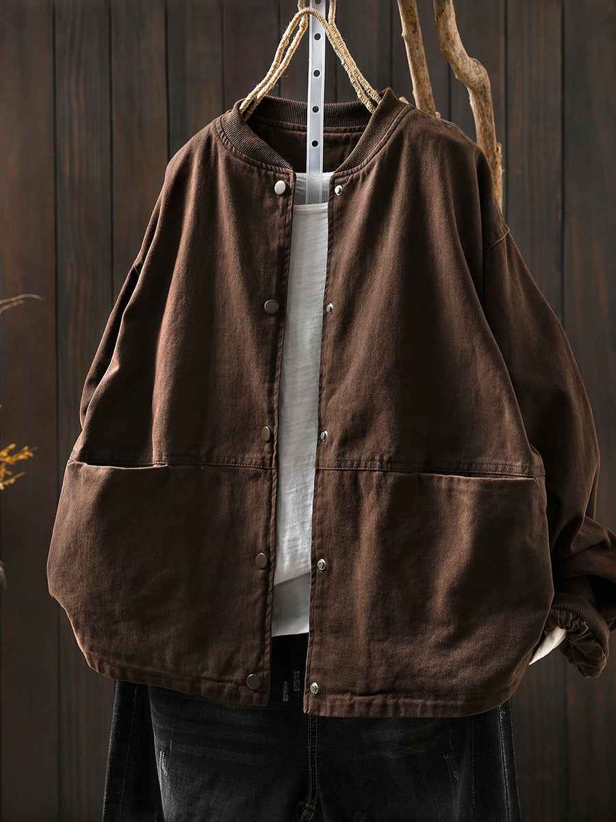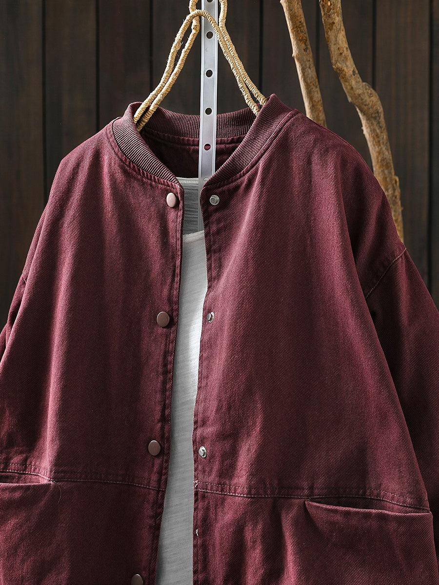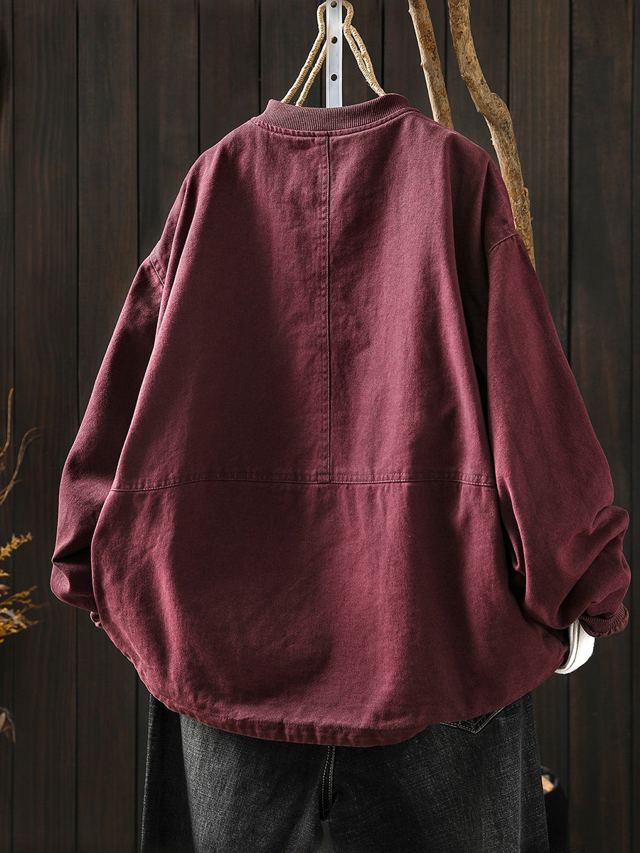 Women Spring Retro Pure Color Stand Collar Jacket