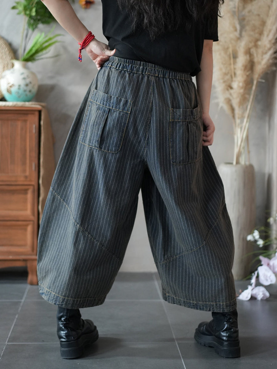 Women Spring Retro Plaid Wide-leg Pants