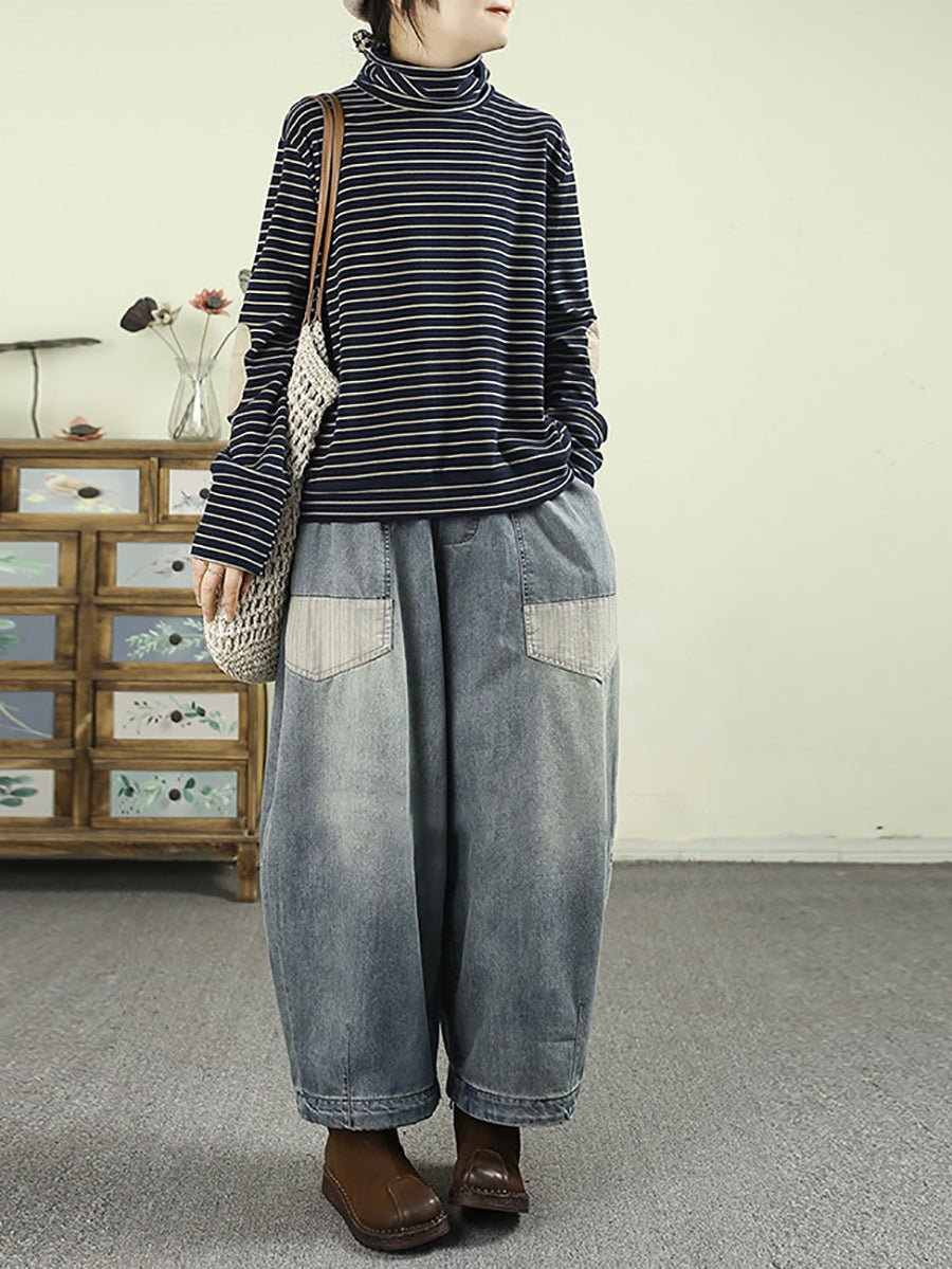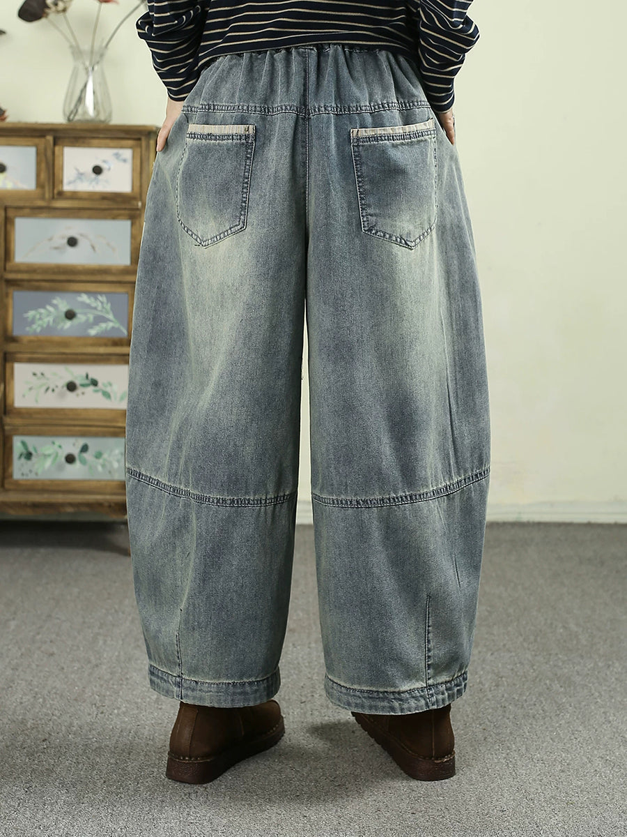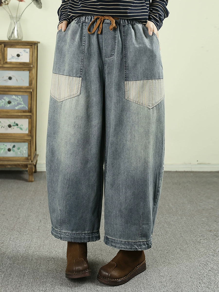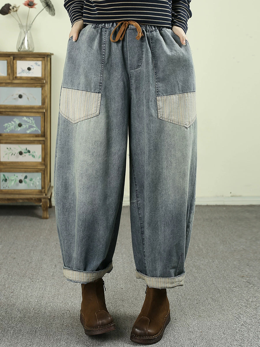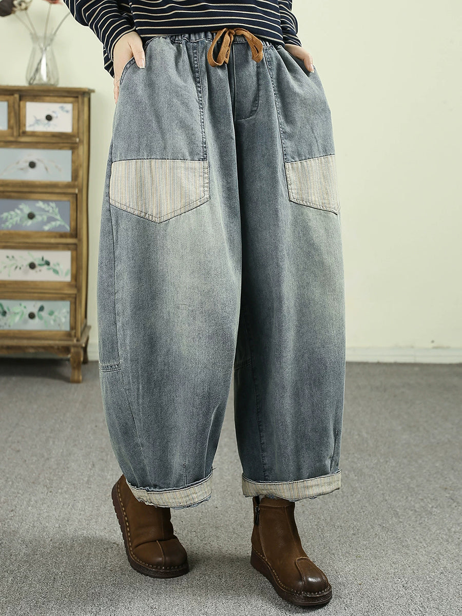 Women Spring Vintage Denim Spliced Harem Pants