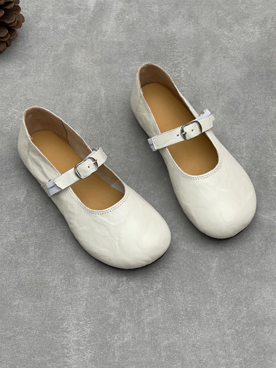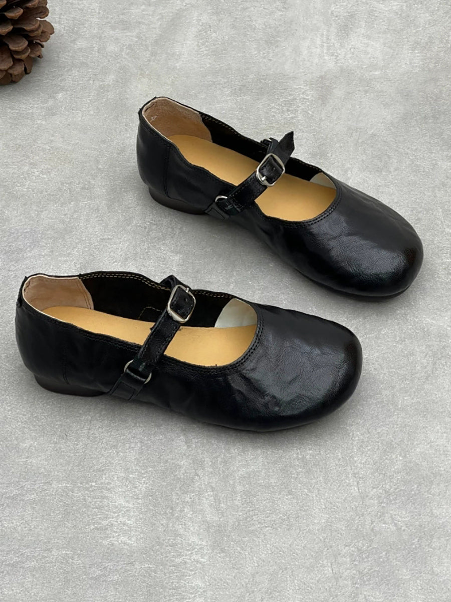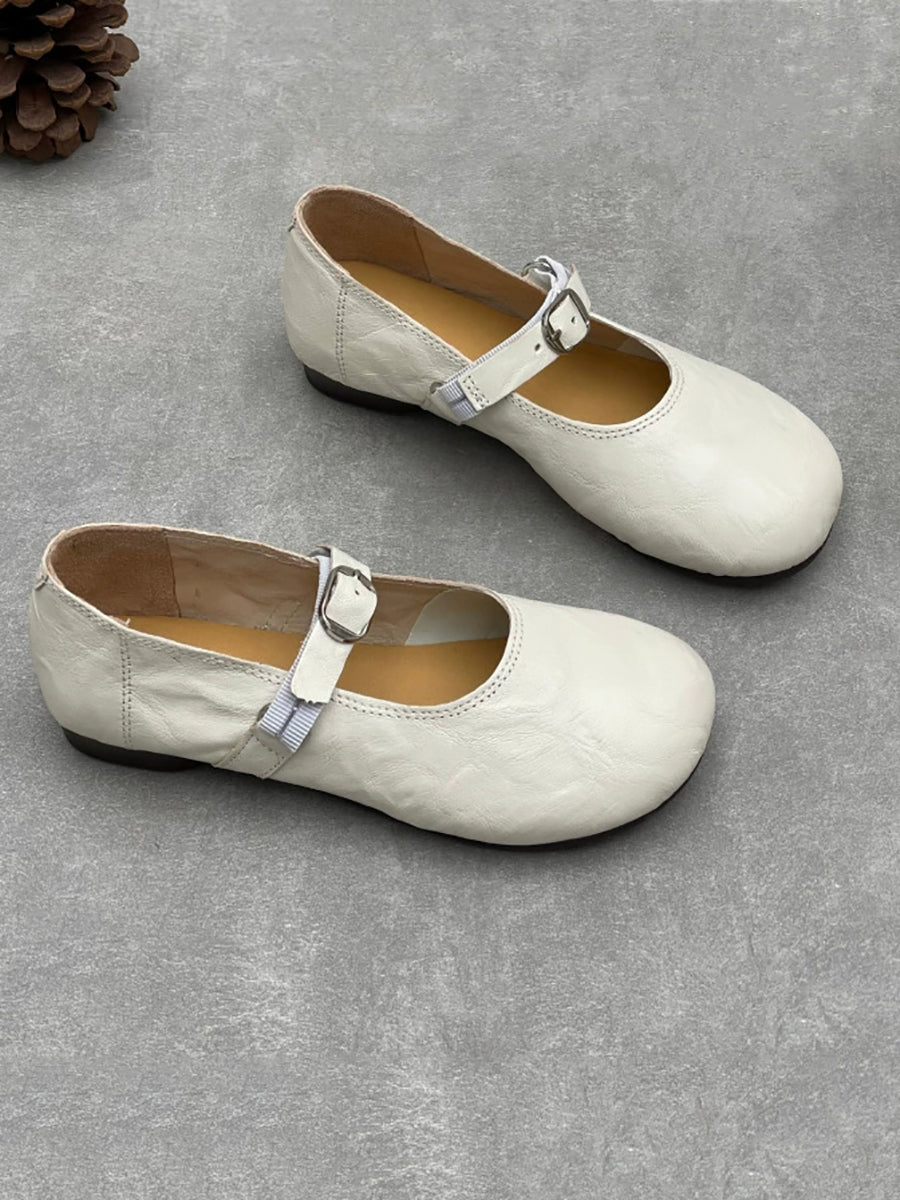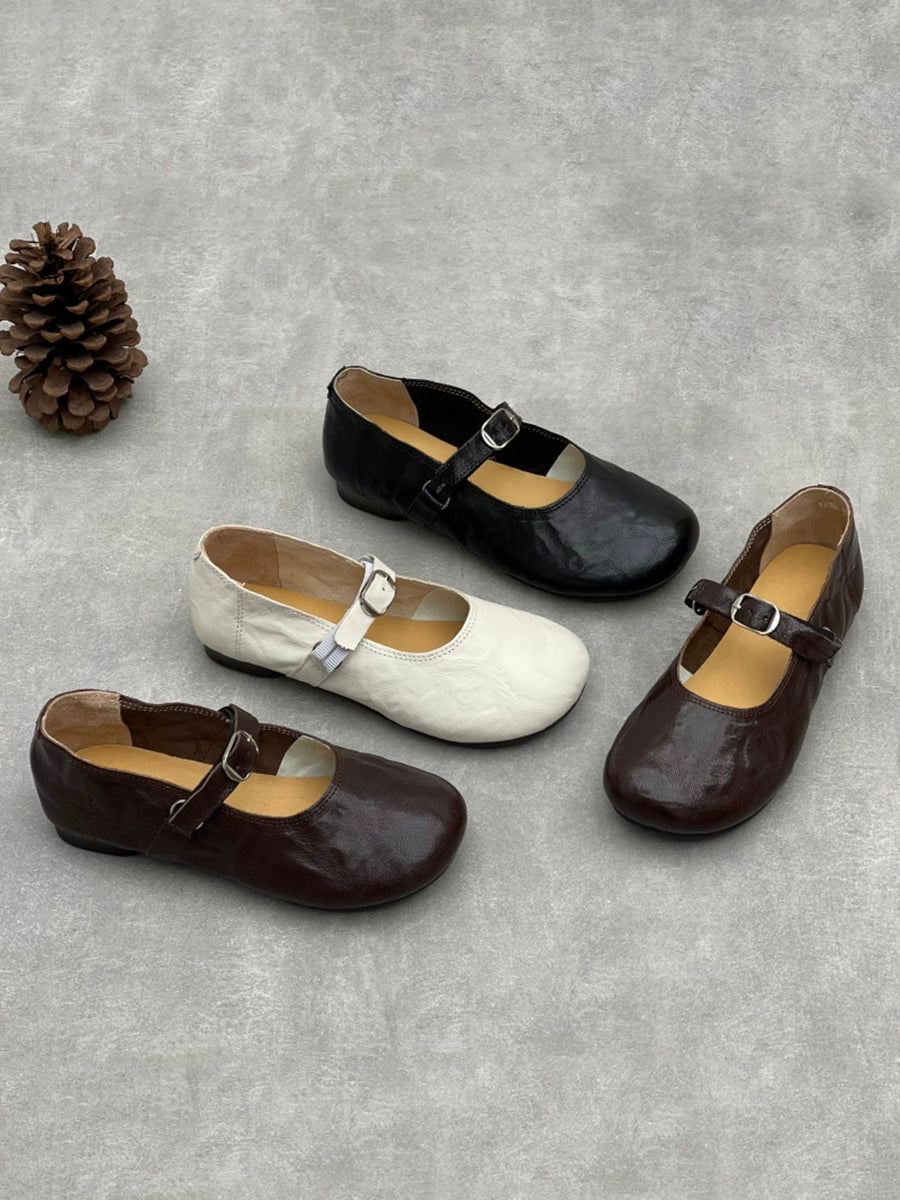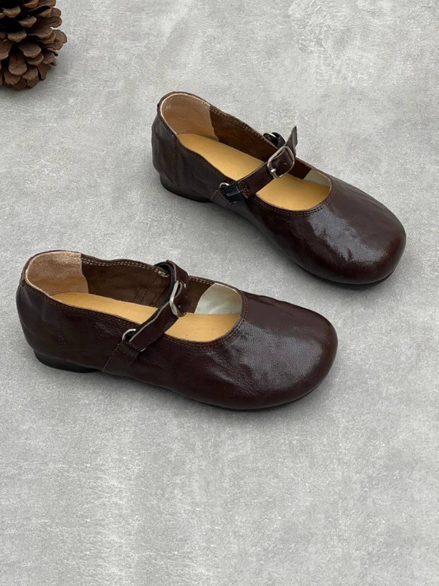 Women Spring Vintage Genuine Leather Low Heel Shoes