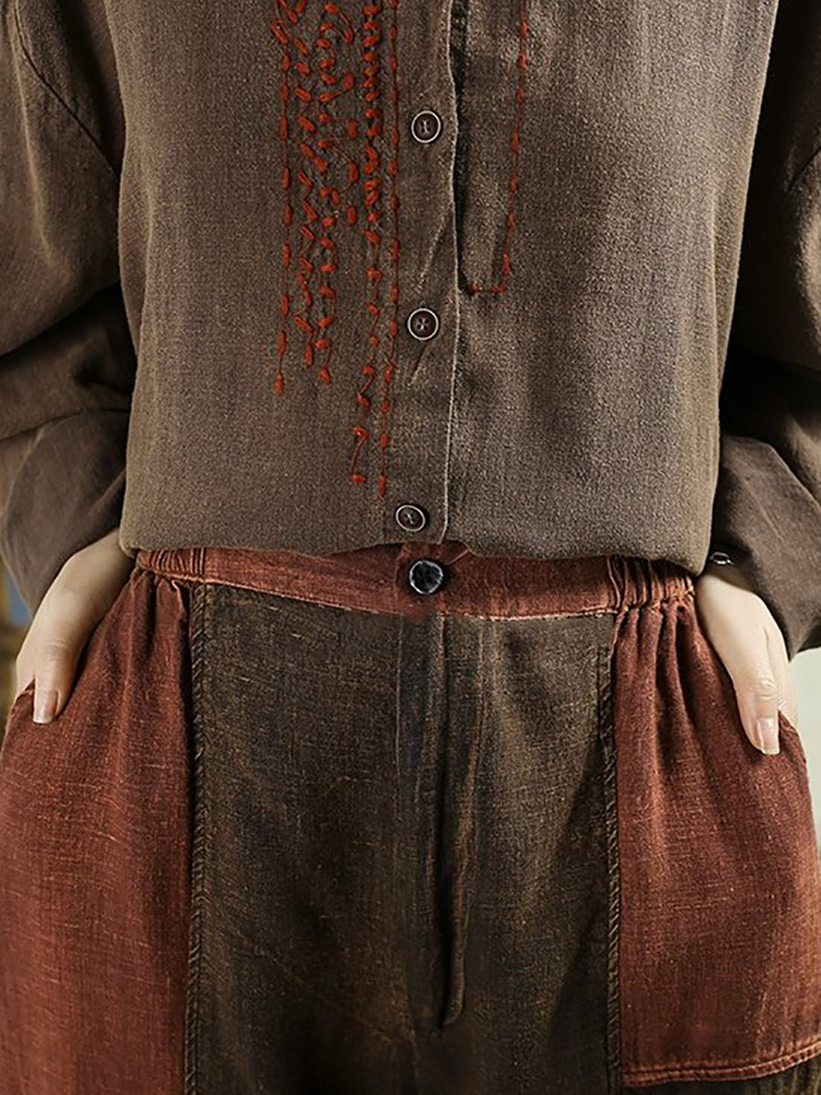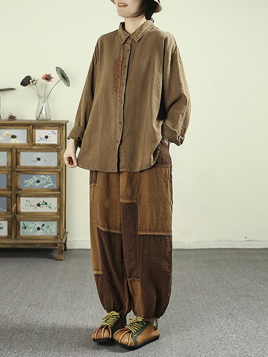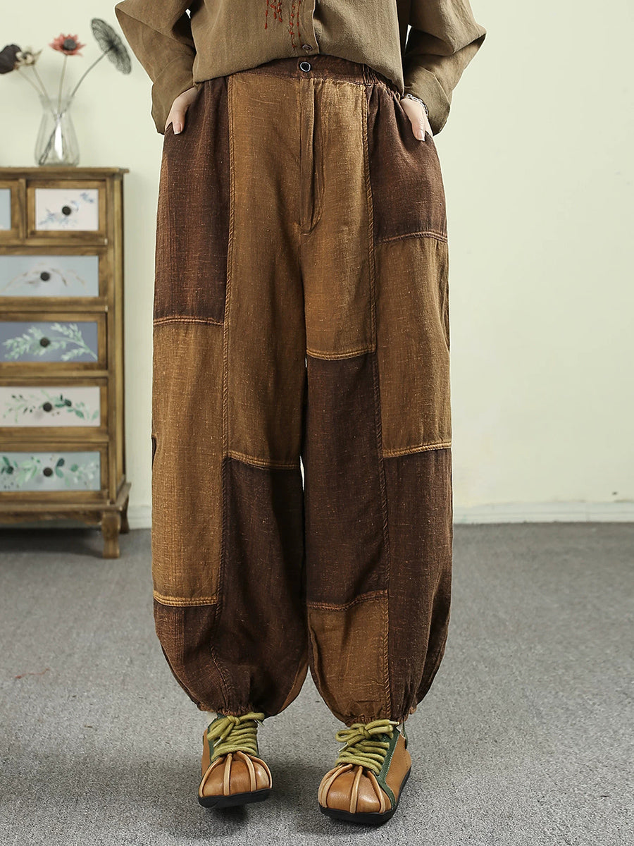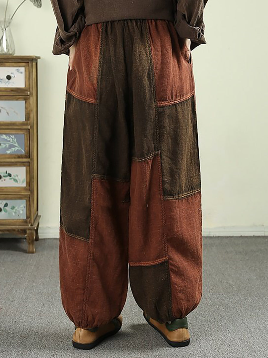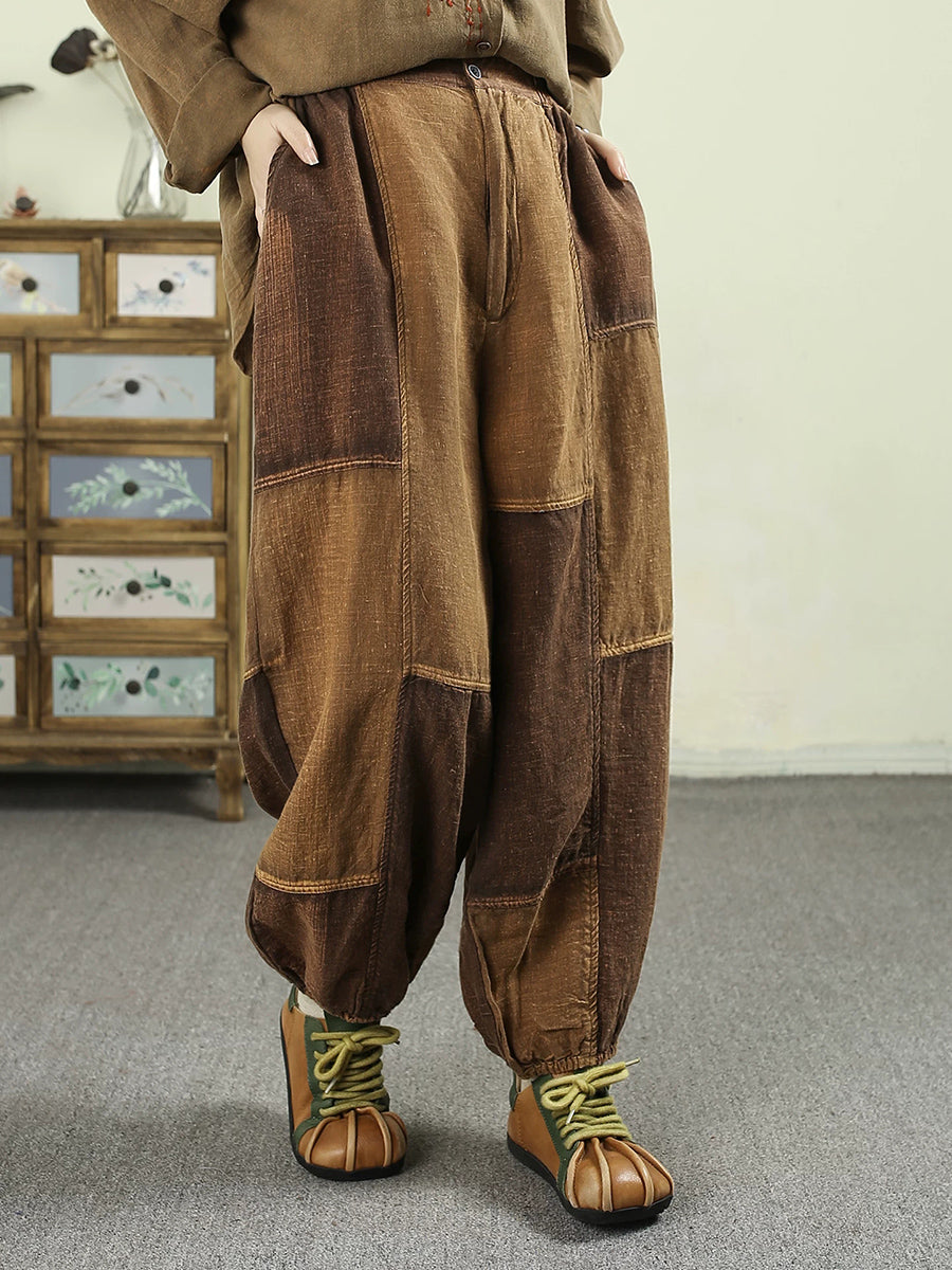 Women Spring Vintage Patchwork 100%Linen Bloomers