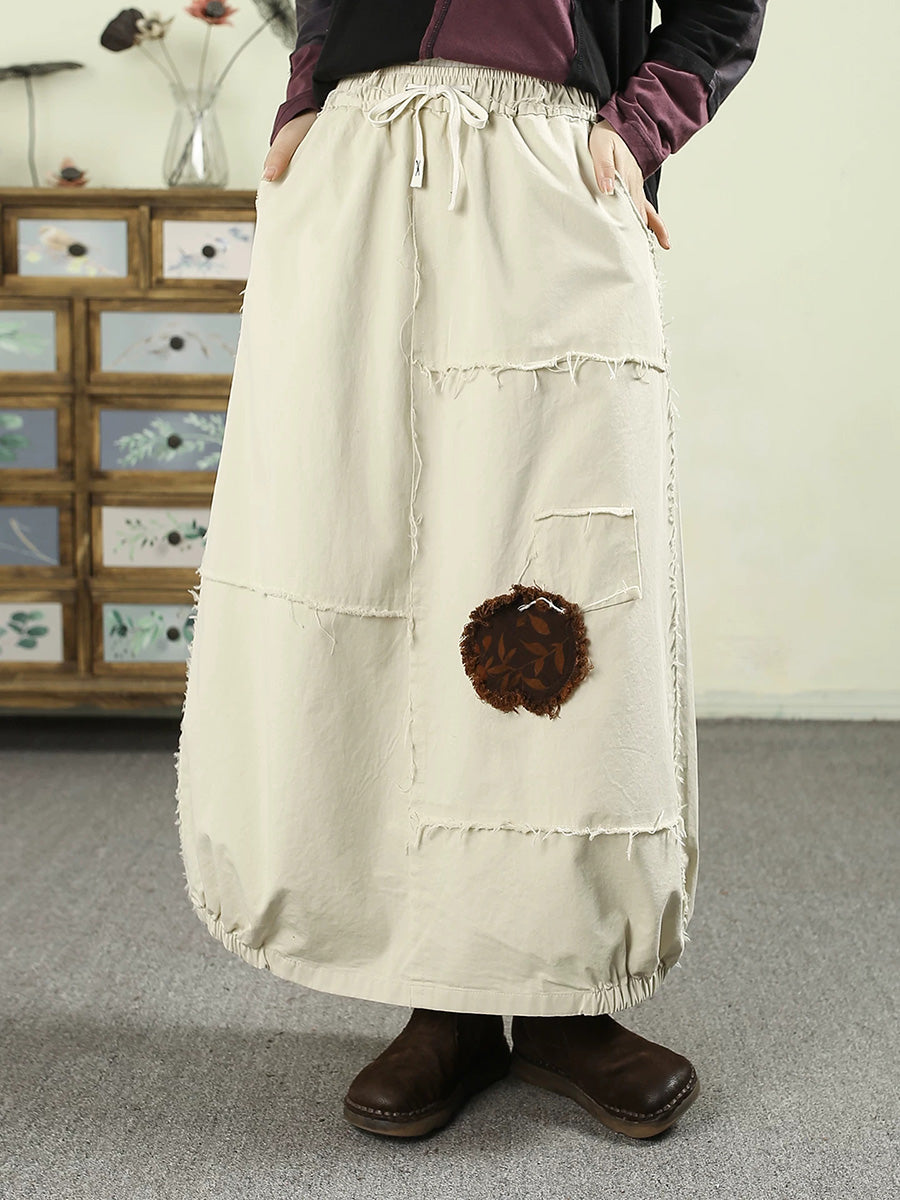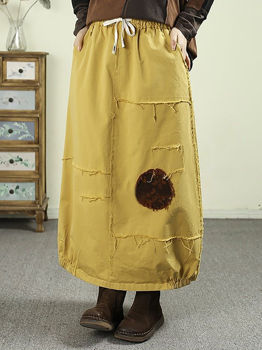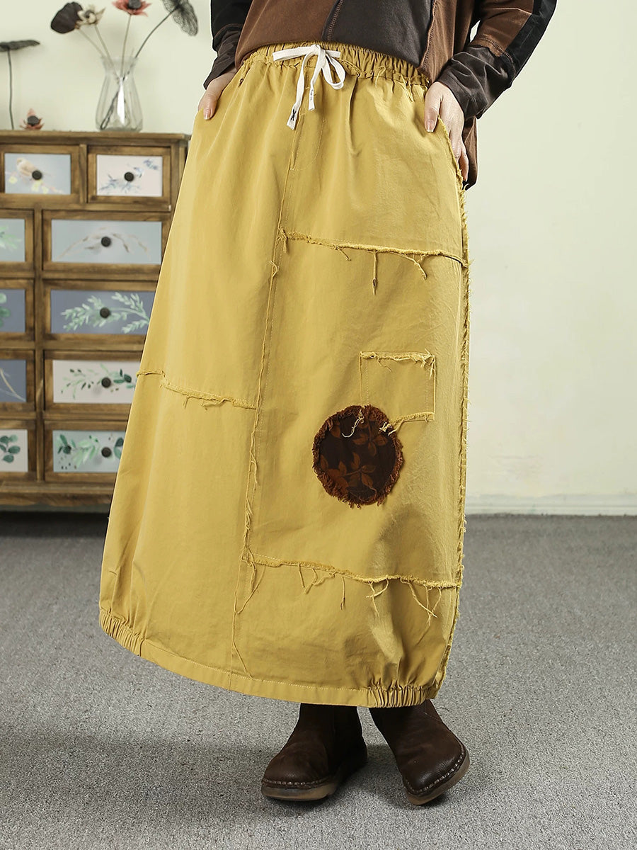 Women Spring Worn Patch 100%Cotton Bud Skirt