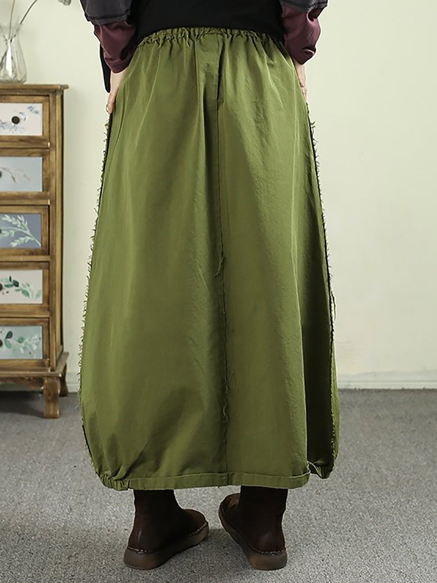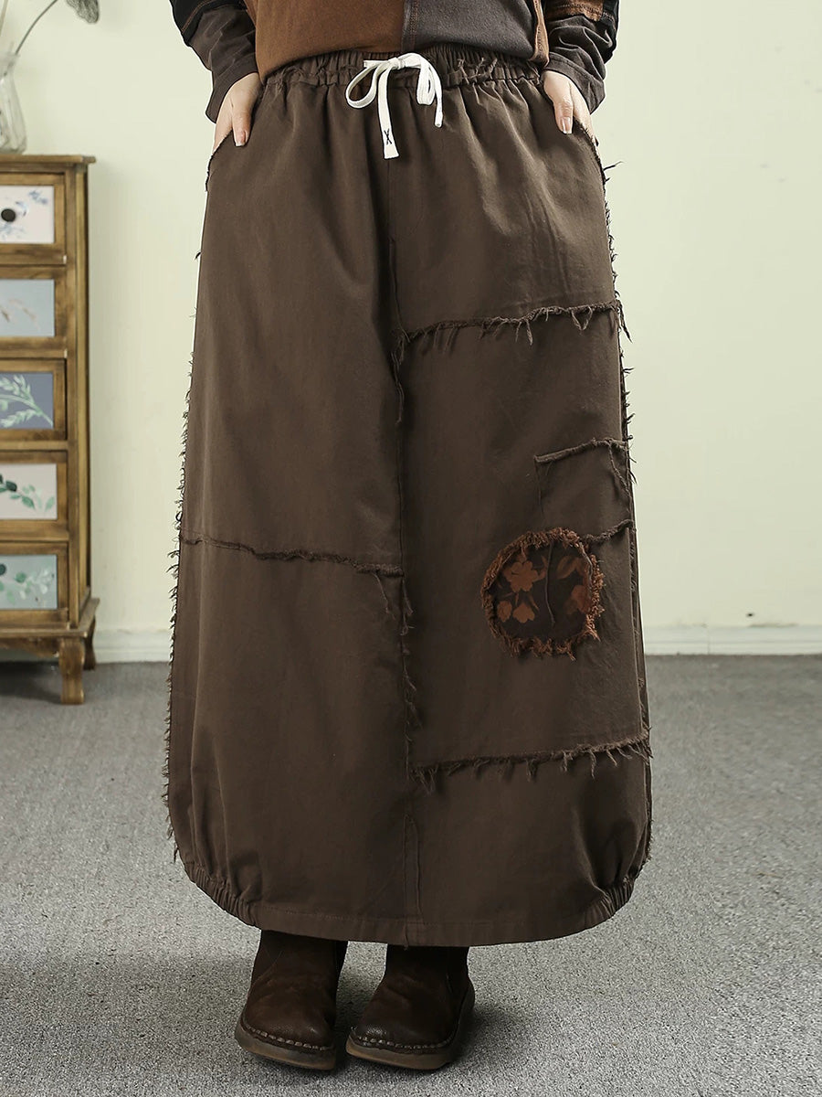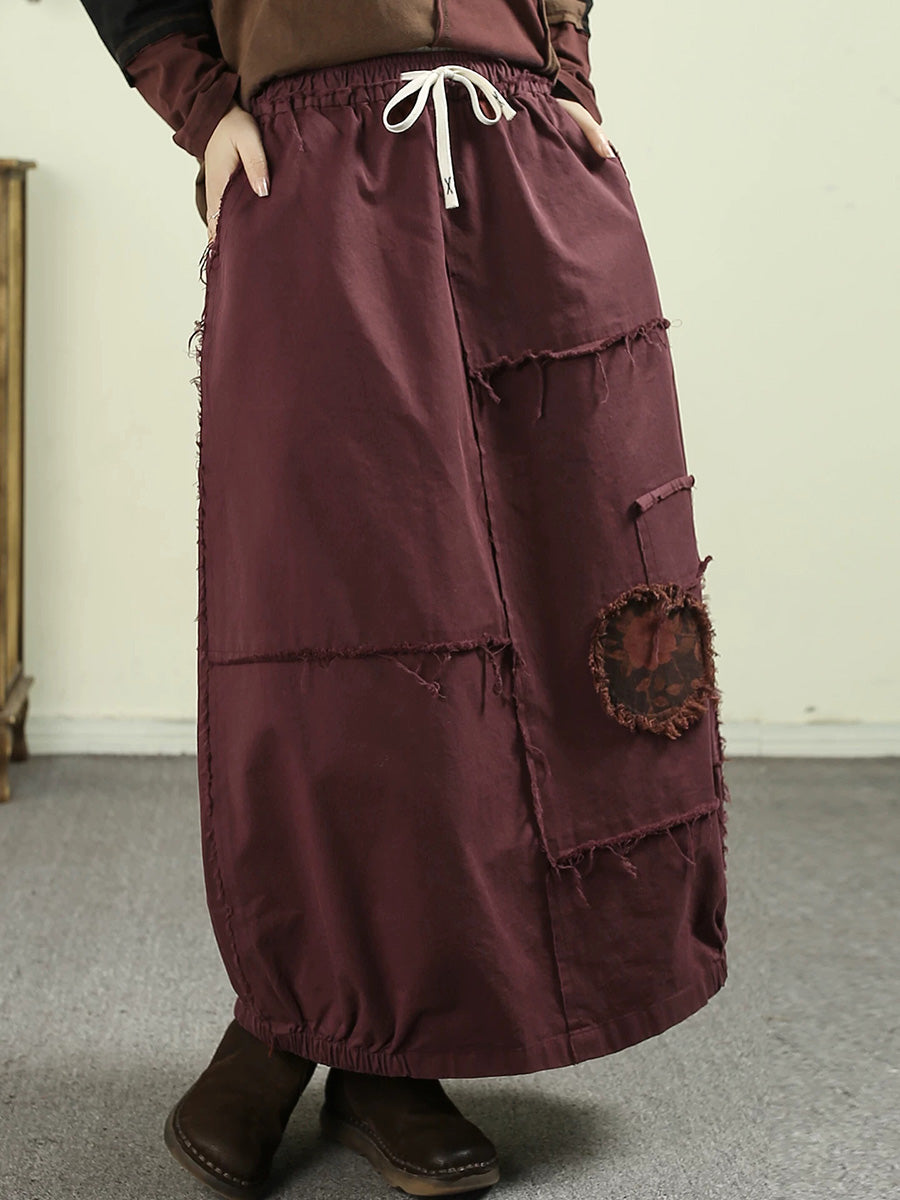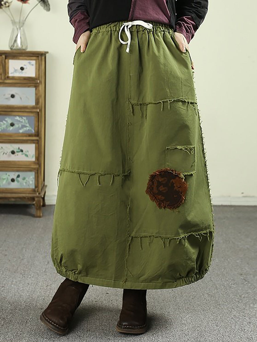 Women Spring Worn Patch 100%Cotton Bud Skirt