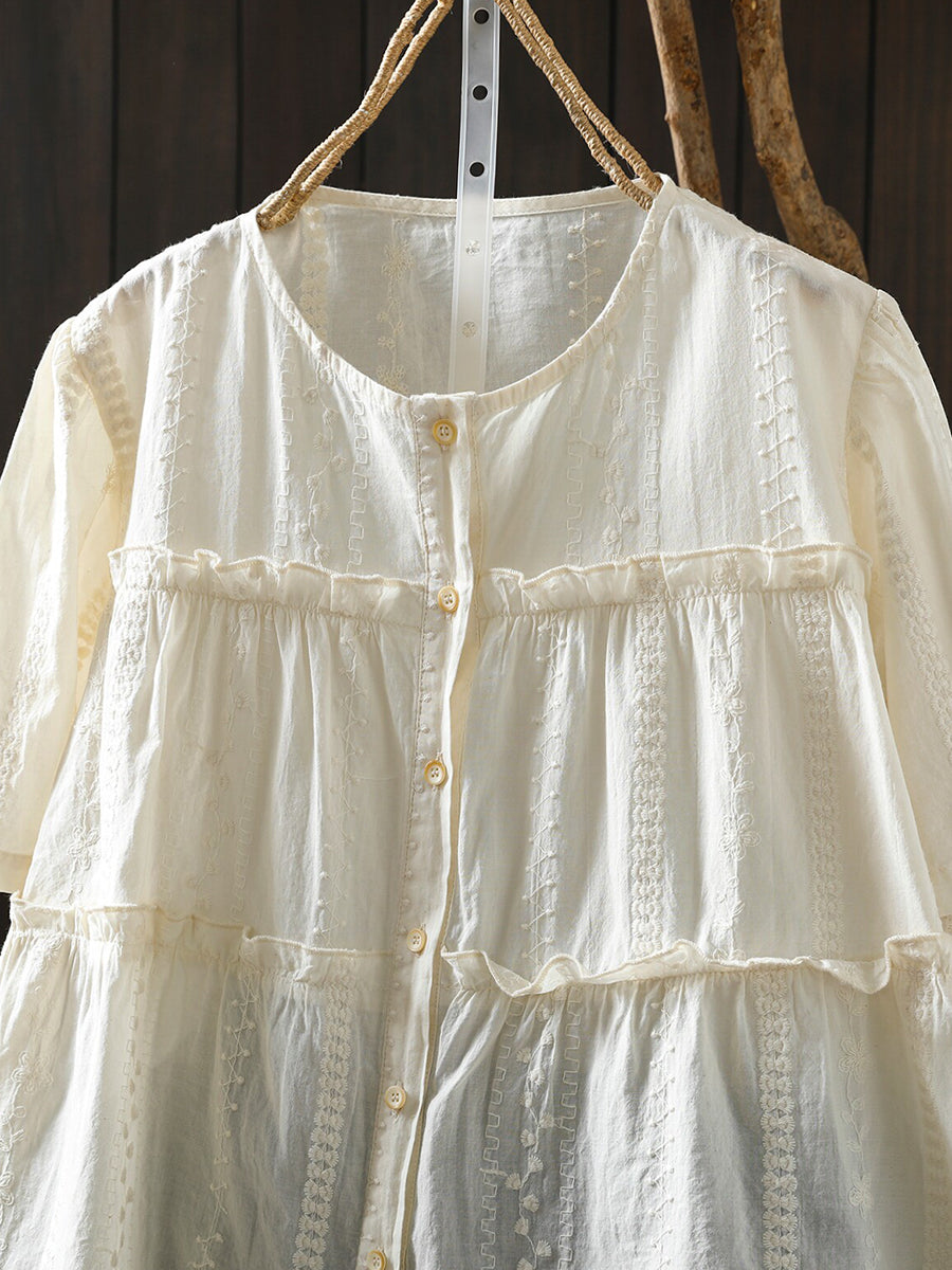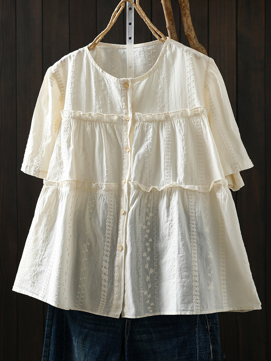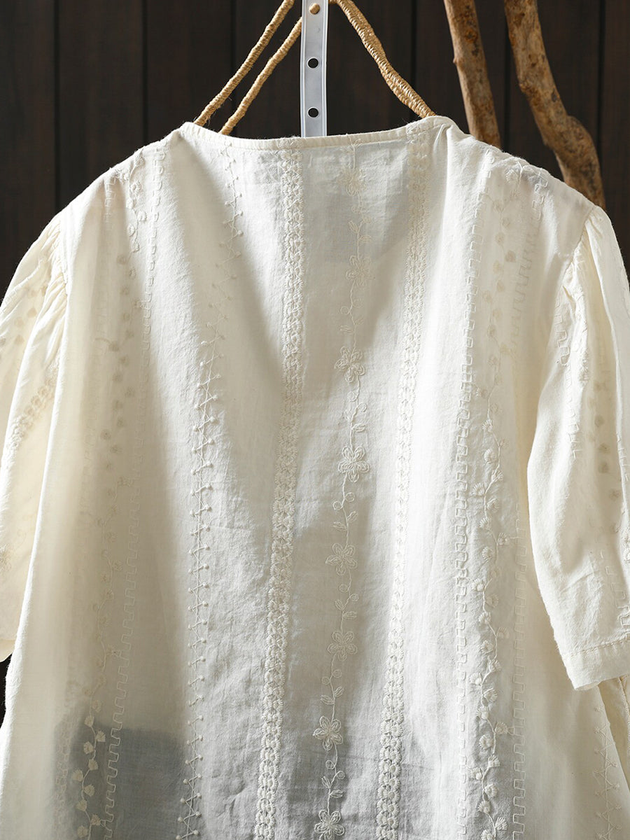 Women Summer Artsy Embroidery 100%Cotton Blouse