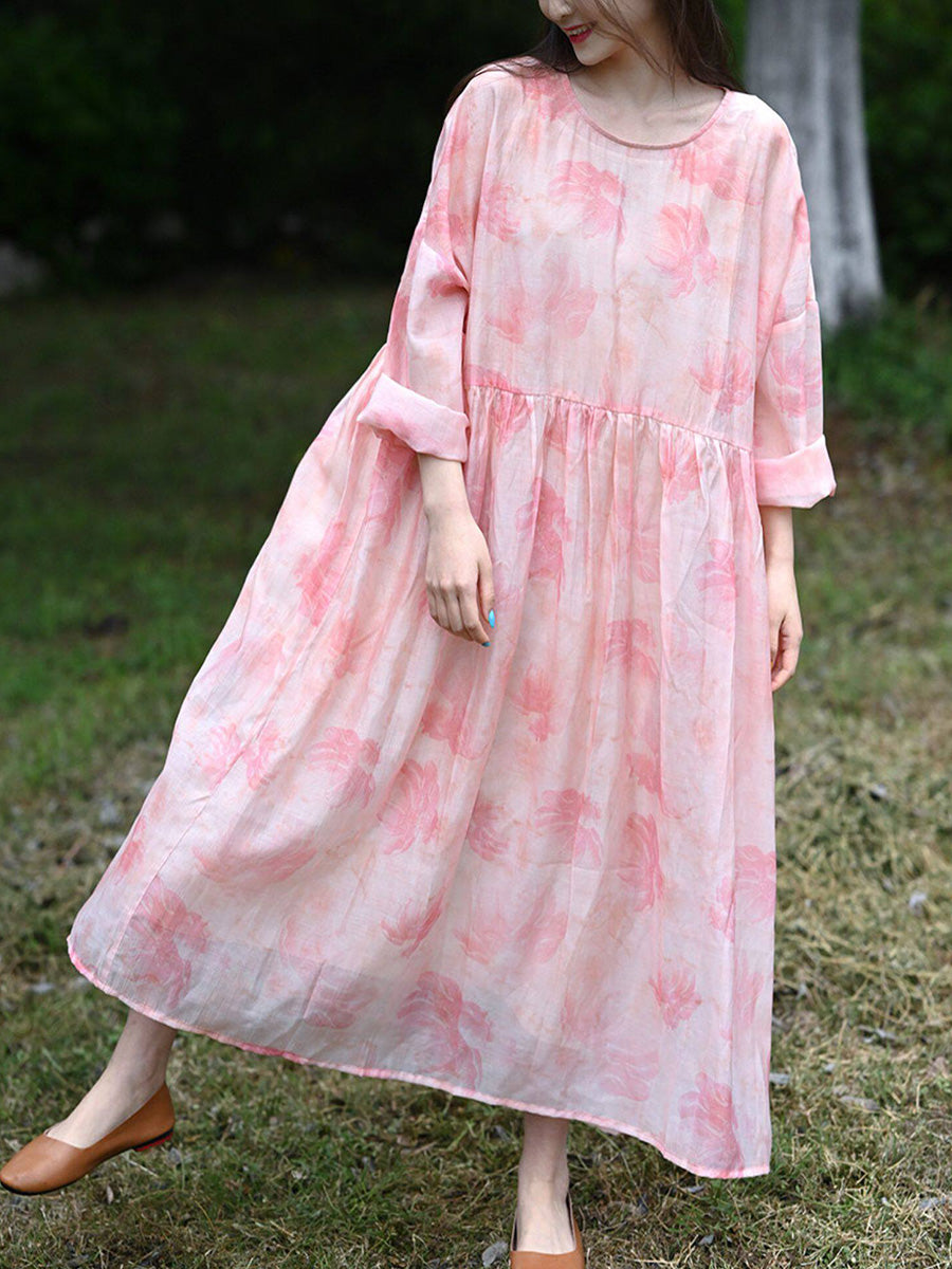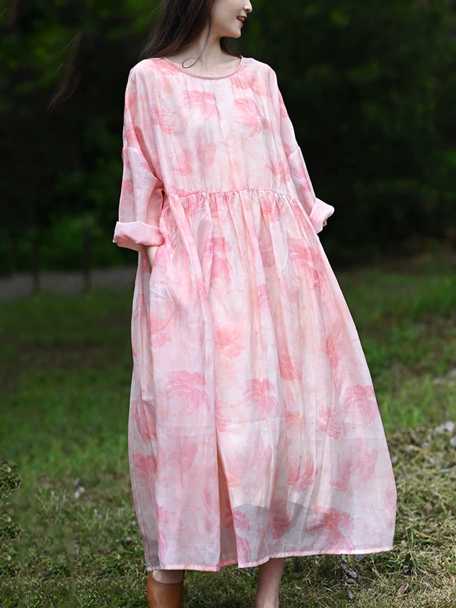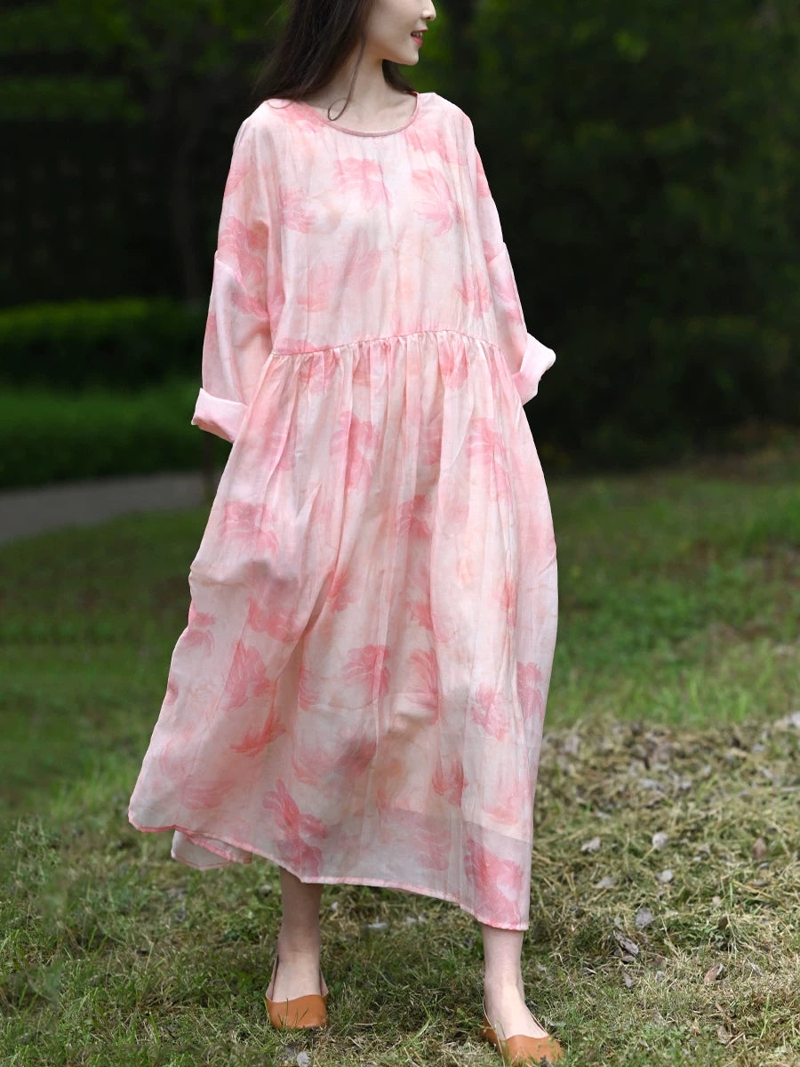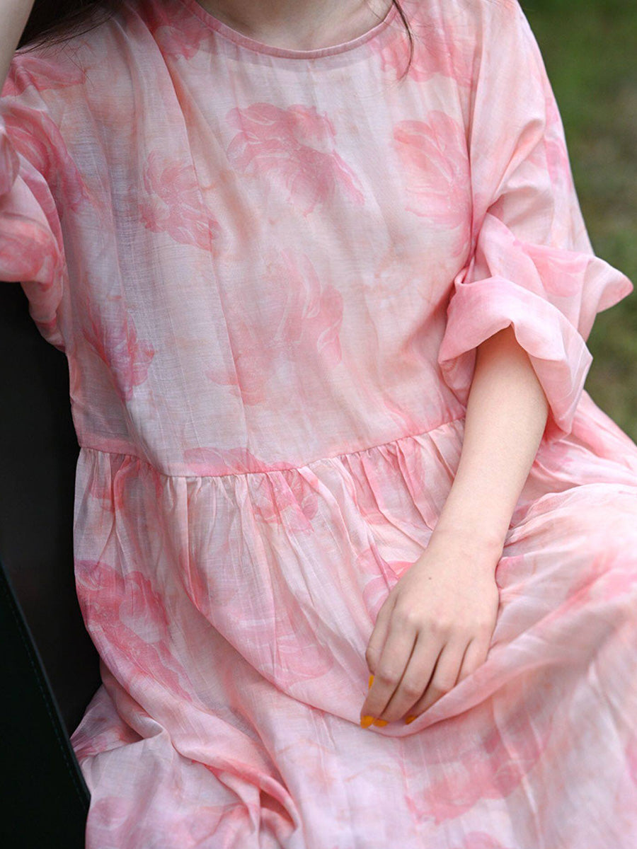 Women Summer Artsy Flower Soft O-Neck Dress (Two Pieces)