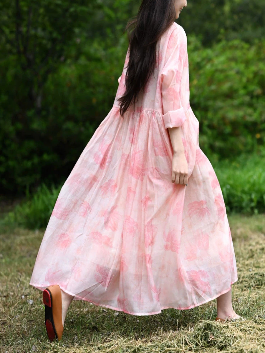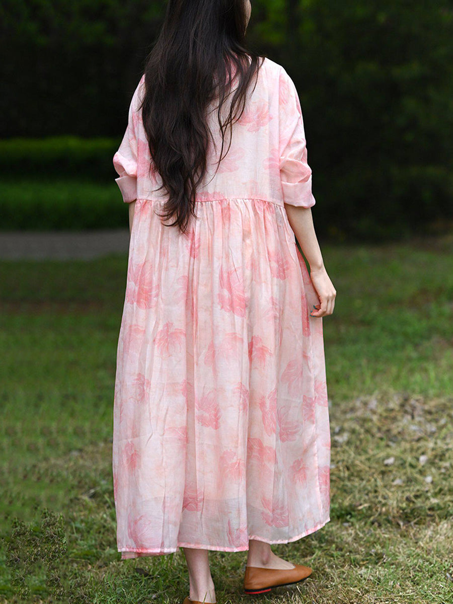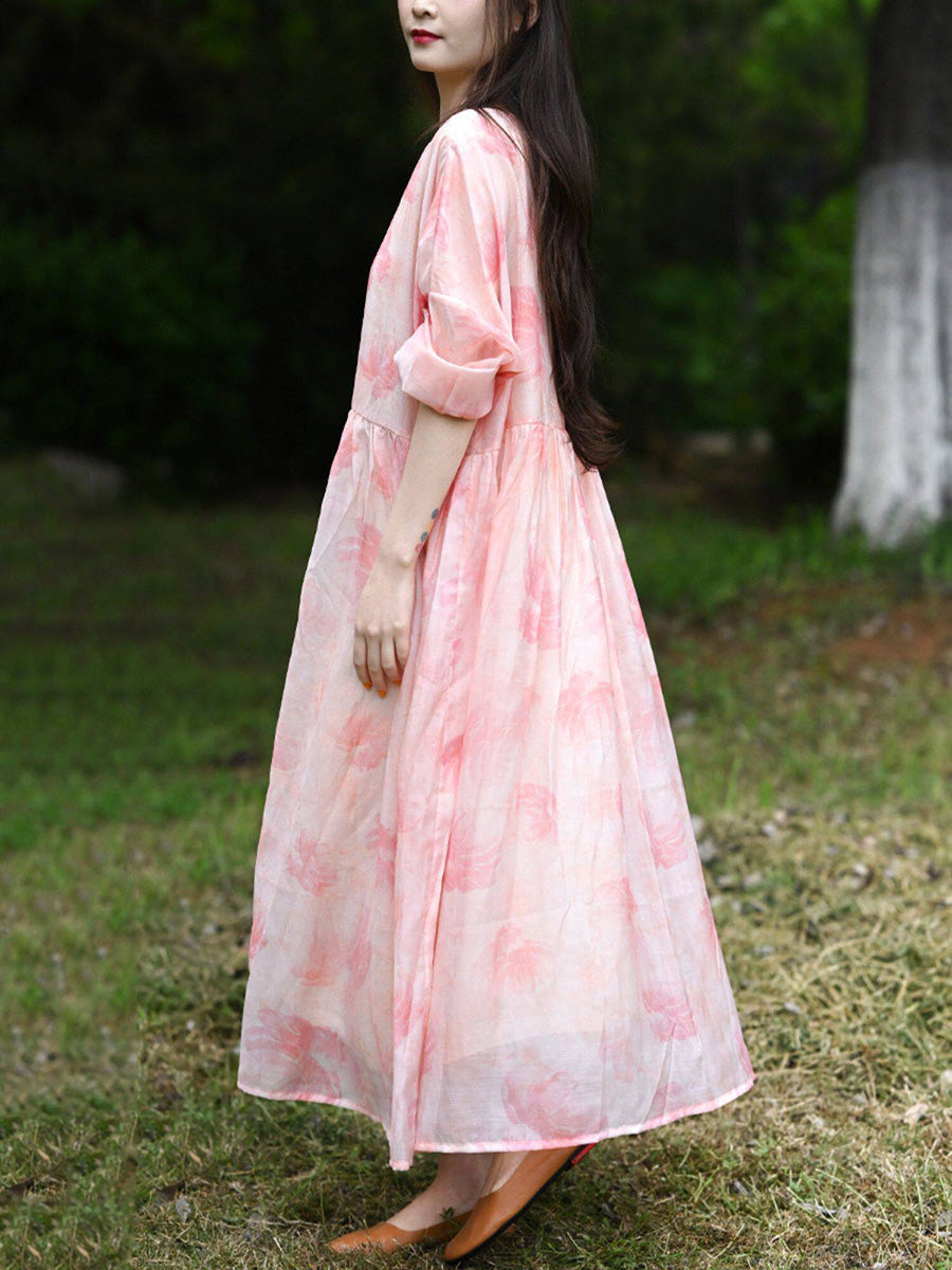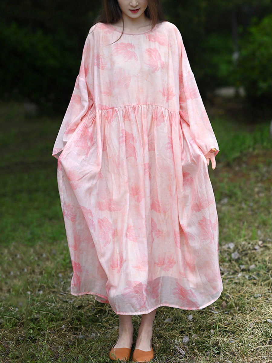 Women Summer Artsy Flower Soft O-Neck Dress (Two Pieces)