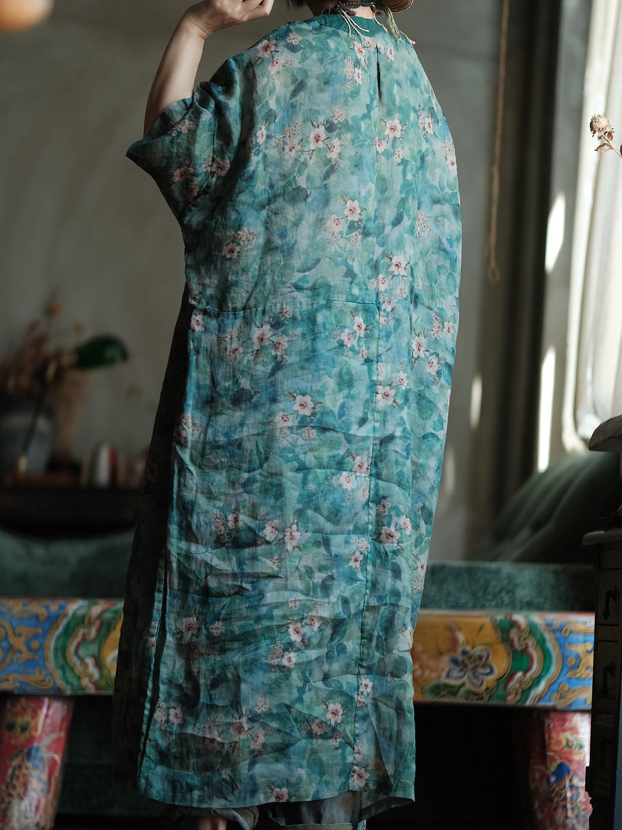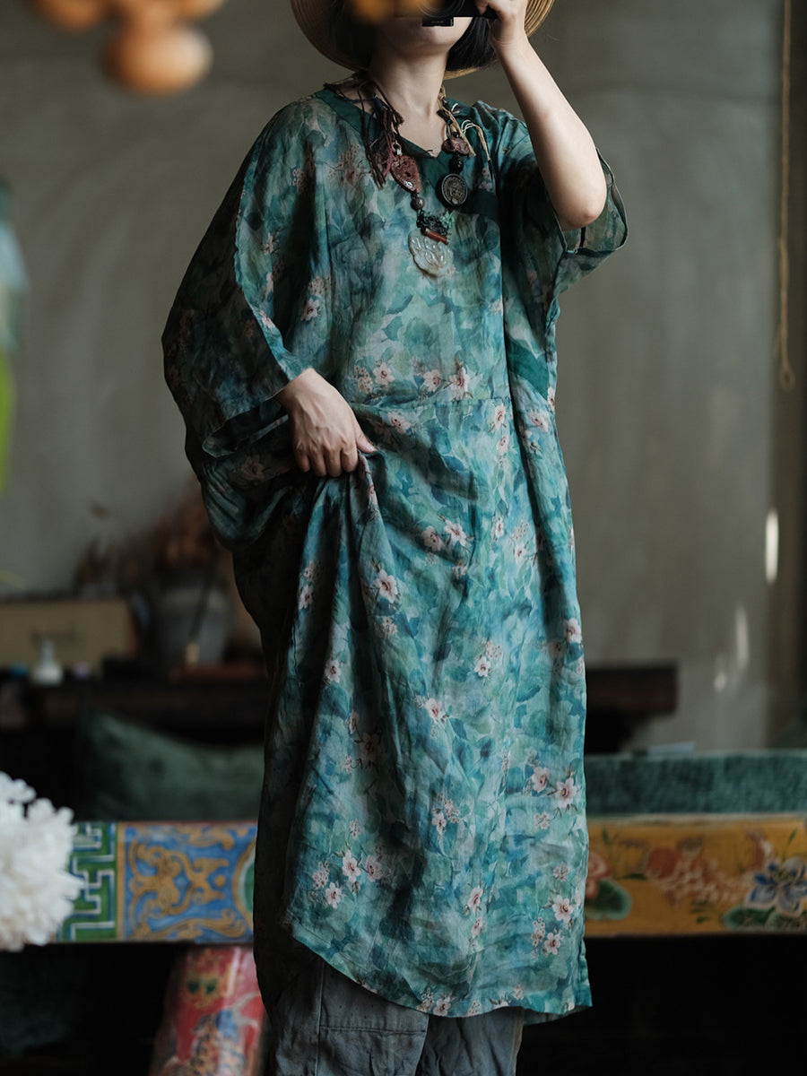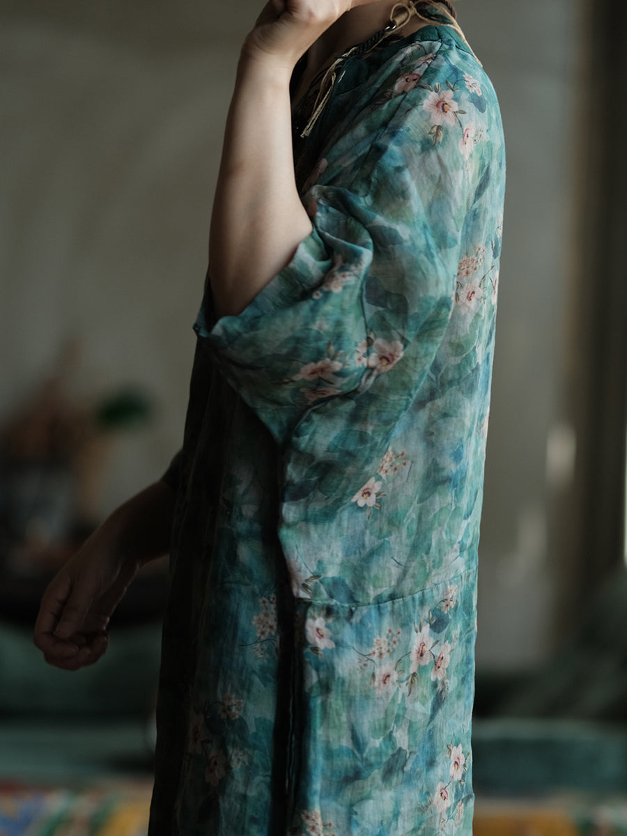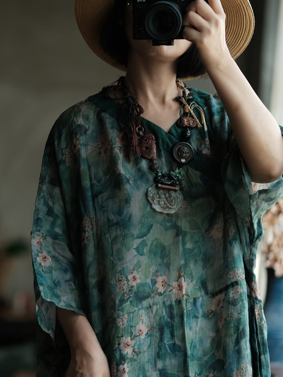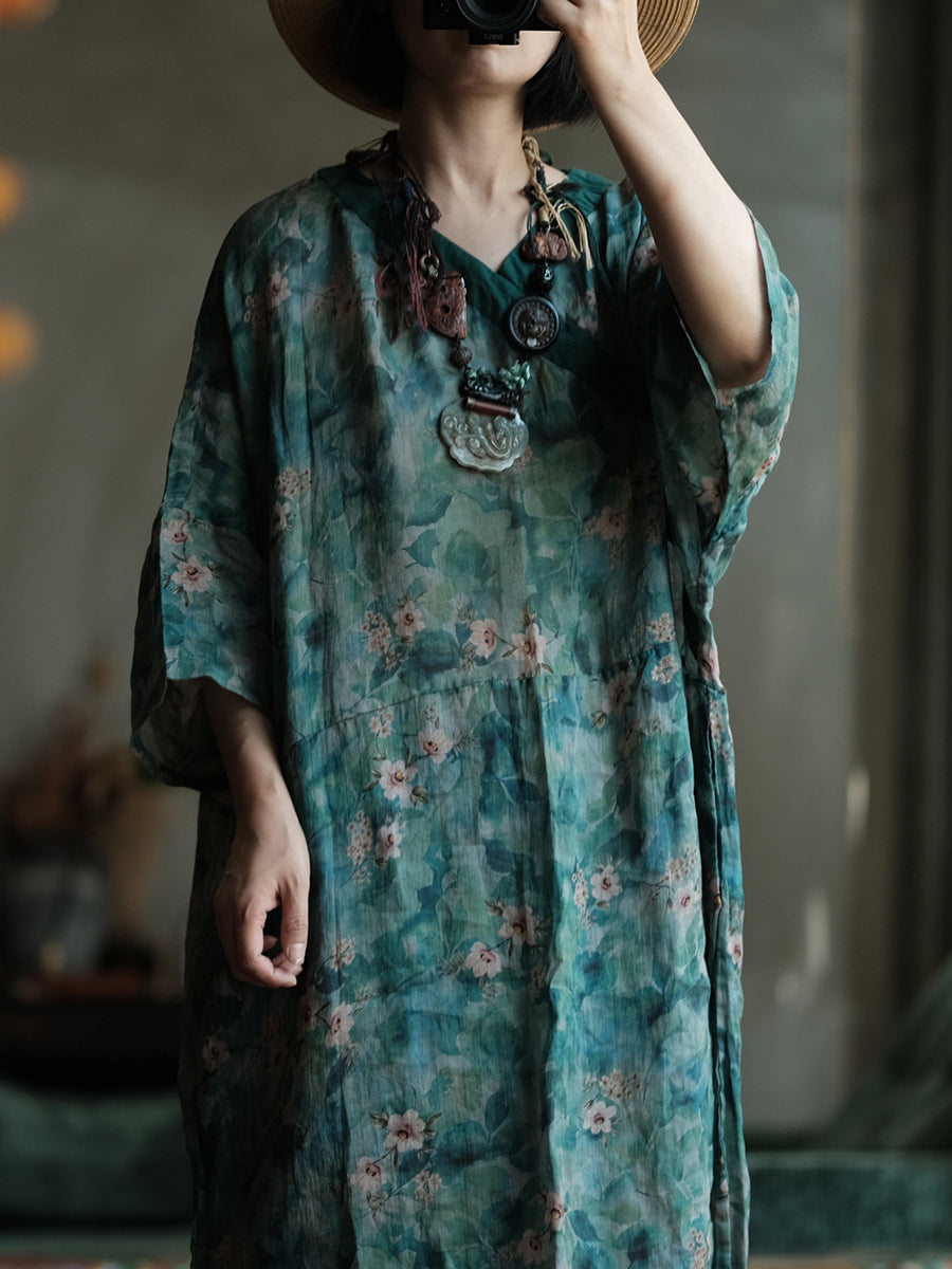 Women Summer Artsy Flower V-Neck Dress