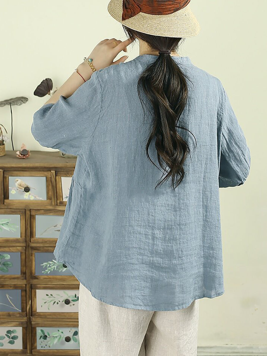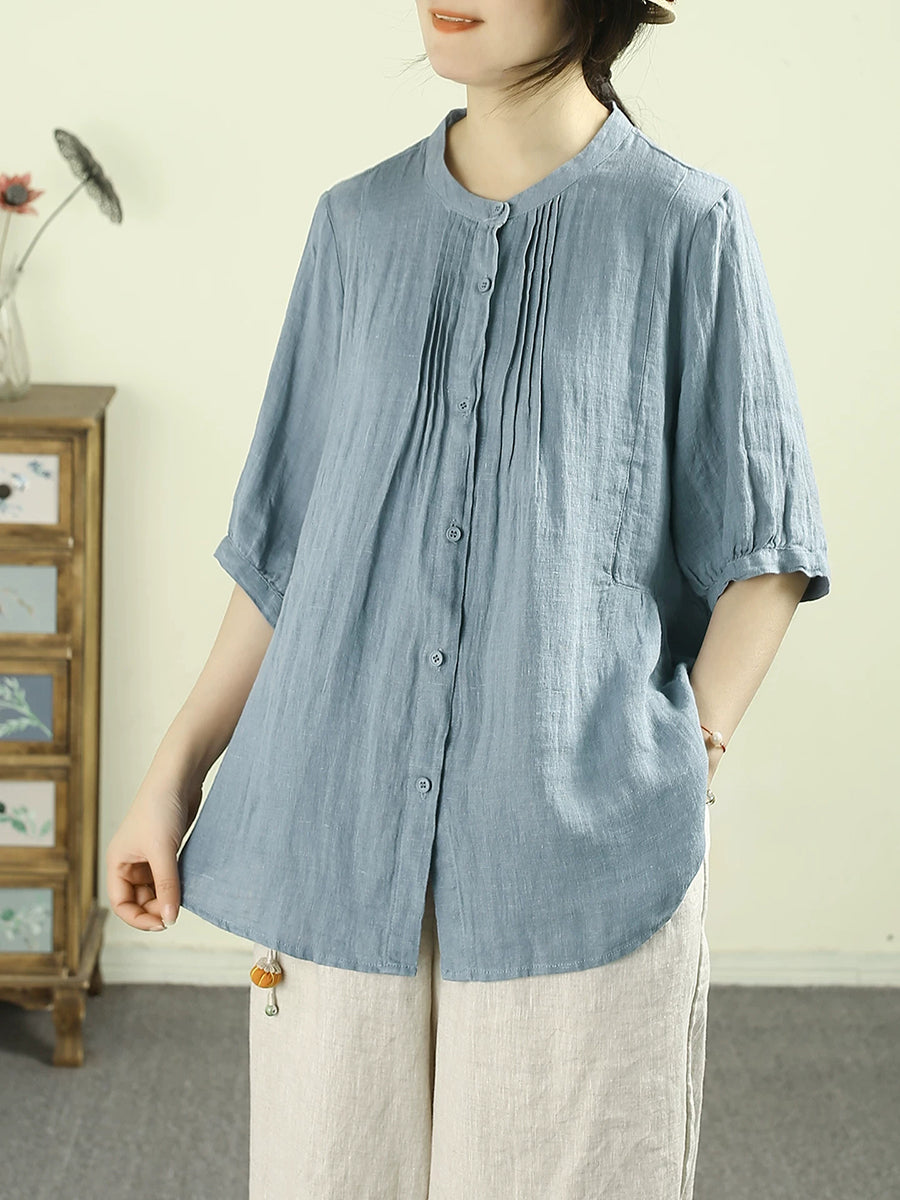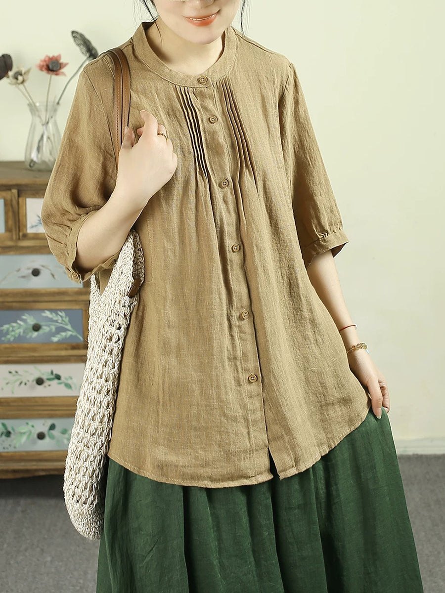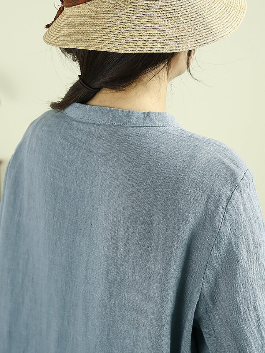 Women Summer Artsy Pure Color 100%Linen Blouse