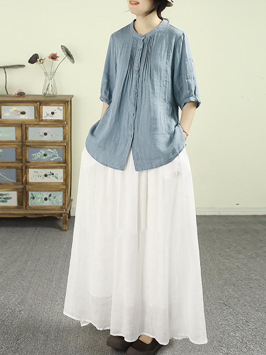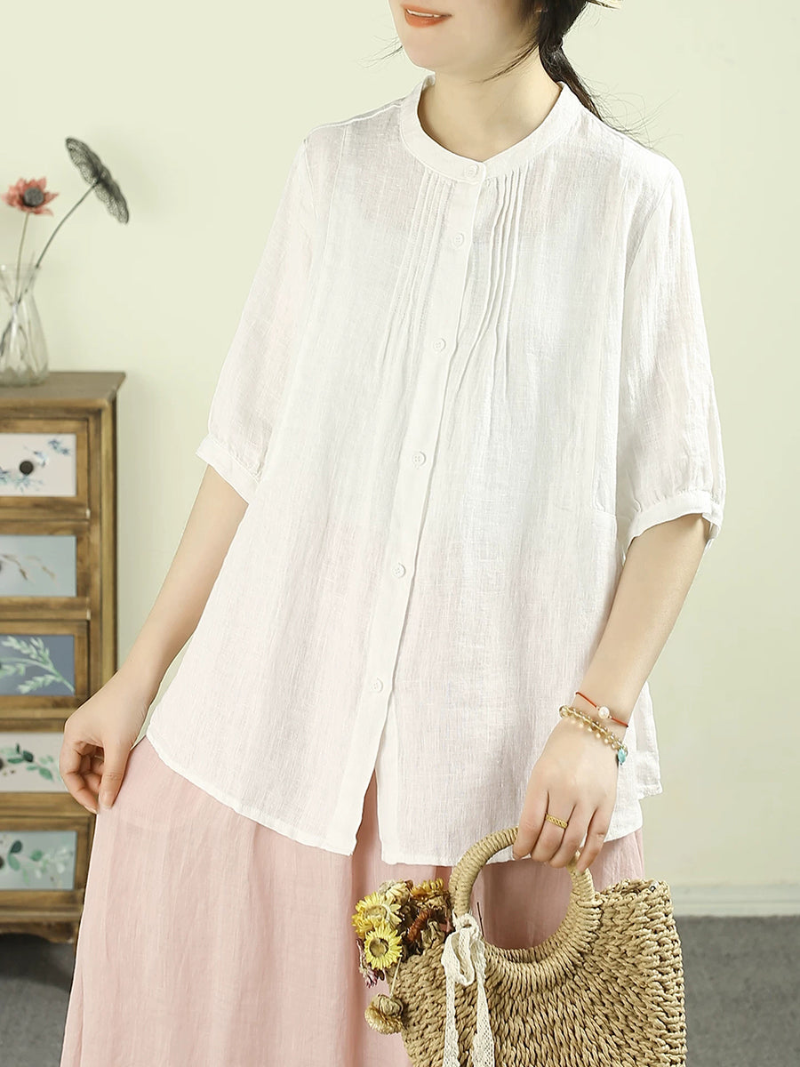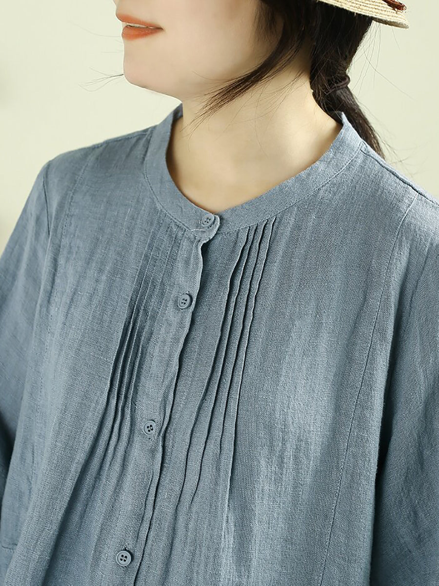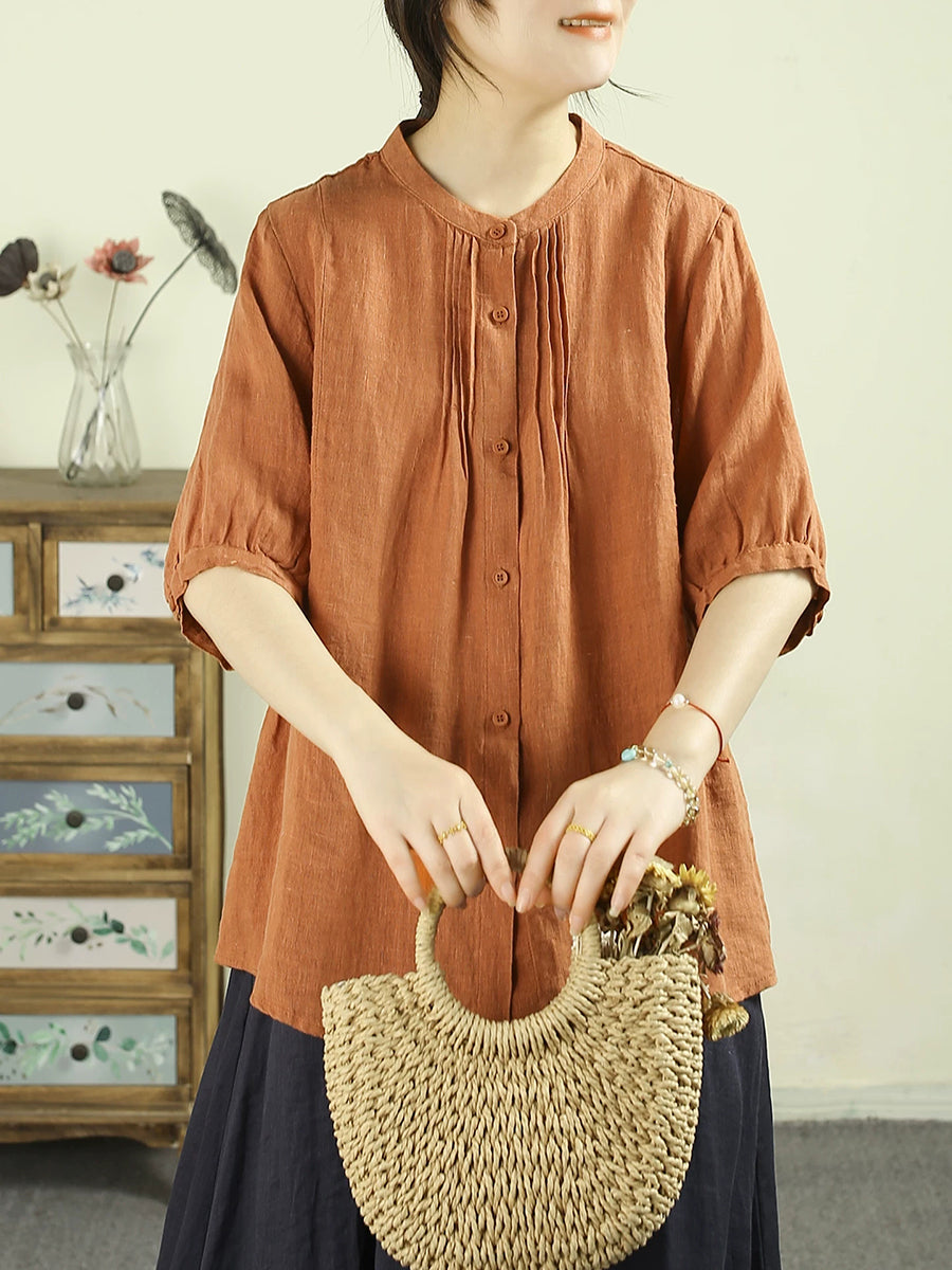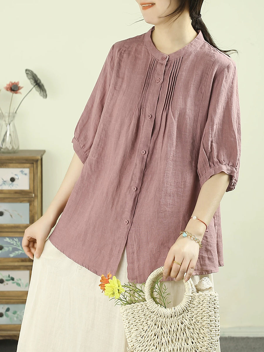 Women Summer Artsy Pure Color 100%Linen Blouse