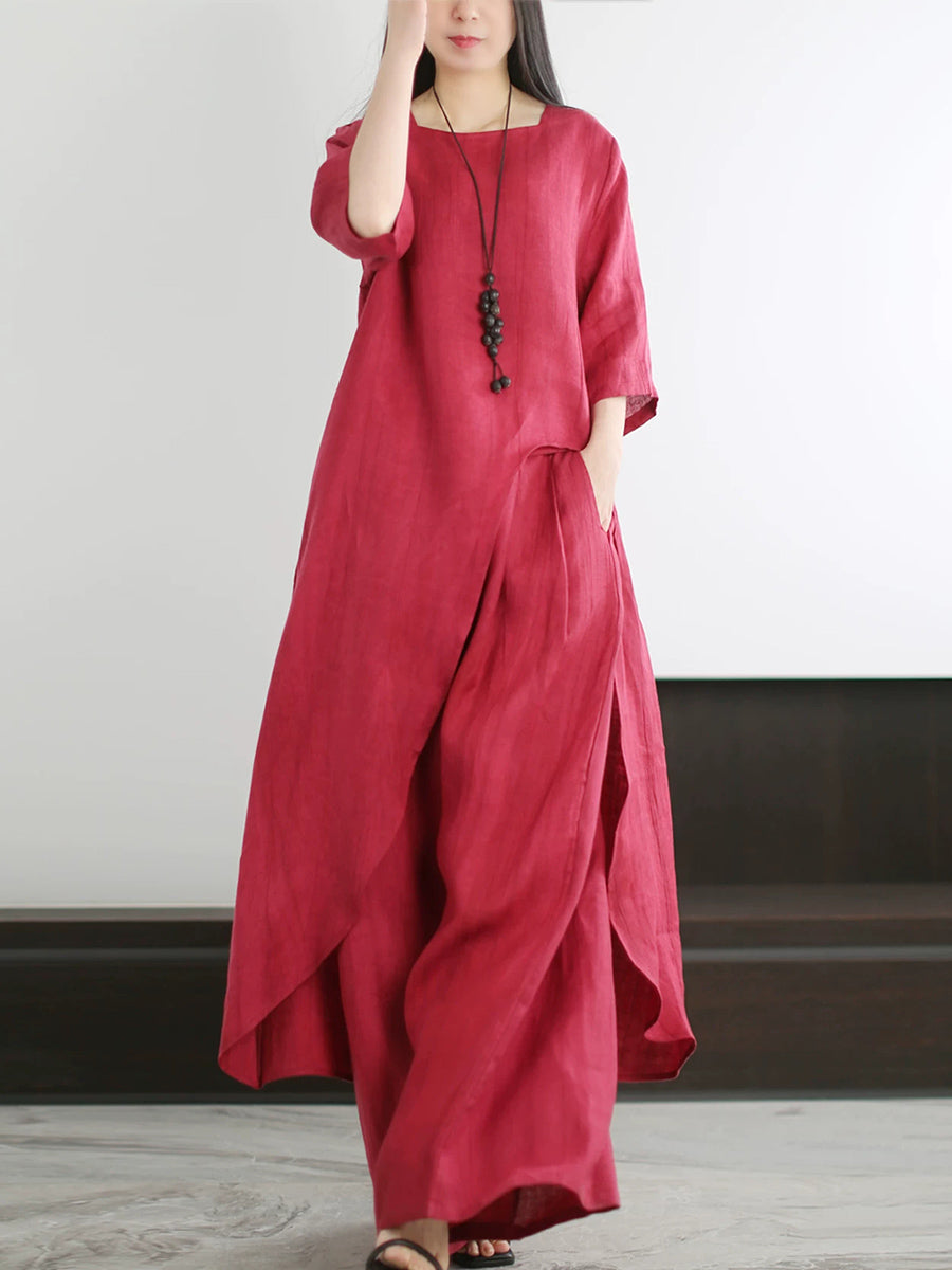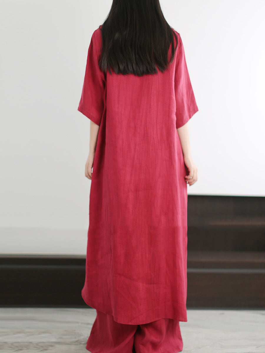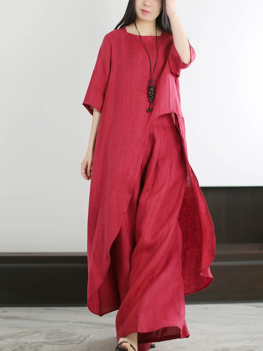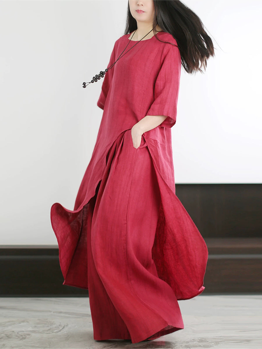 Women Summer Artsy Pure Color O-Neck Suits