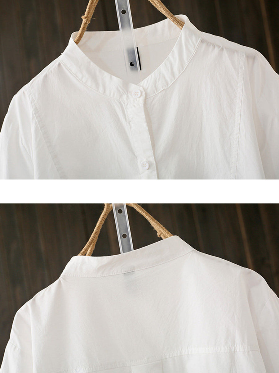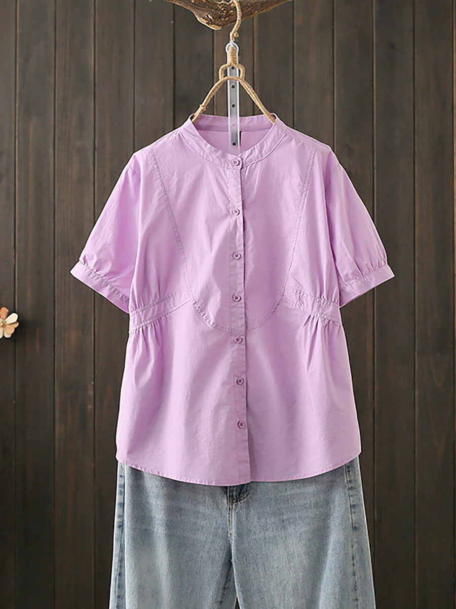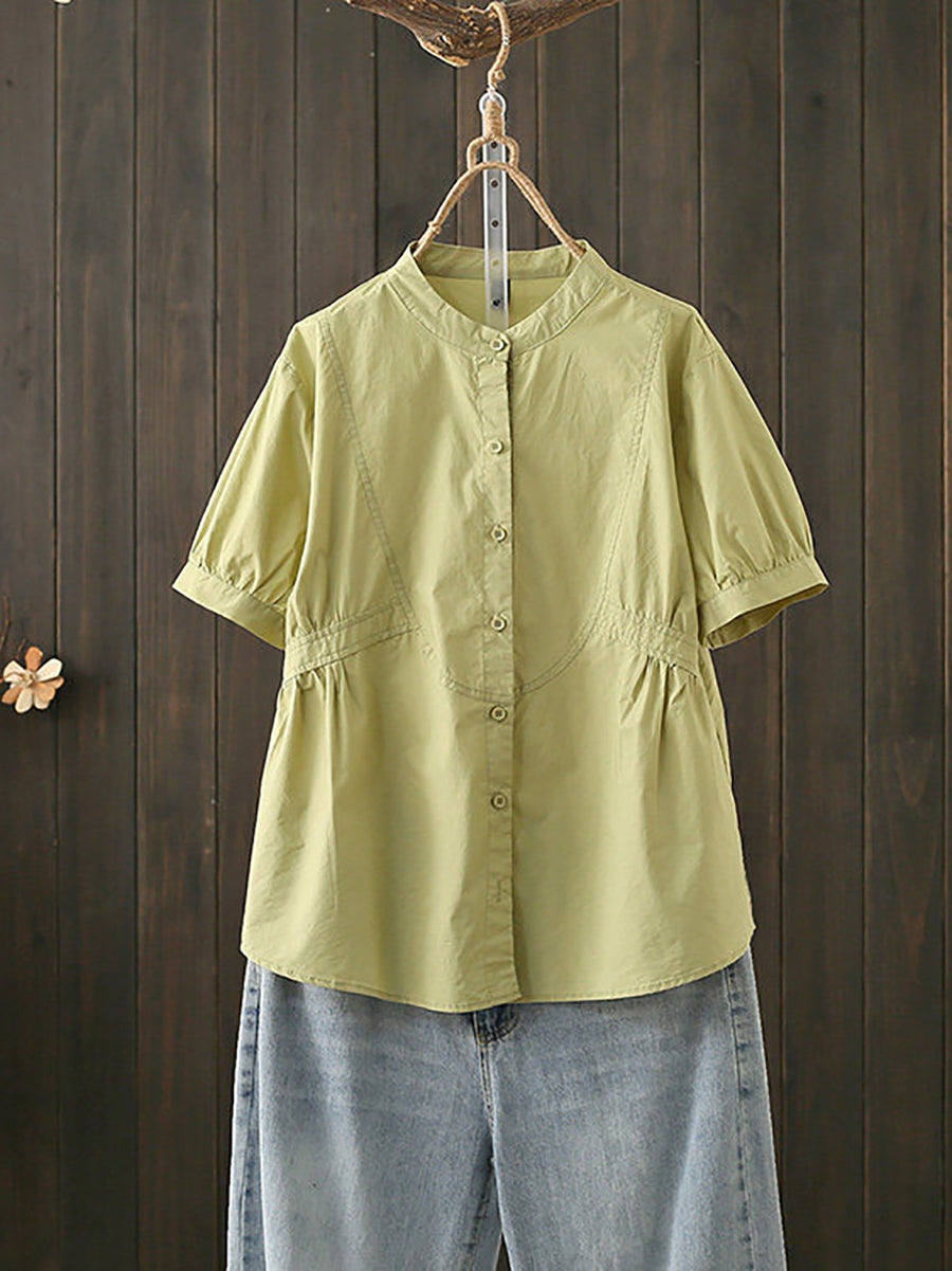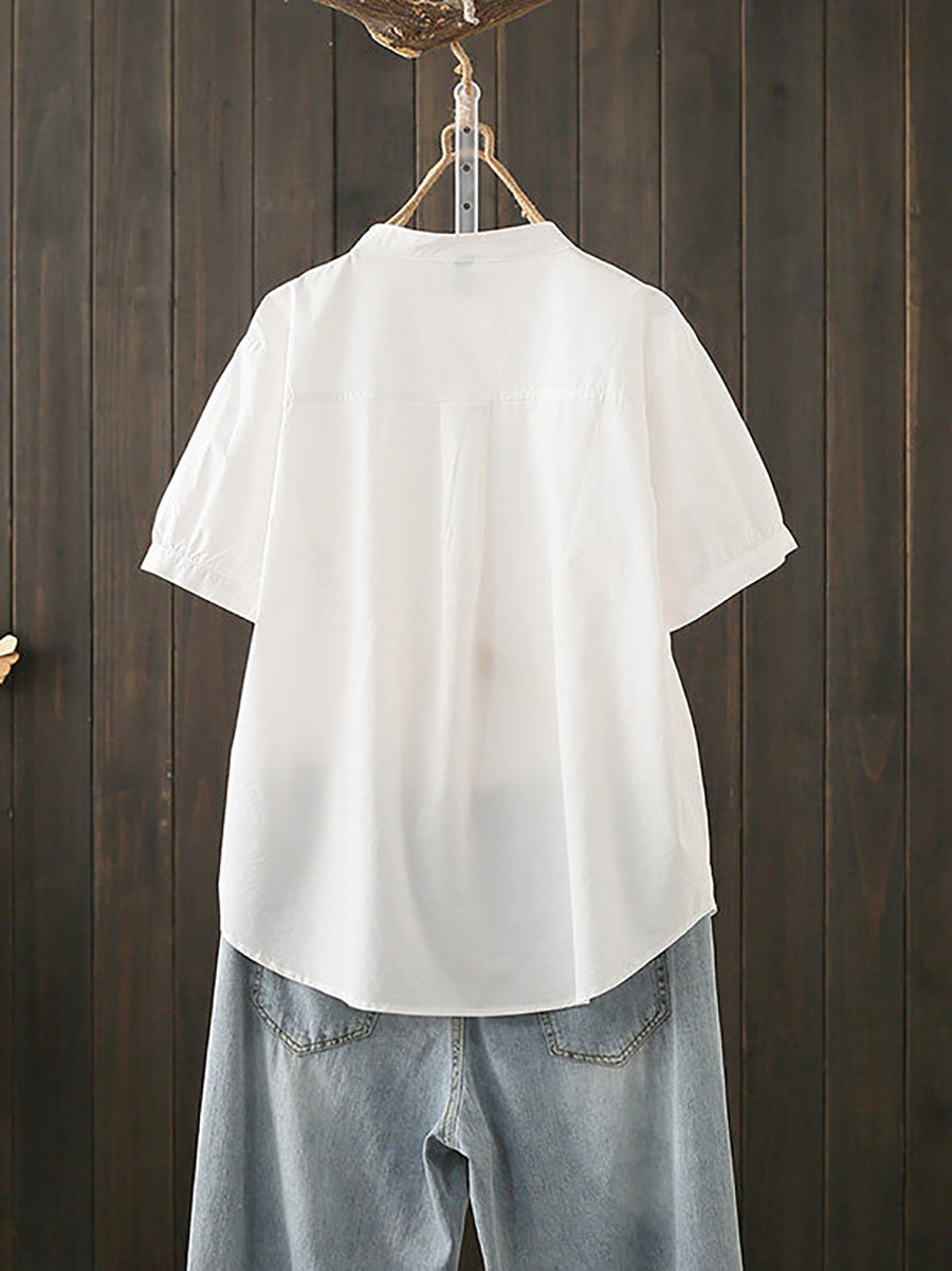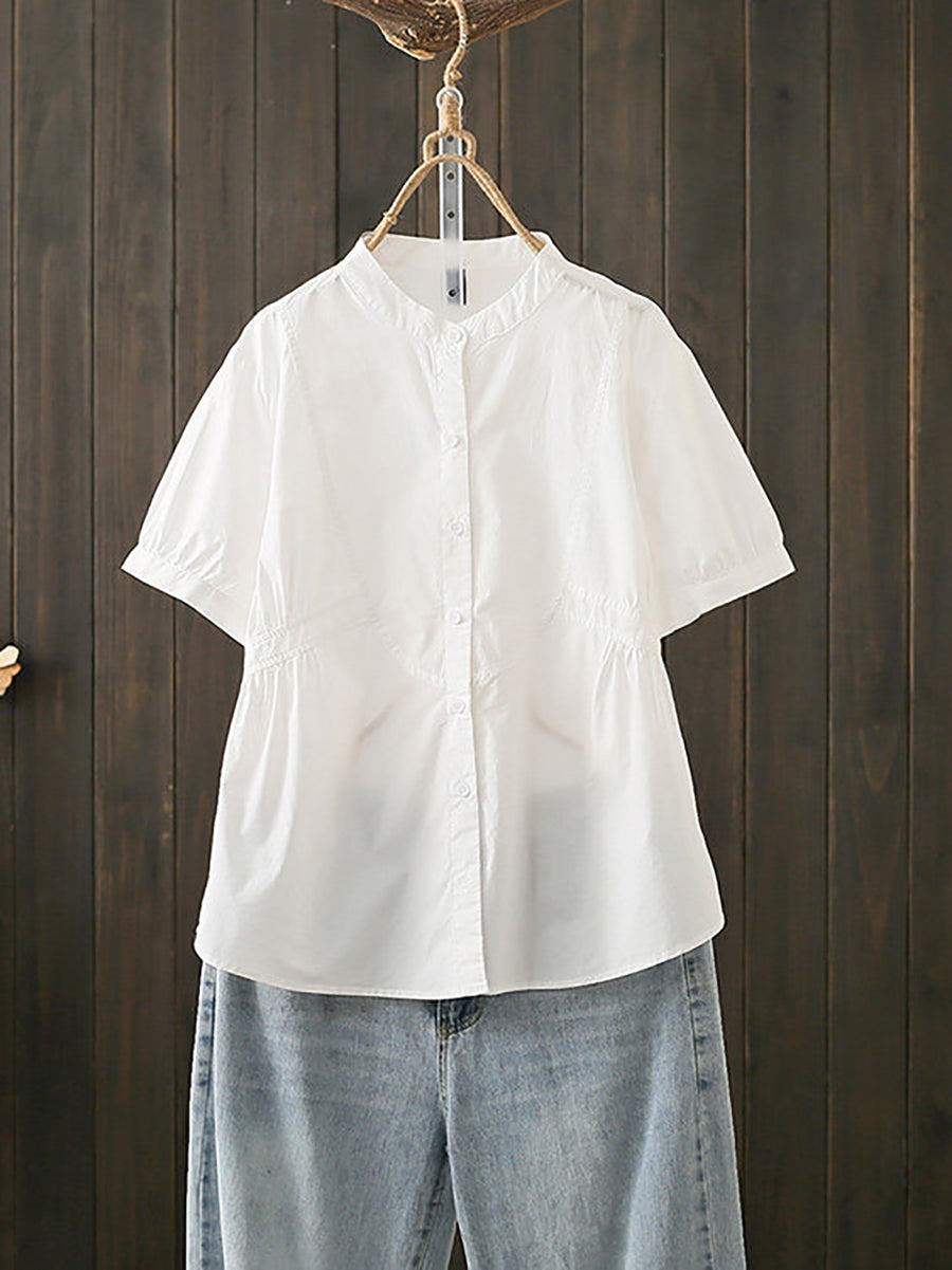 Women Summer Artsy Stand Collar Cotton Blouse