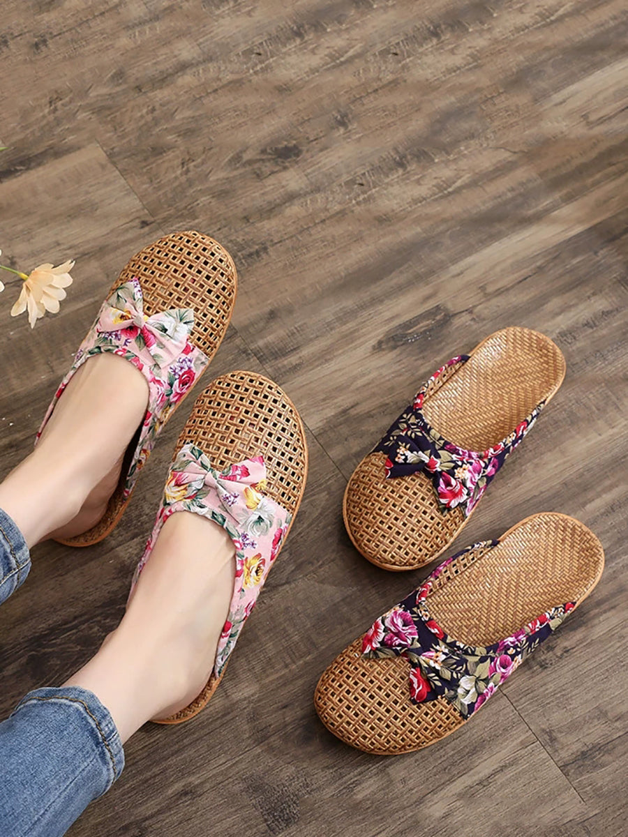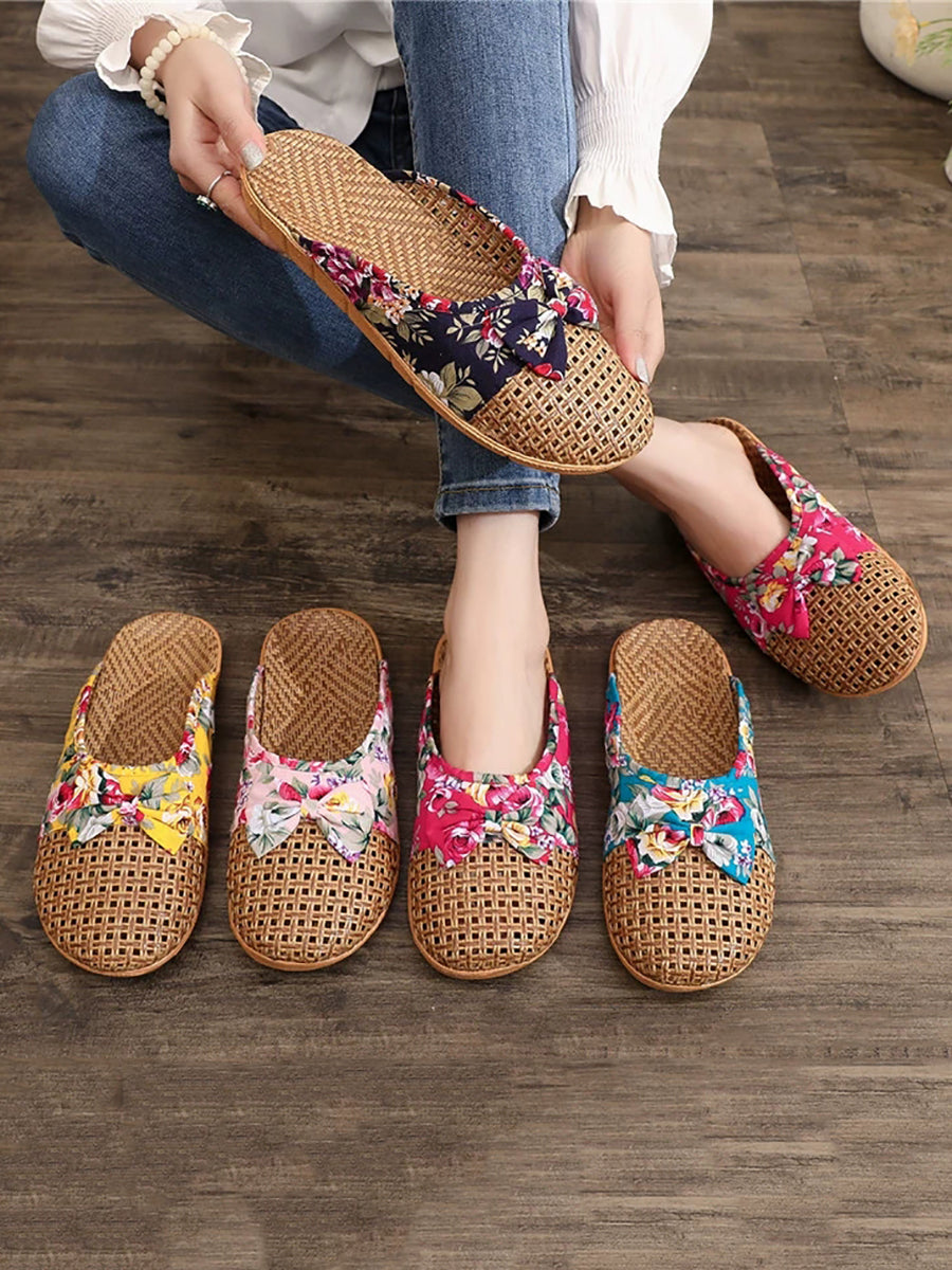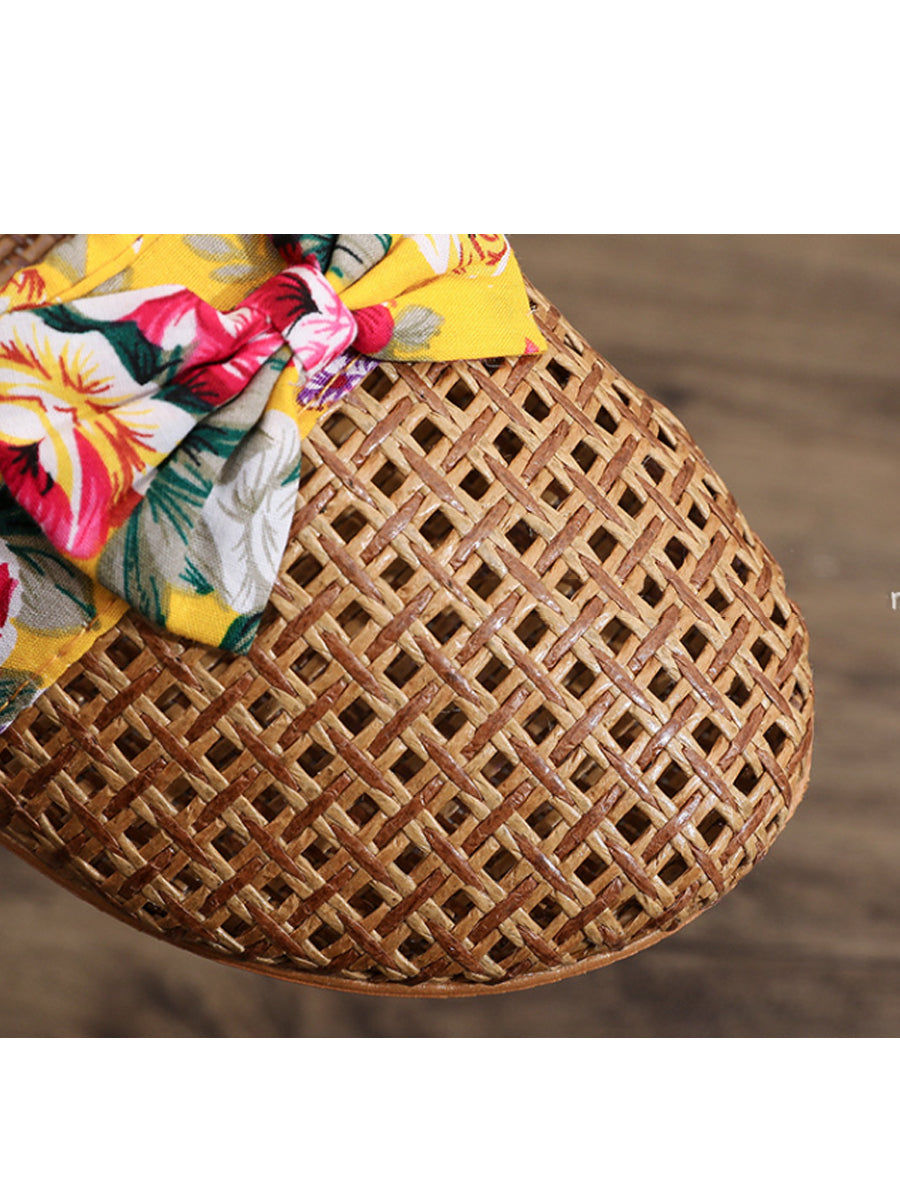Women Summer Cane Grass Weaving Spliced Slippers