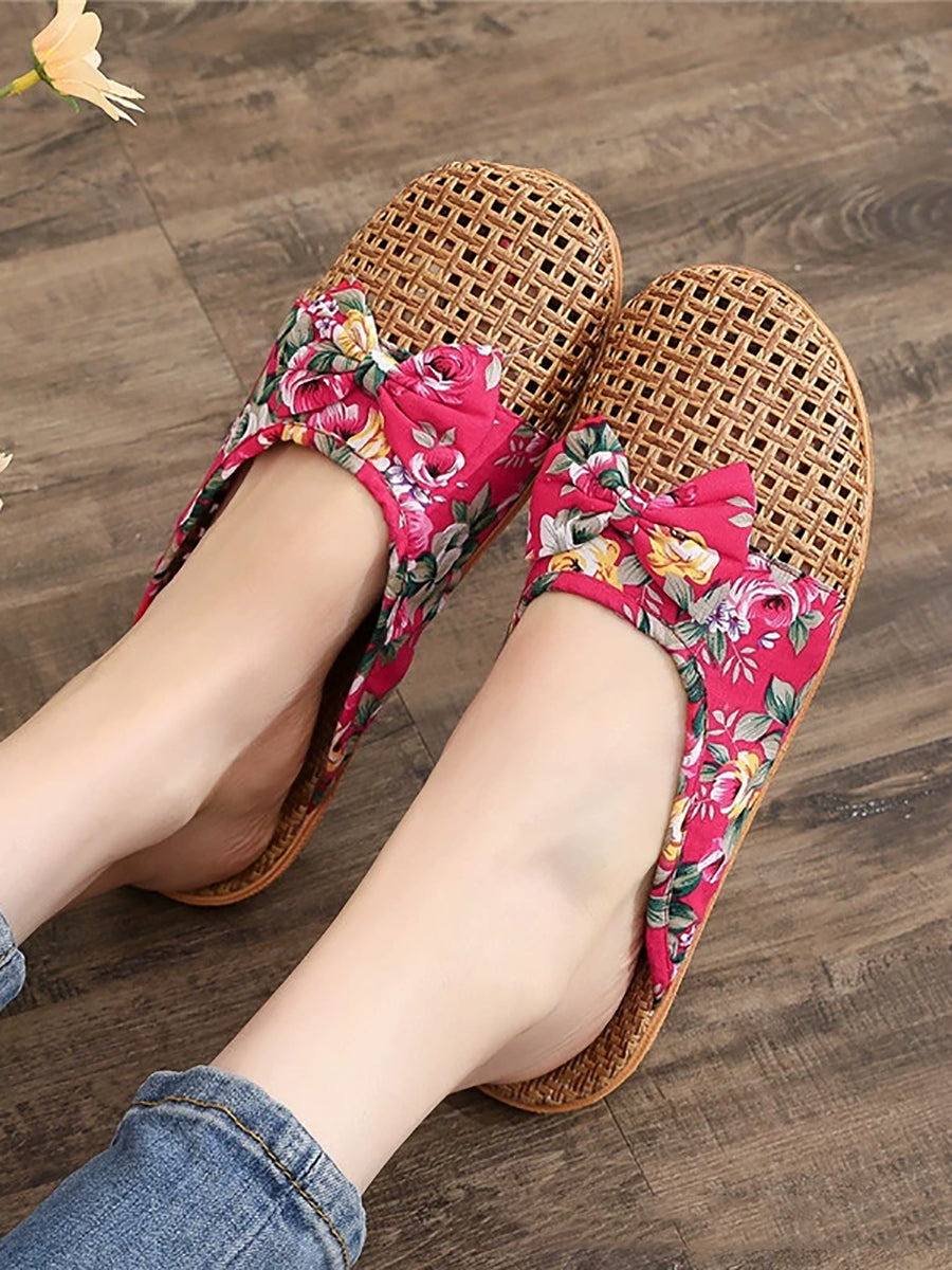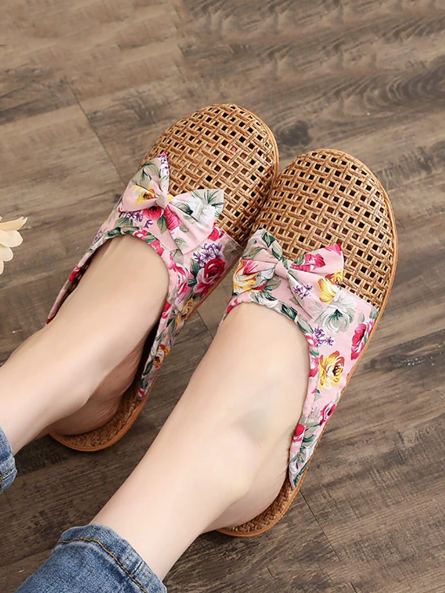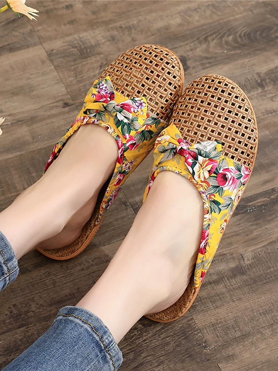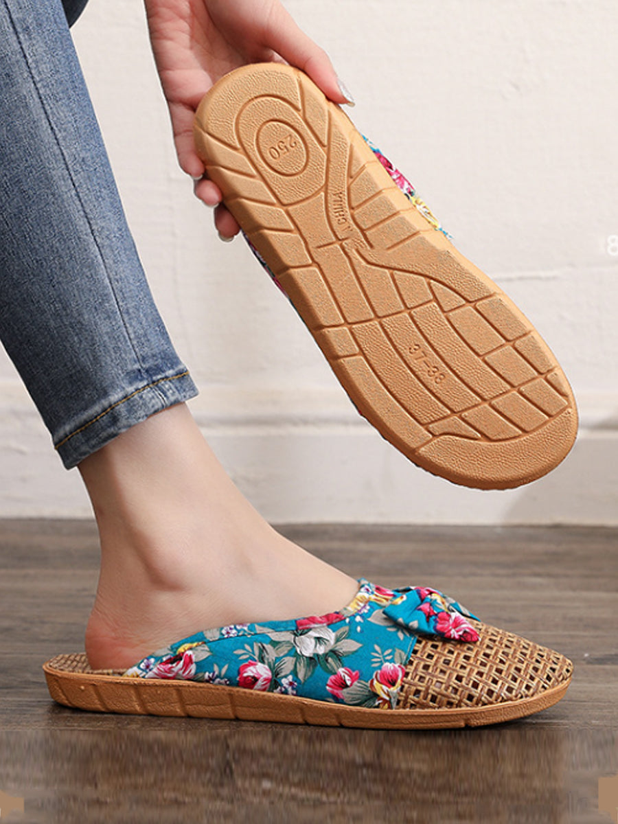 Women Summer Cane Grass Weaving Spliced Slippers