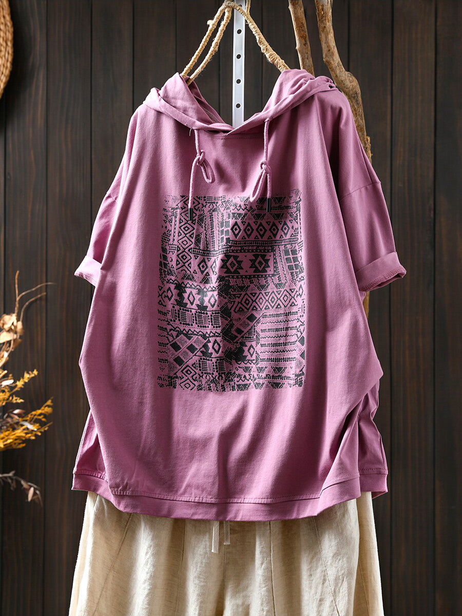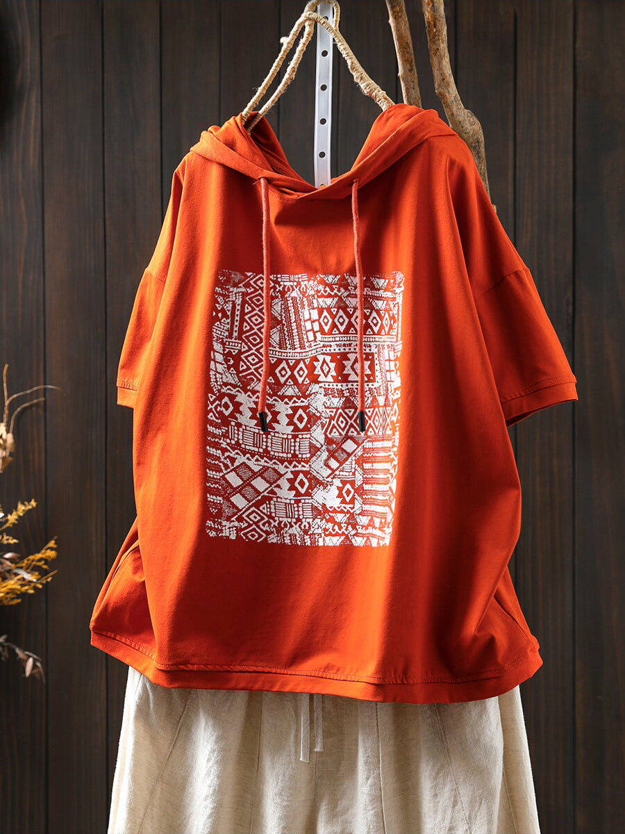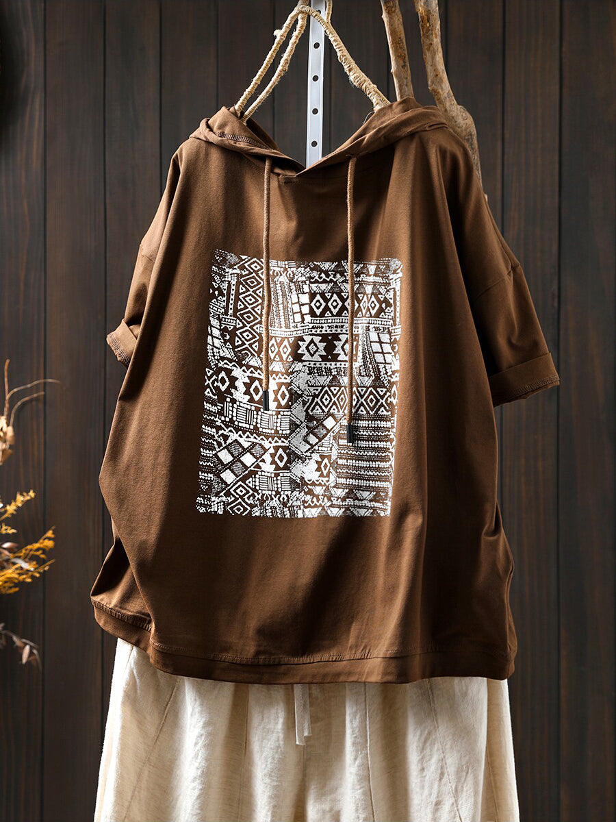 Women Summer Casual Print Cotton Hoodie