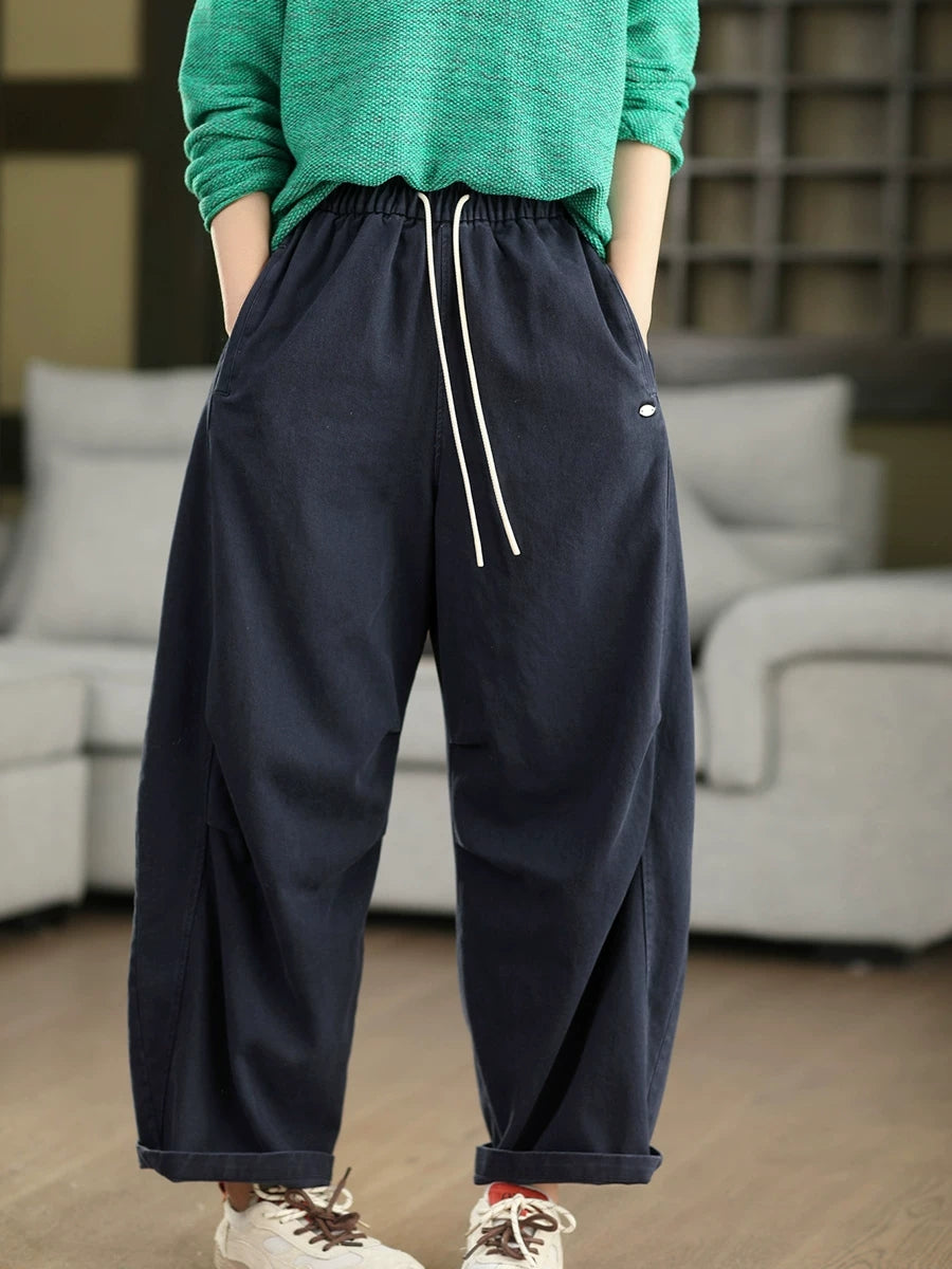Women Summer Casual Pure Color 100%Cotton Harem Pants