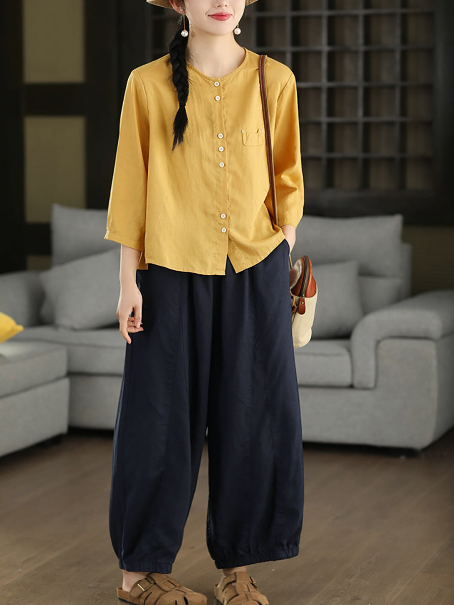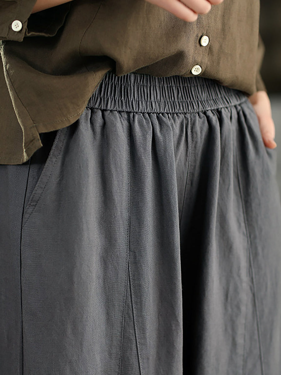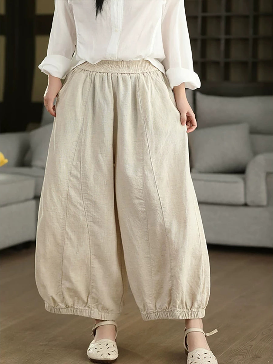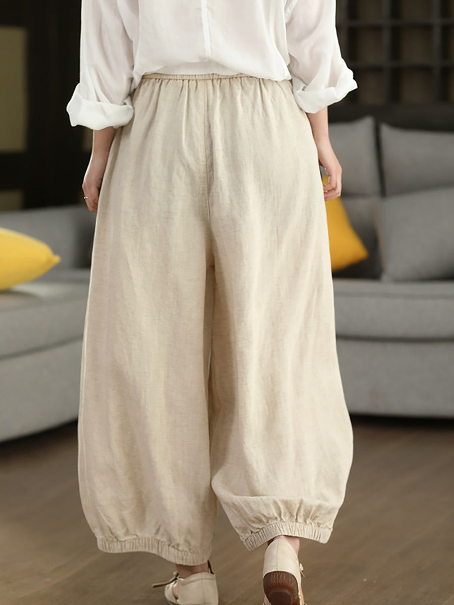 Women Summer Casual Pure Color 100%Linen Bloomers