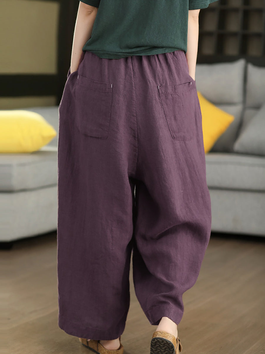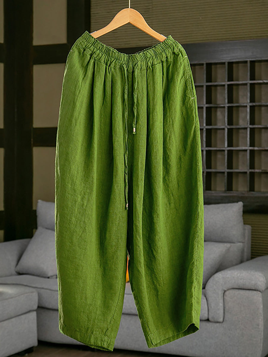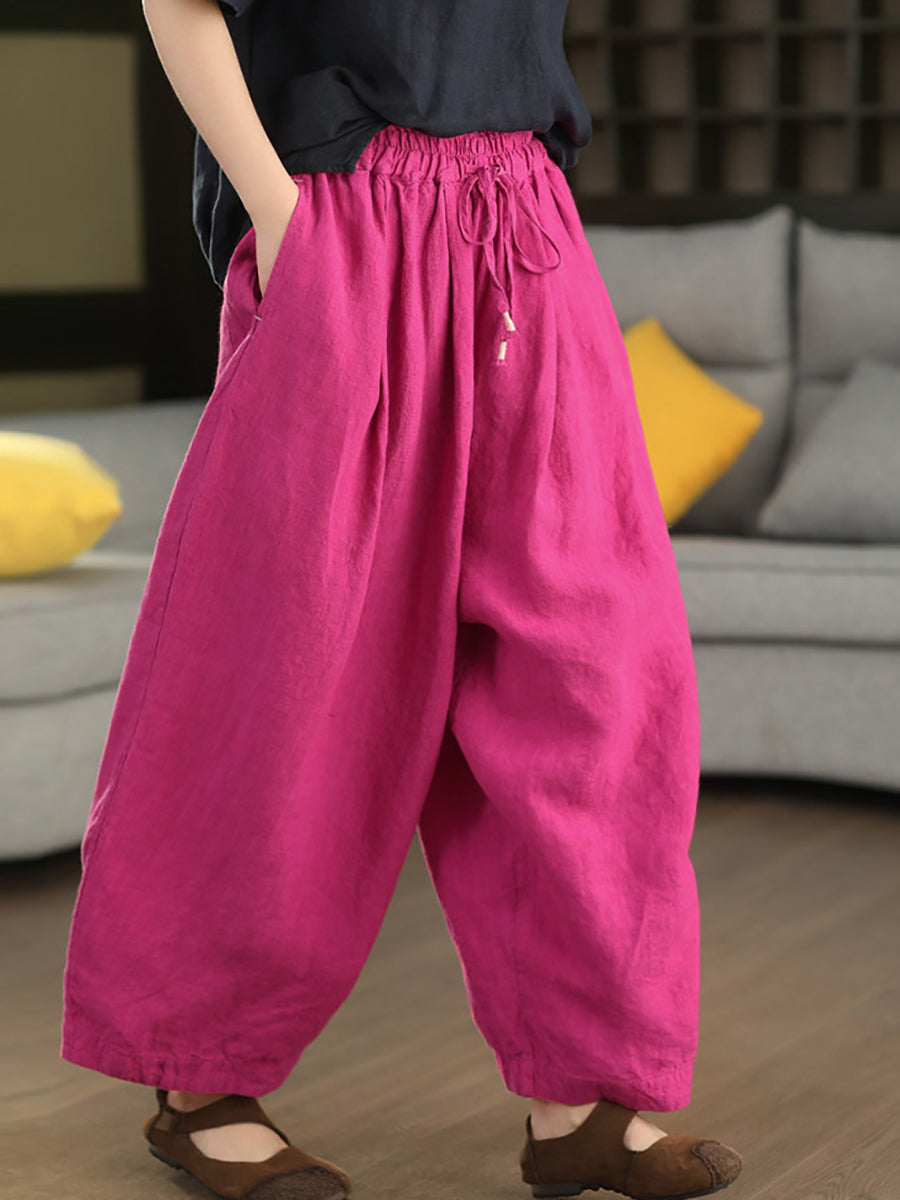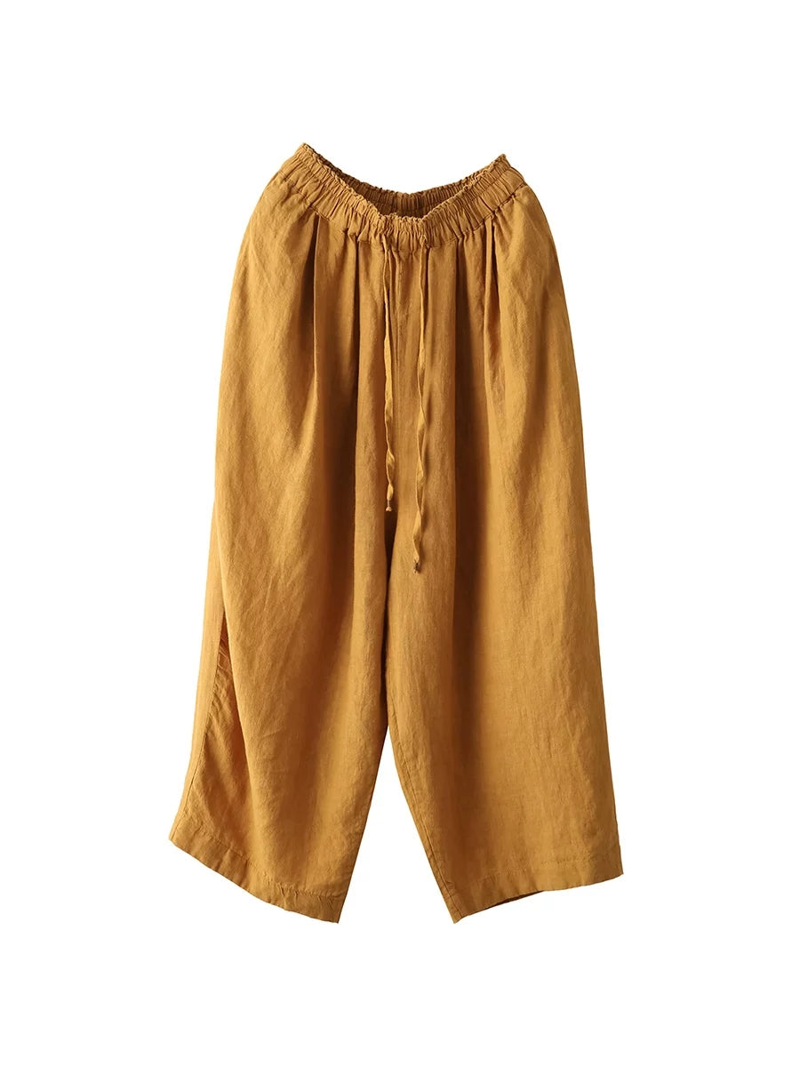 Women Summer Casual Pure Color 100%Linen Harem Pants