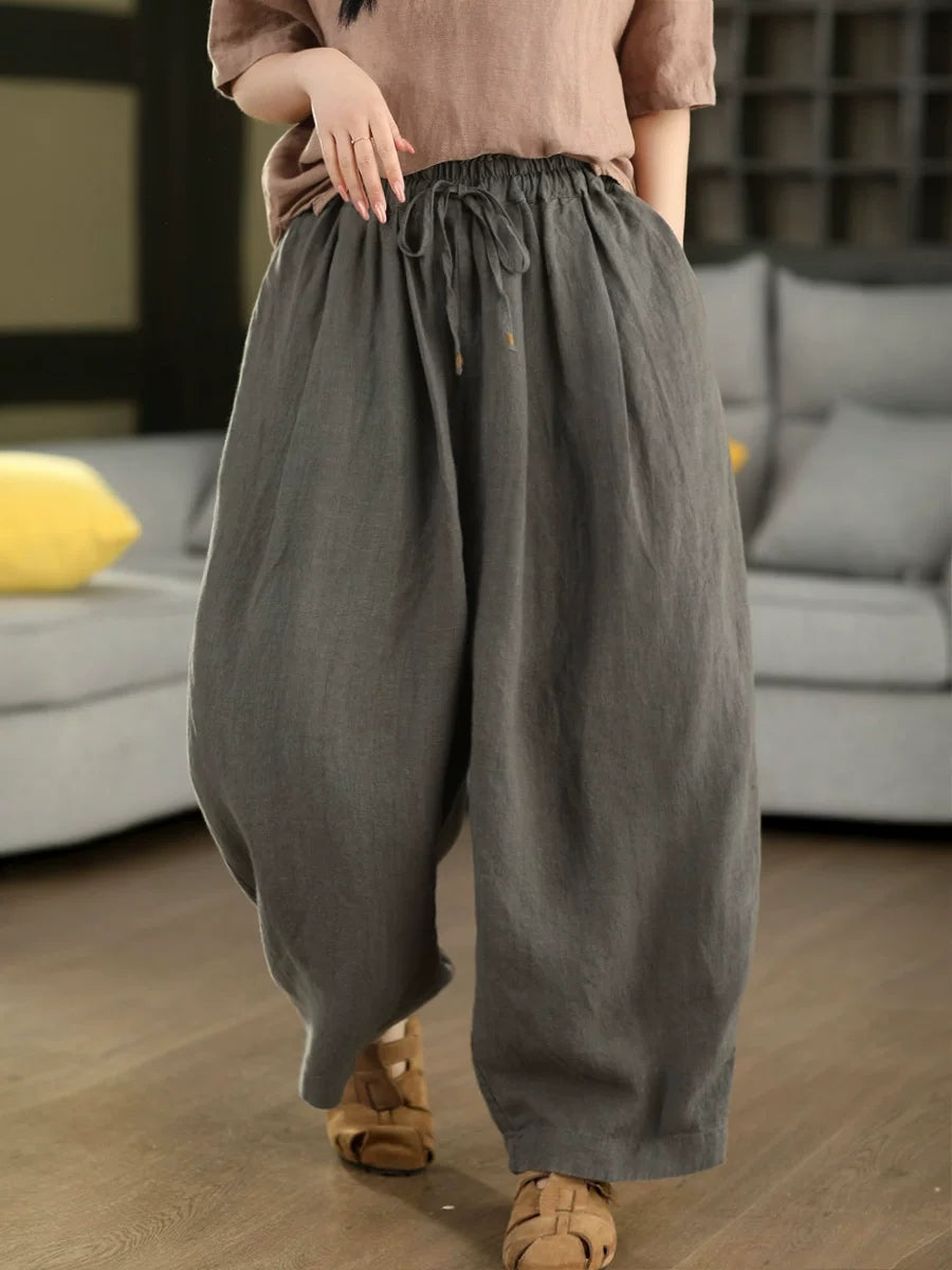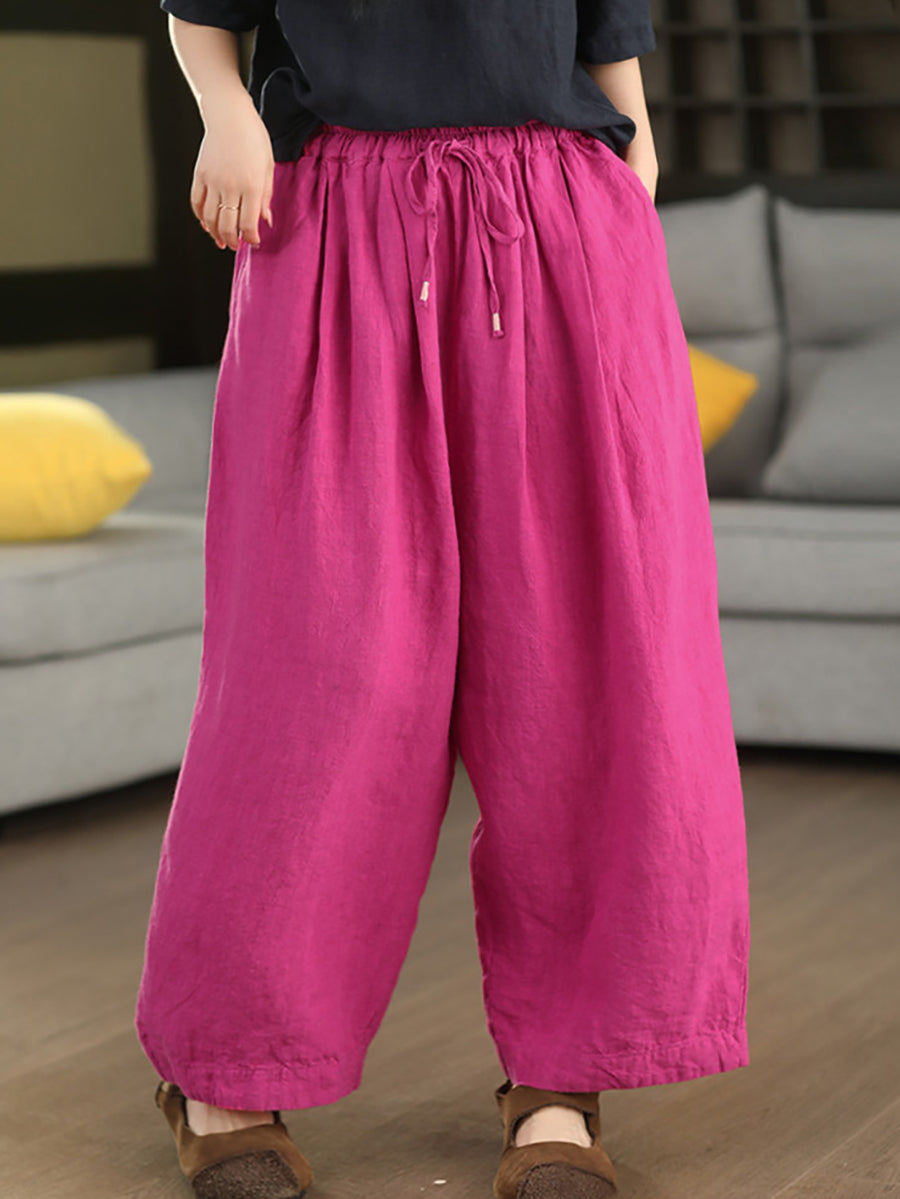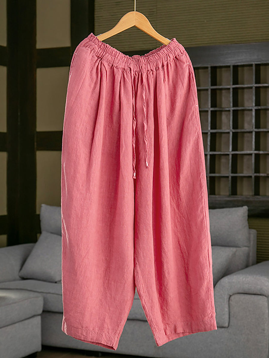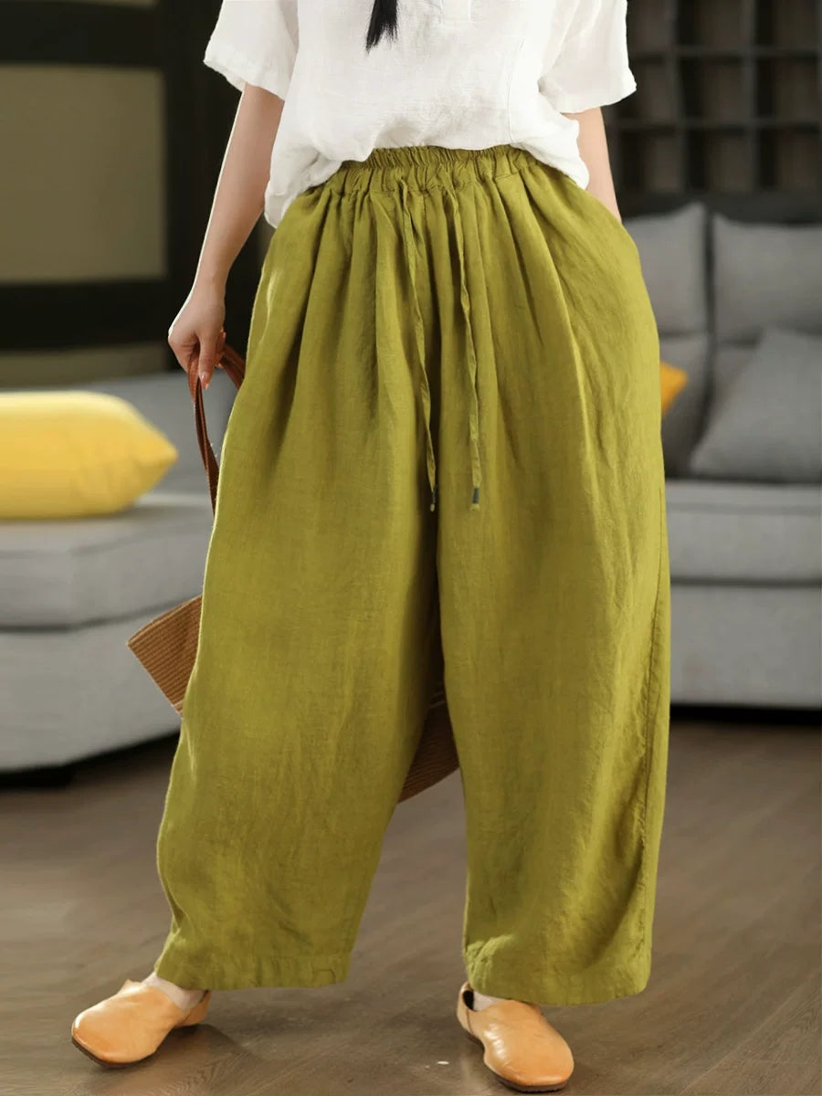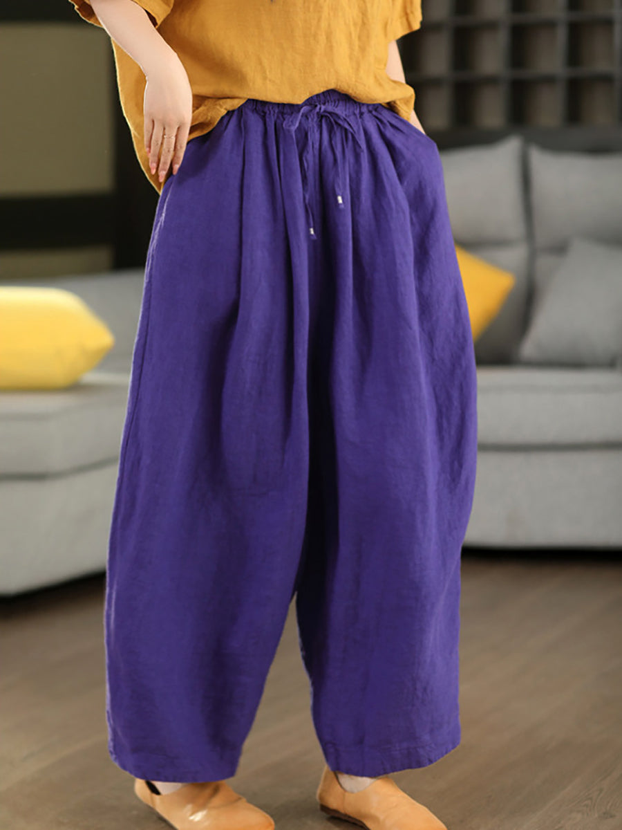Women Summer Casual Pure Color 100%Linen Harem Pants