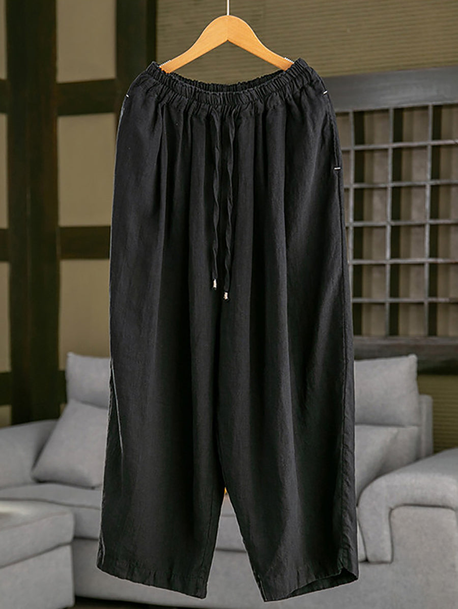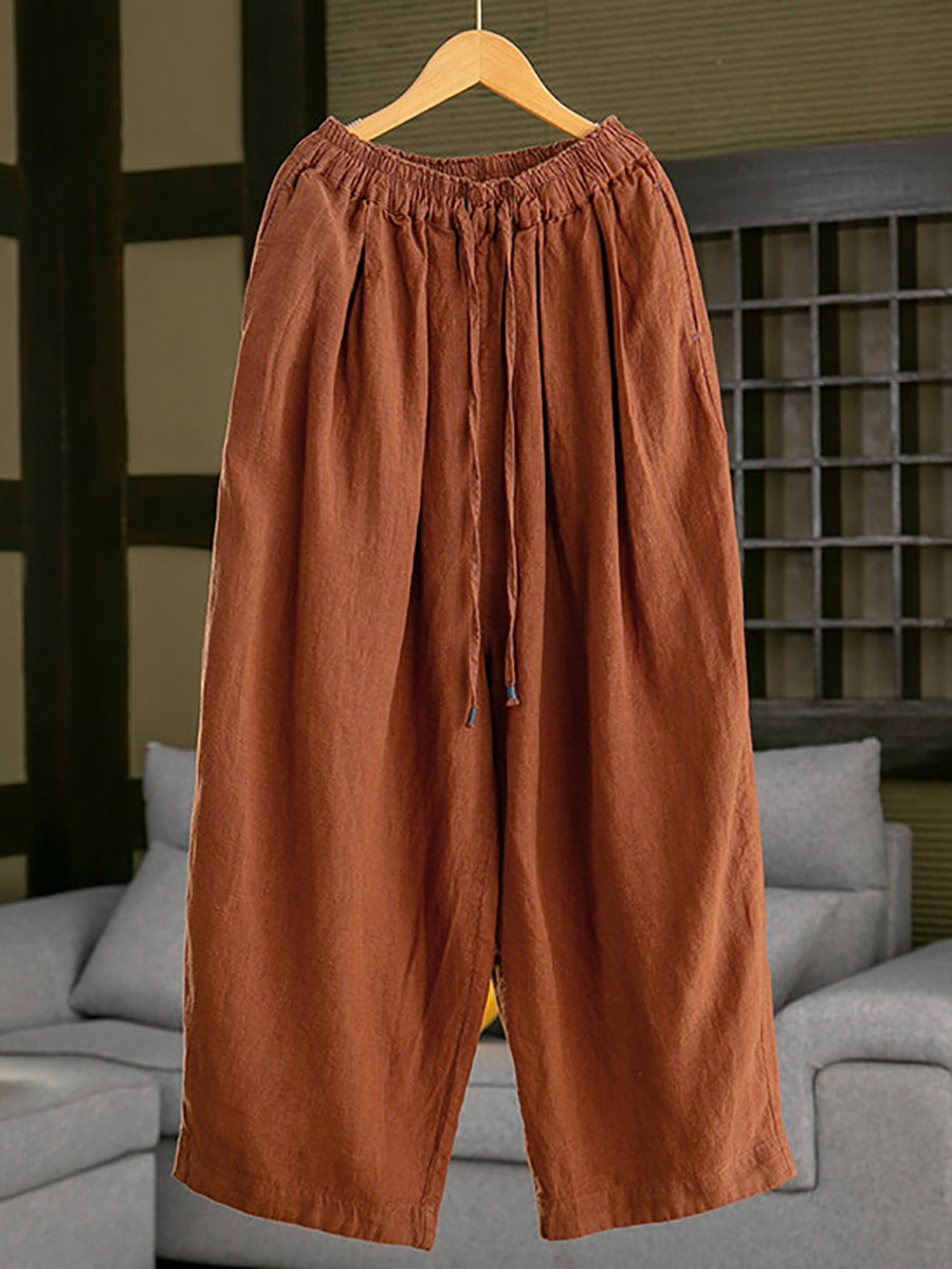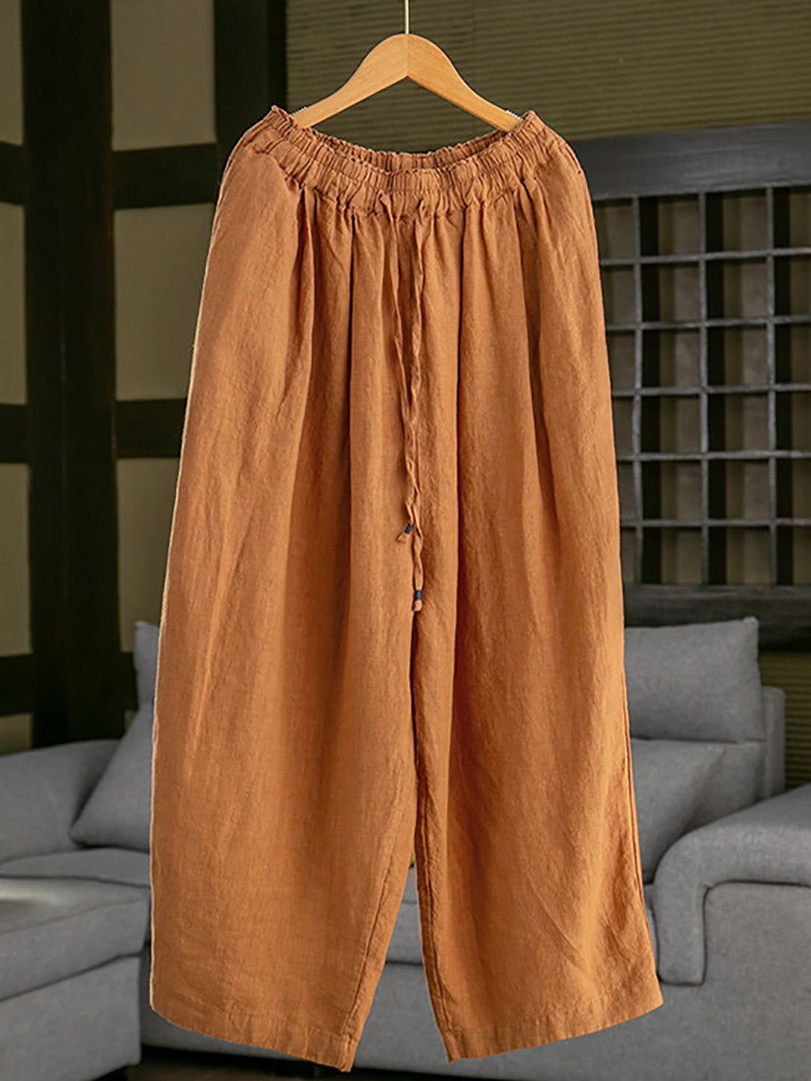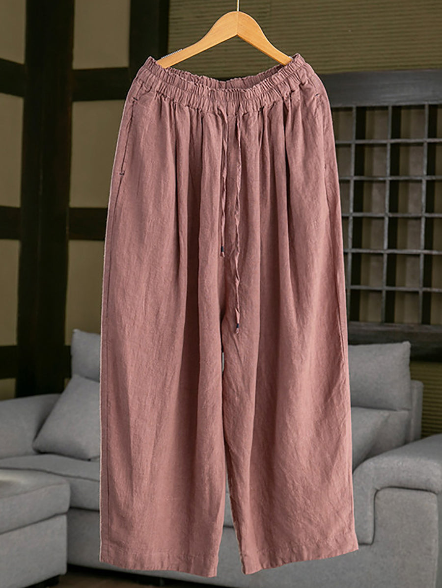 Women Summer Casual Pure Color 100%Linen Harem Pants