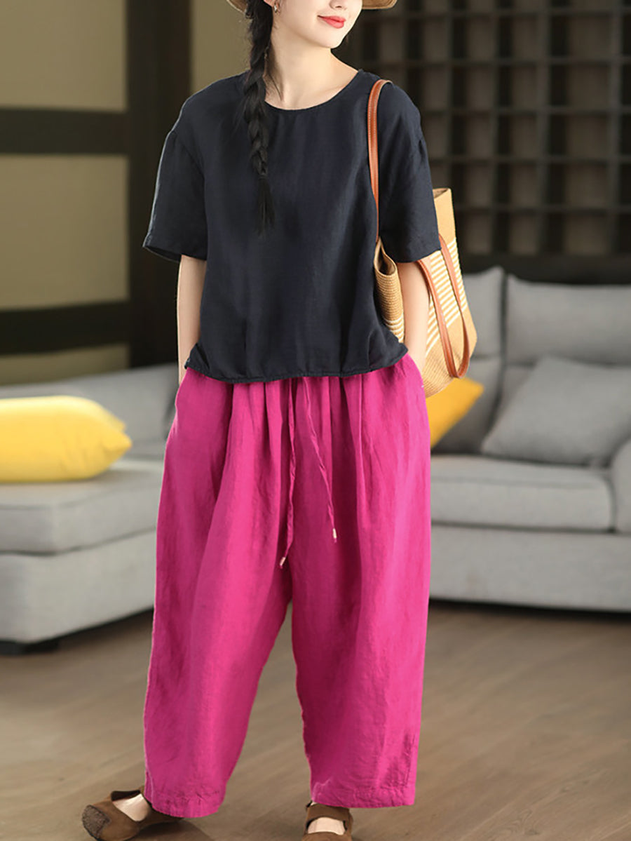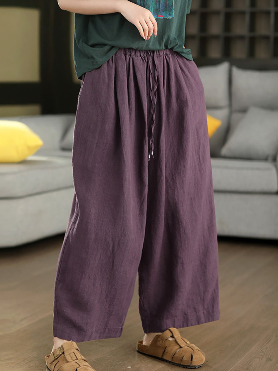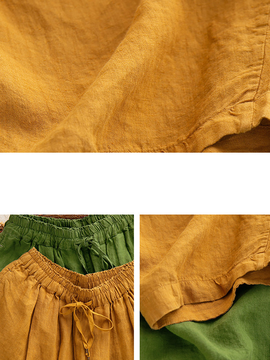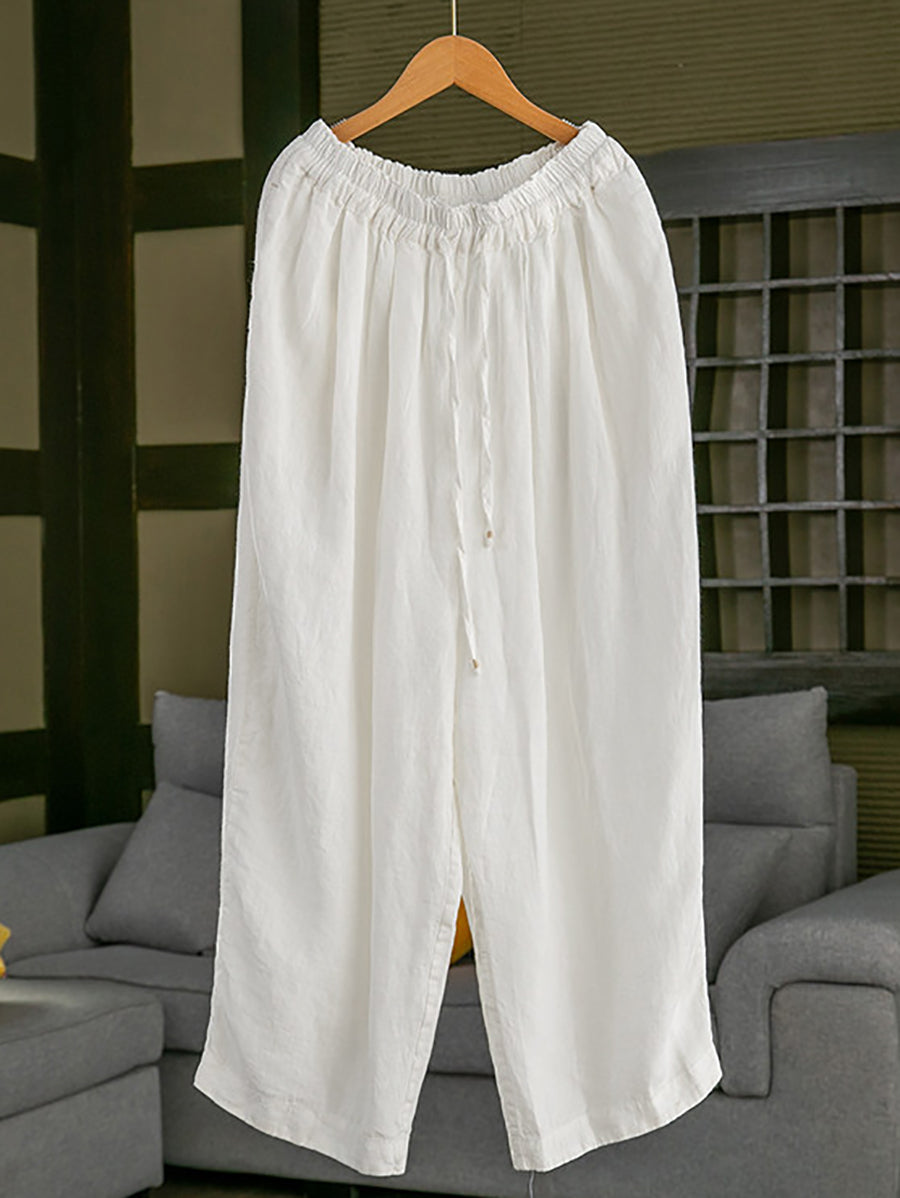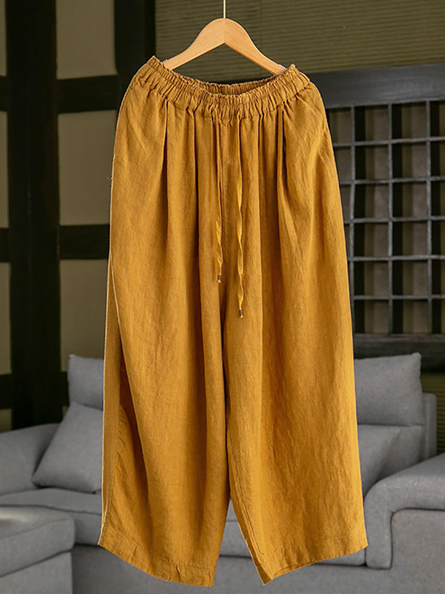 Women Summer Casual Pure Color 100%Linen Harem Pants