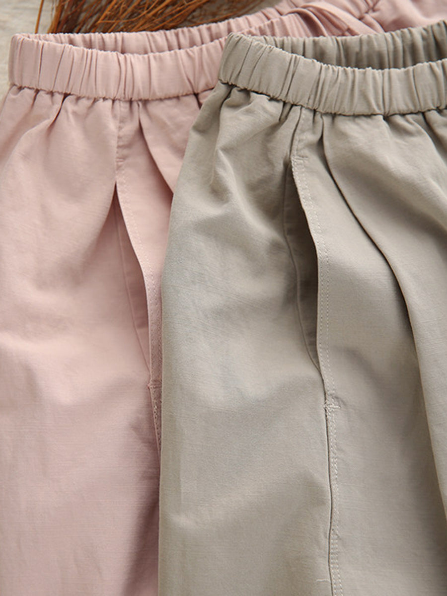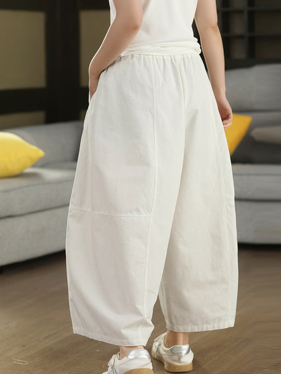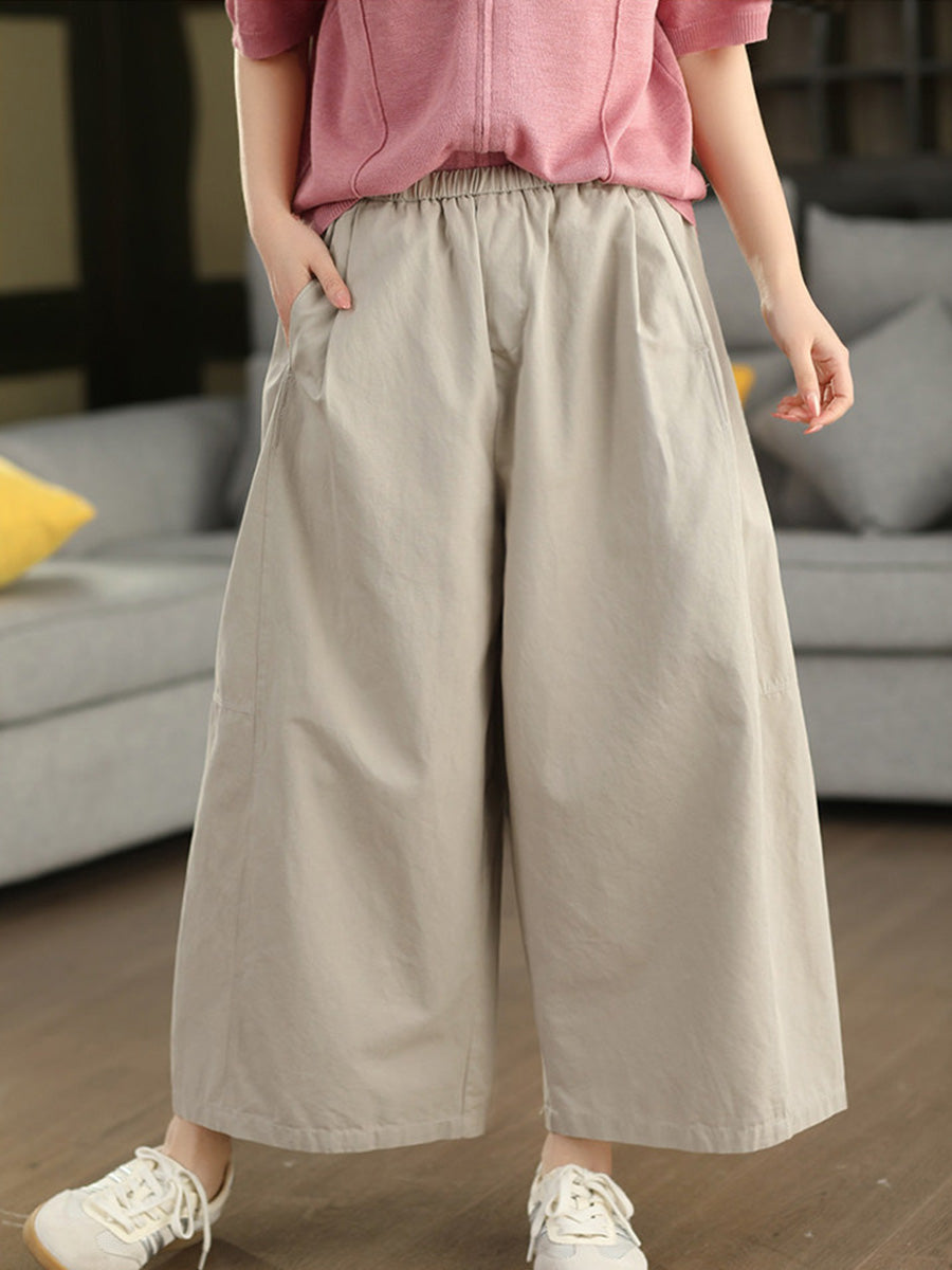 Women Summer Casual Pure Color Wide-leg 100%Cotton Pants