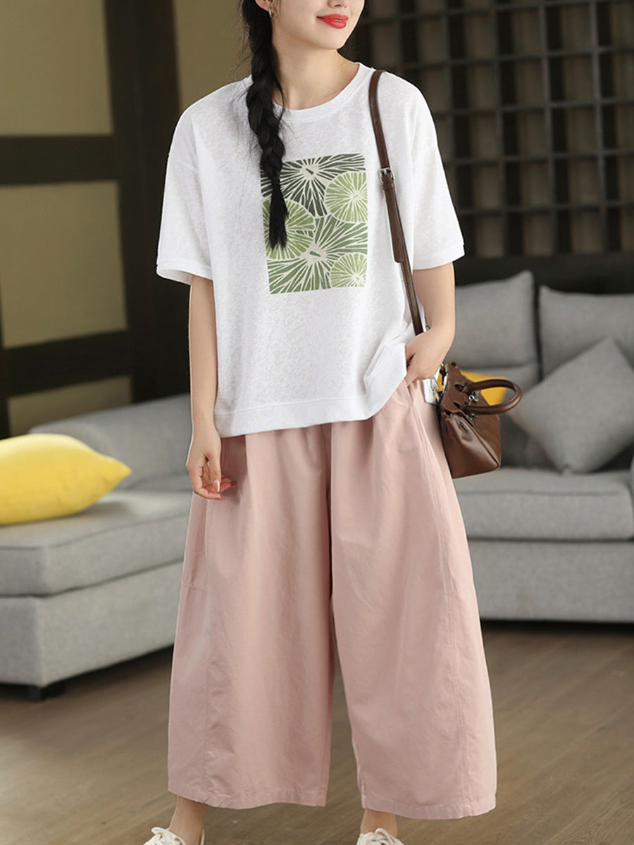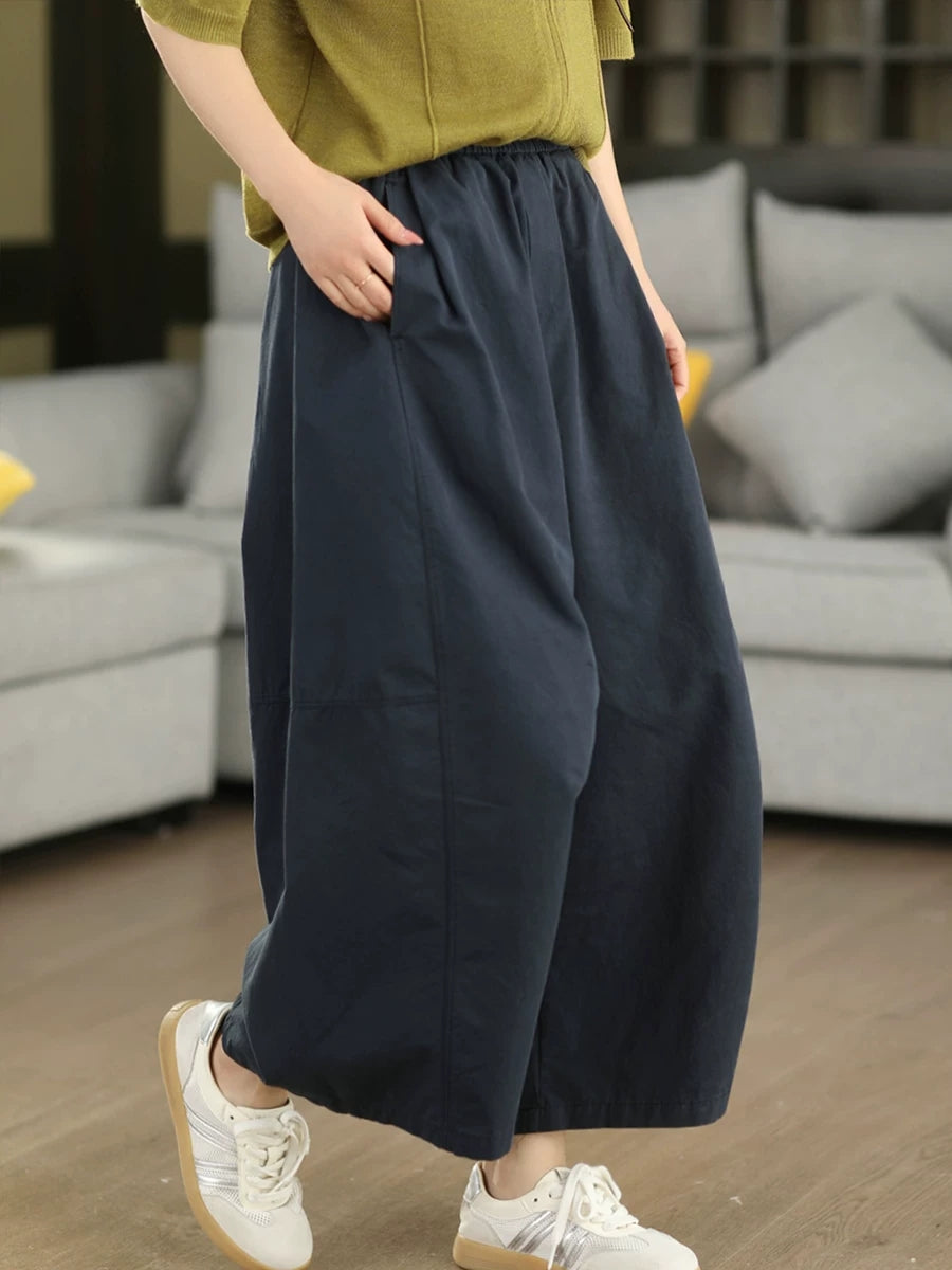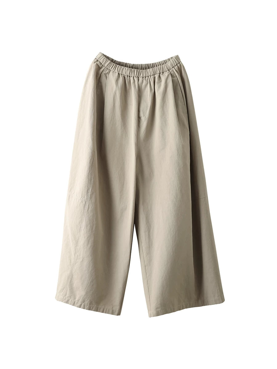 Women Summer Casual Pure Color Wide-leg 100%Cotton Pants