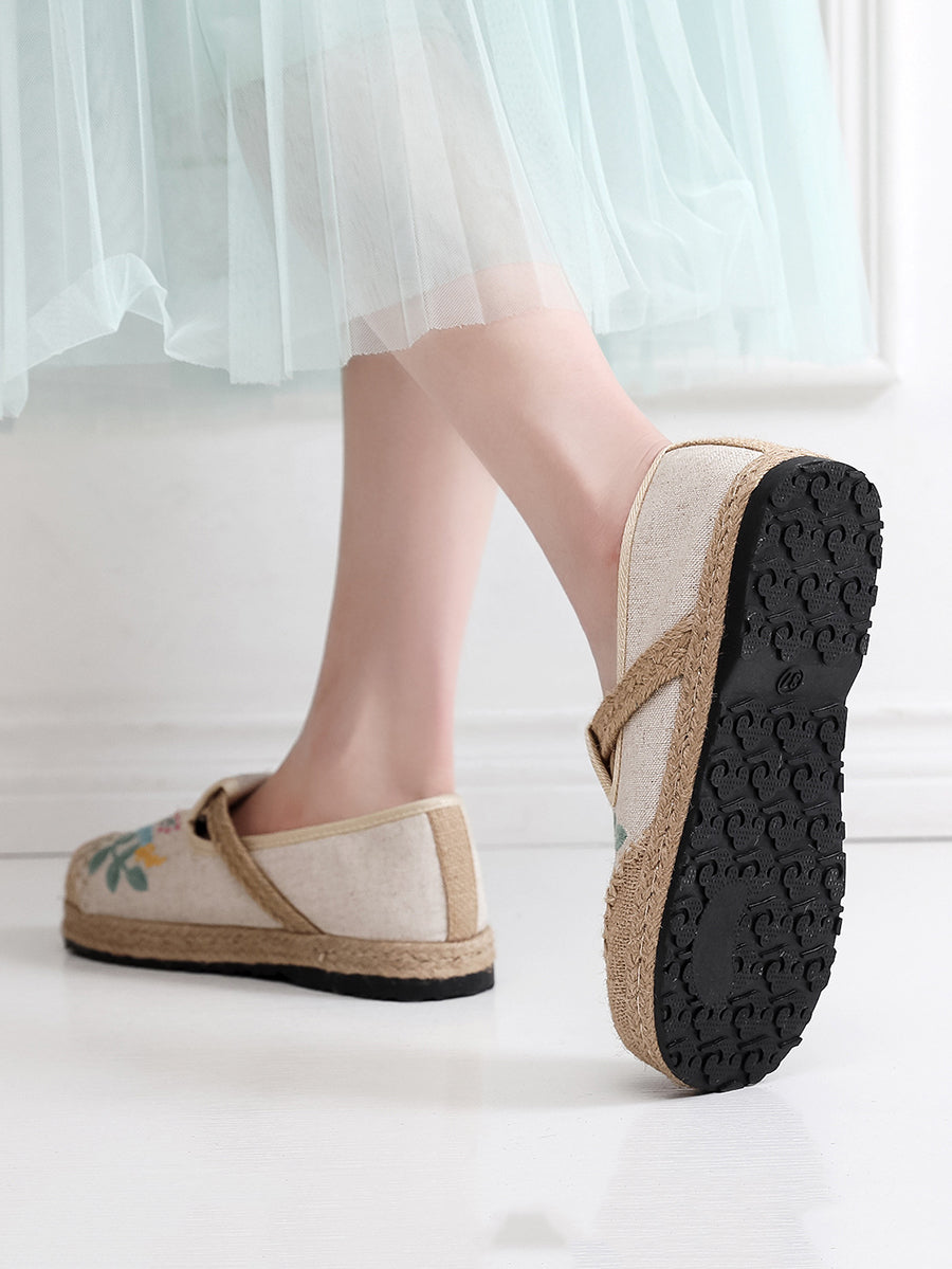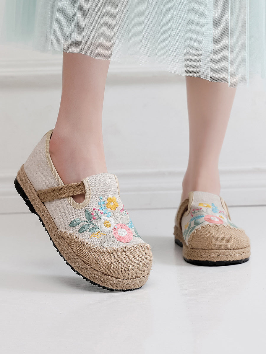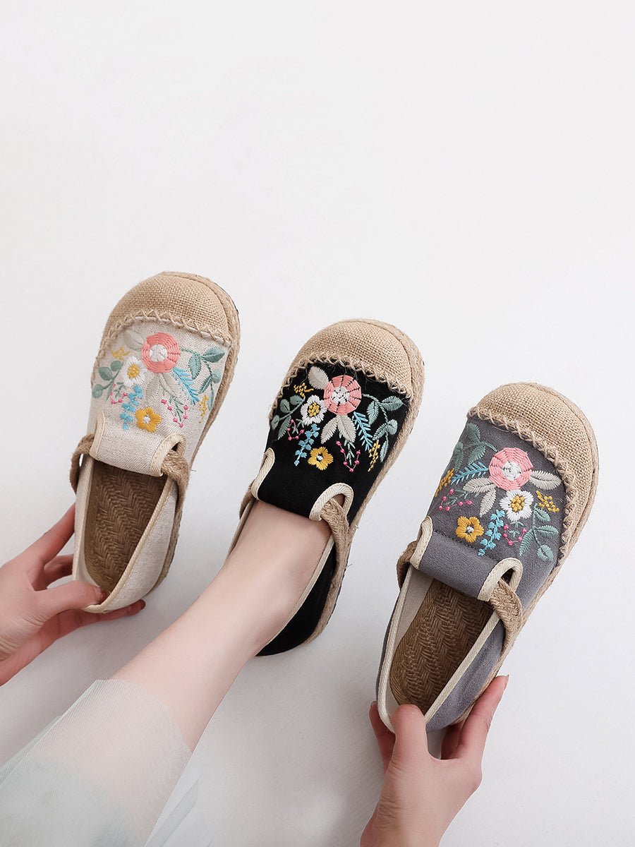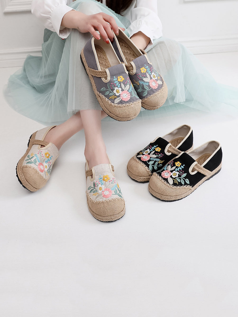 Women Summer Ethnic Flower Embroidery Linen Shoes