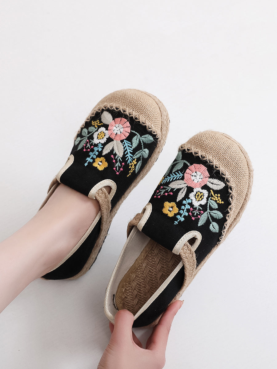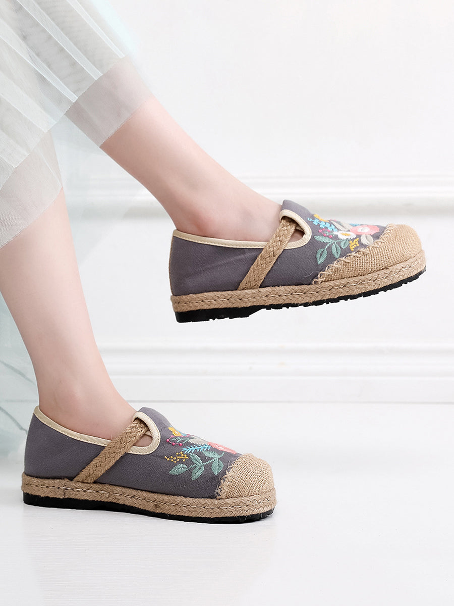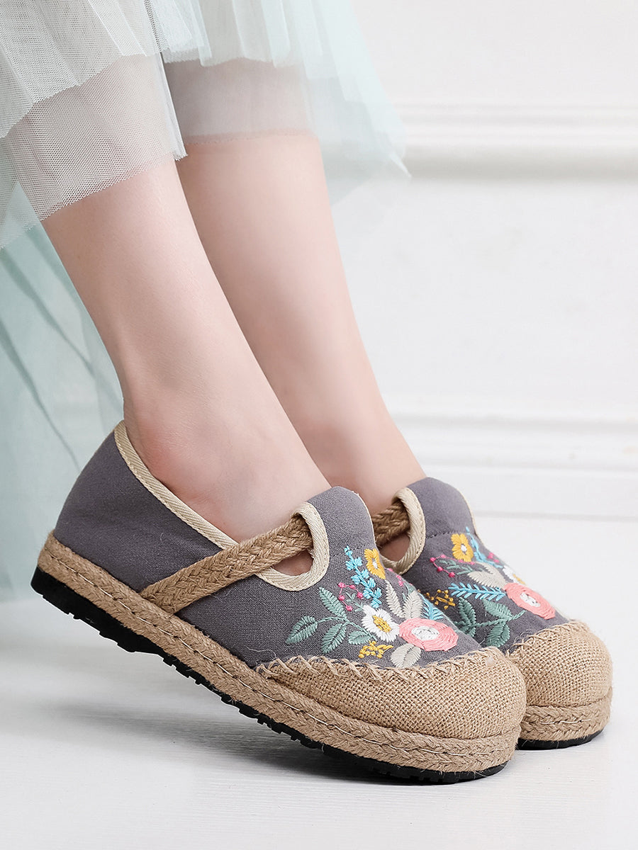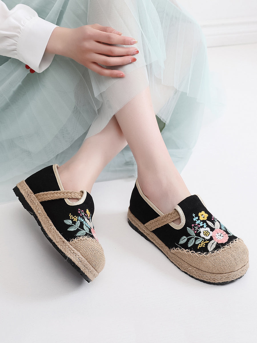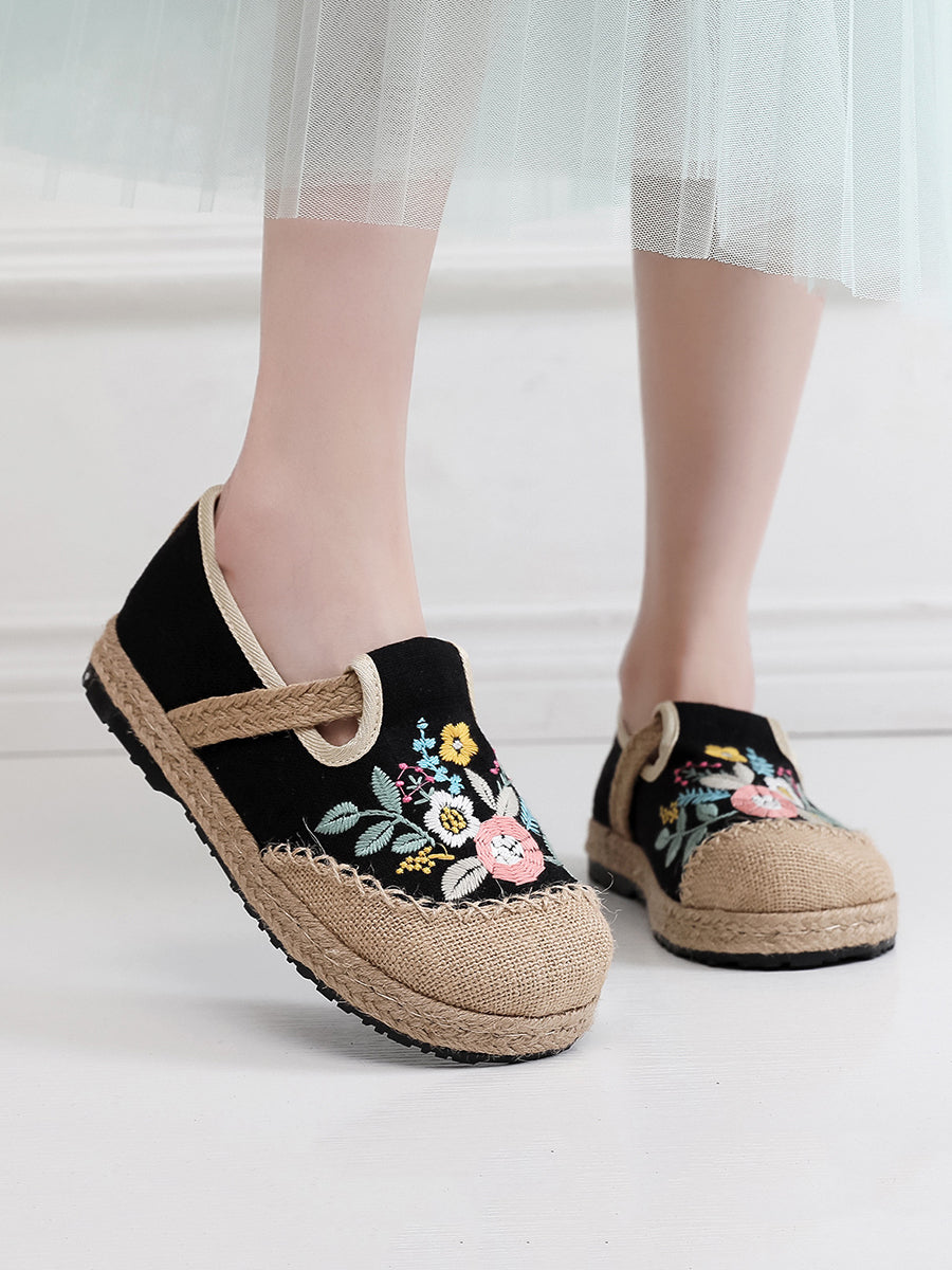 Women Summer Ethnic Flower Embroidery Linen Shoes