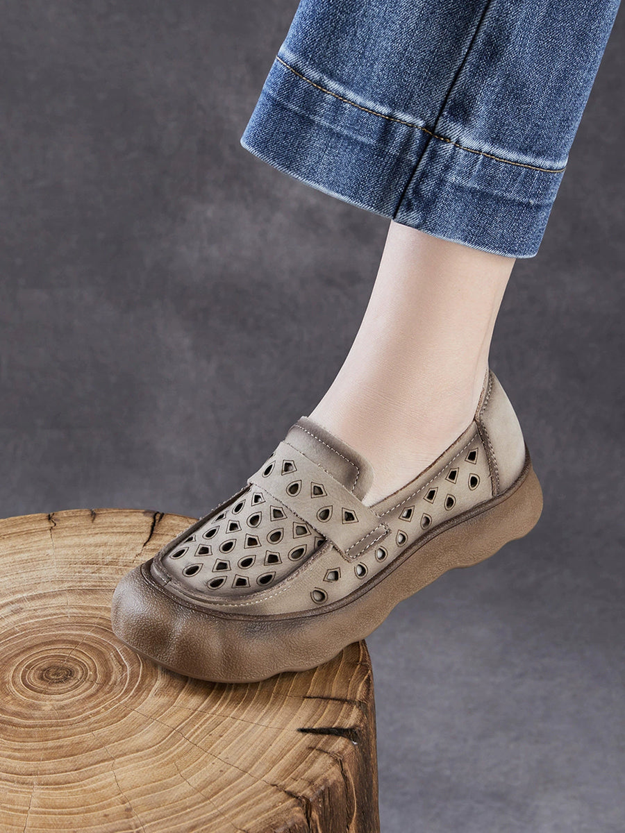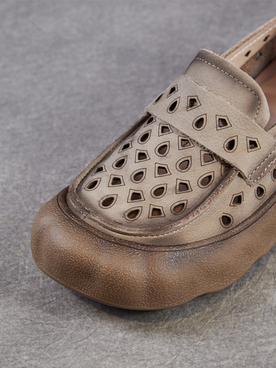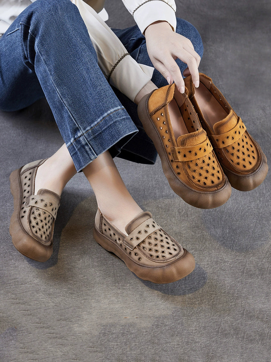 Women Summer Genuine Leather Hollow Out Flat Shoes