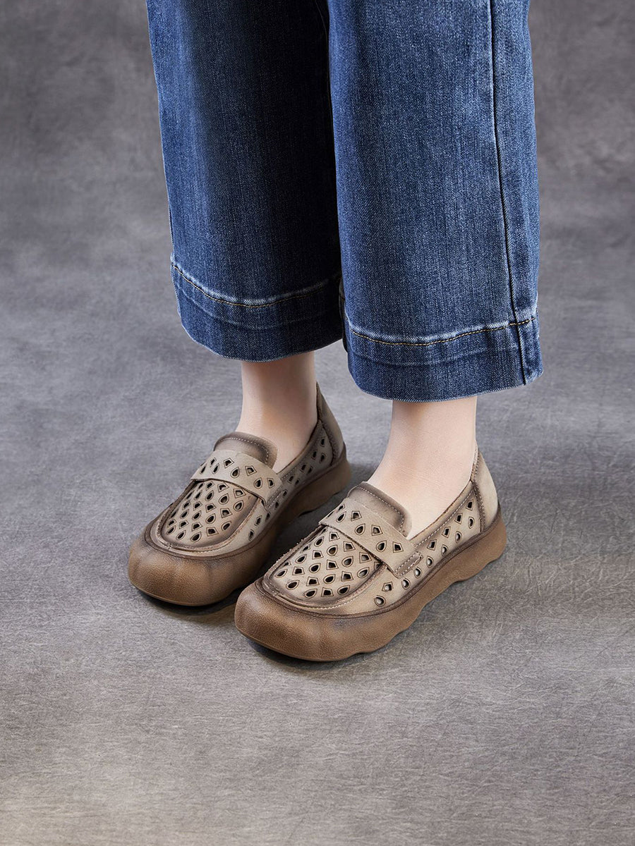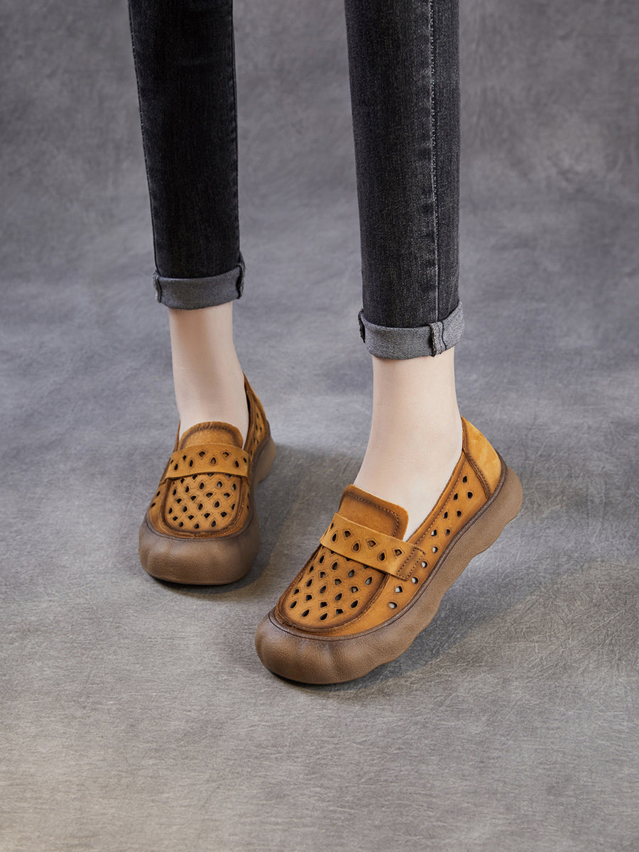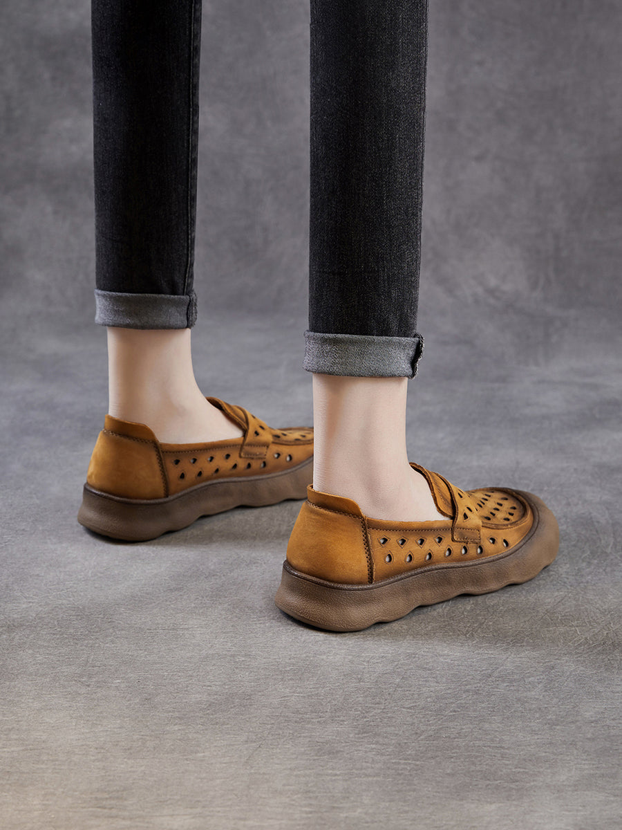Women Summer Genuine Leather Hollow Out Flat Shoes
