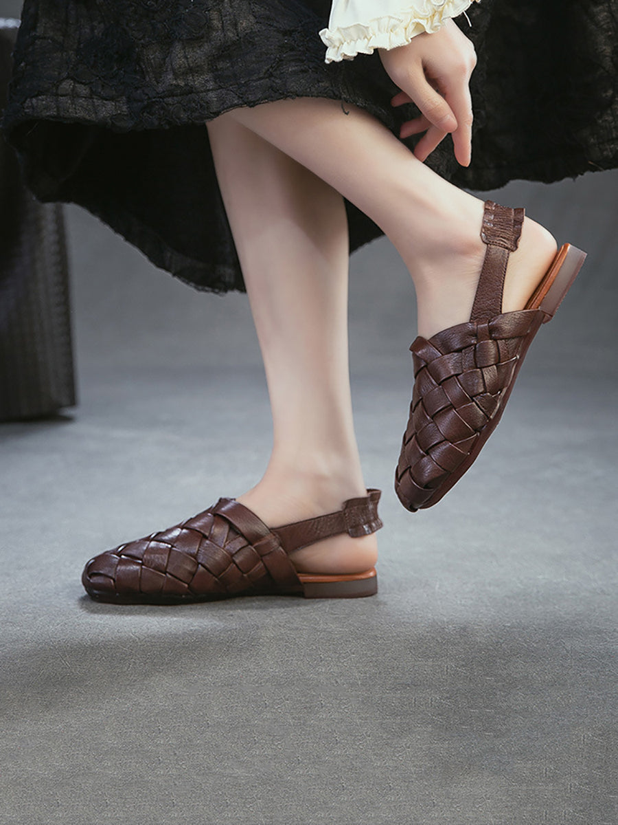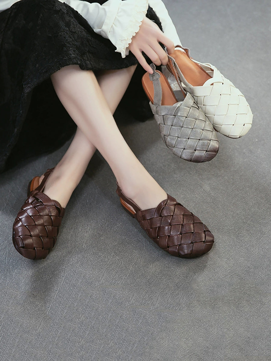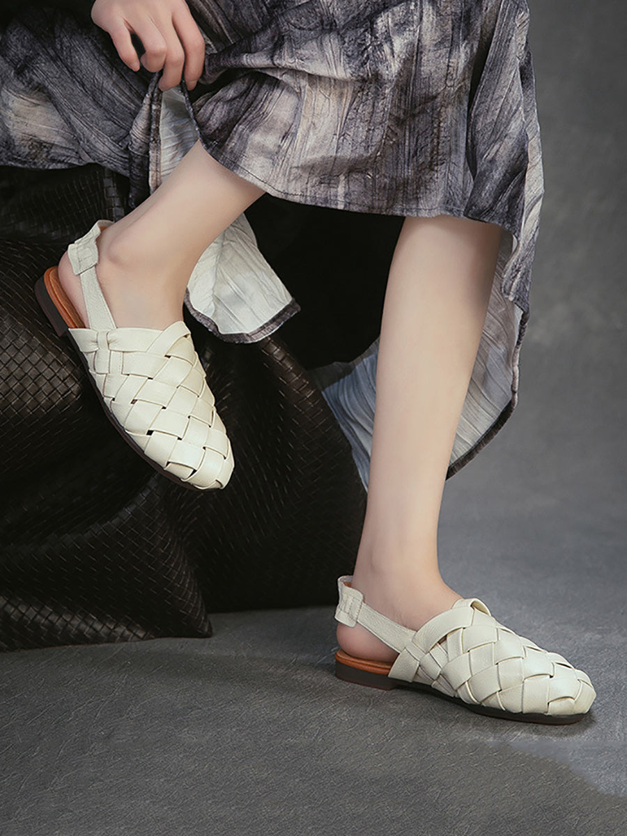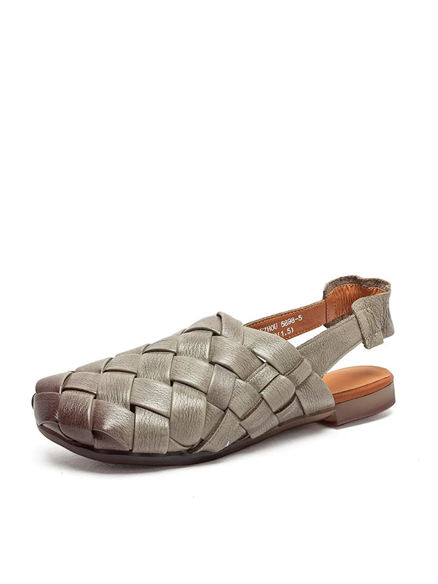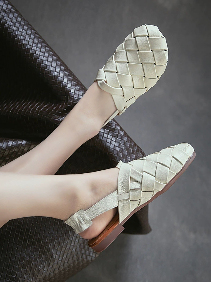 Women Summer Genuine Leather Weave Sandals