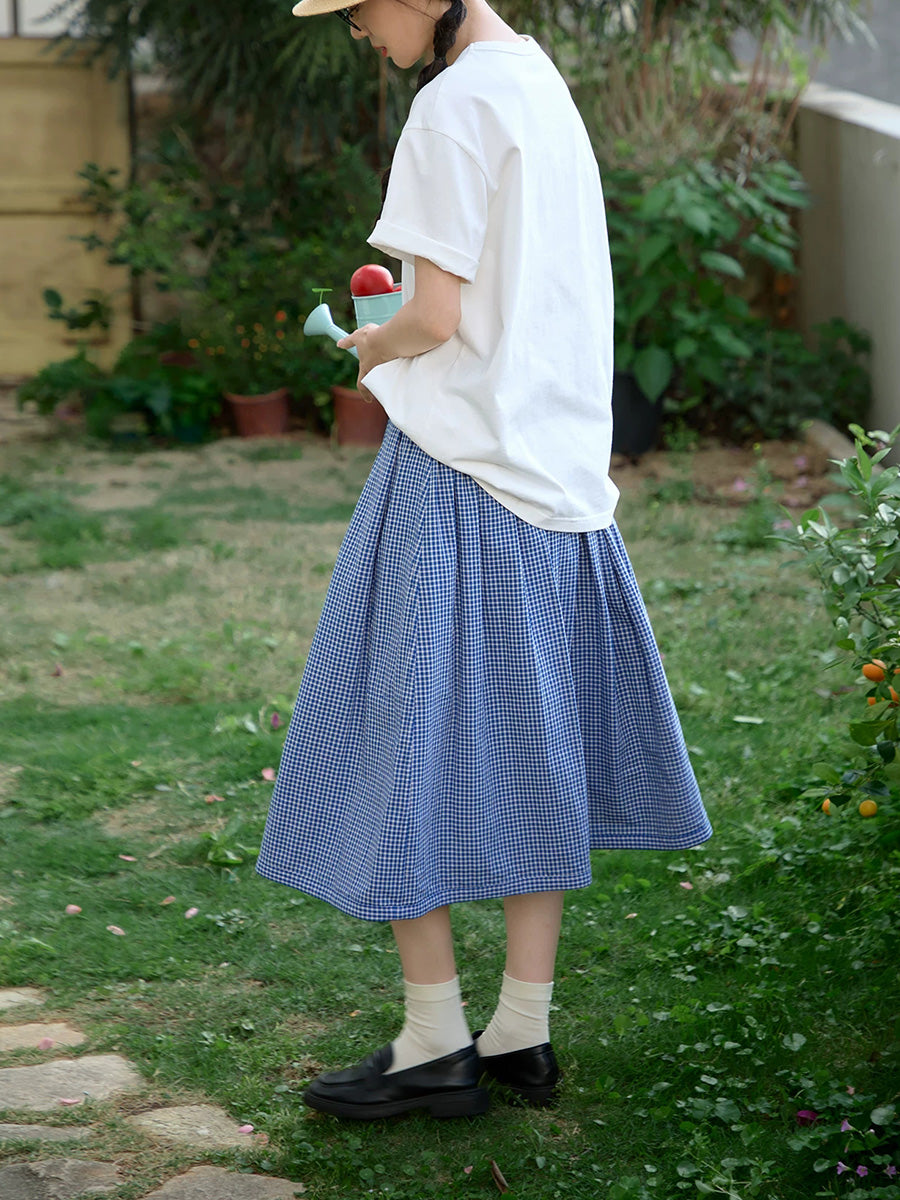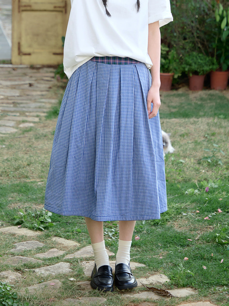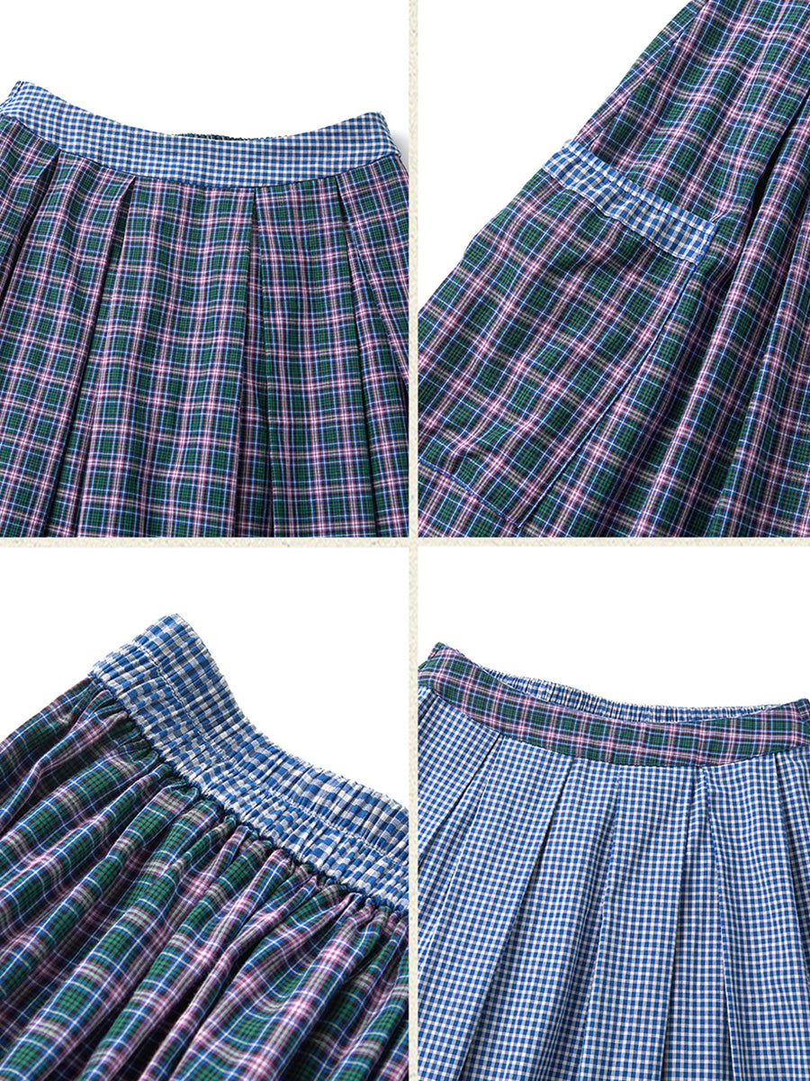 Women Summer Plaid Two-side Wearing 100%Cotton Skirt