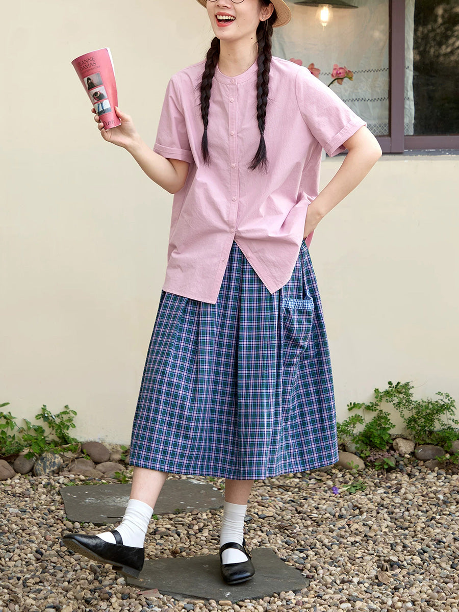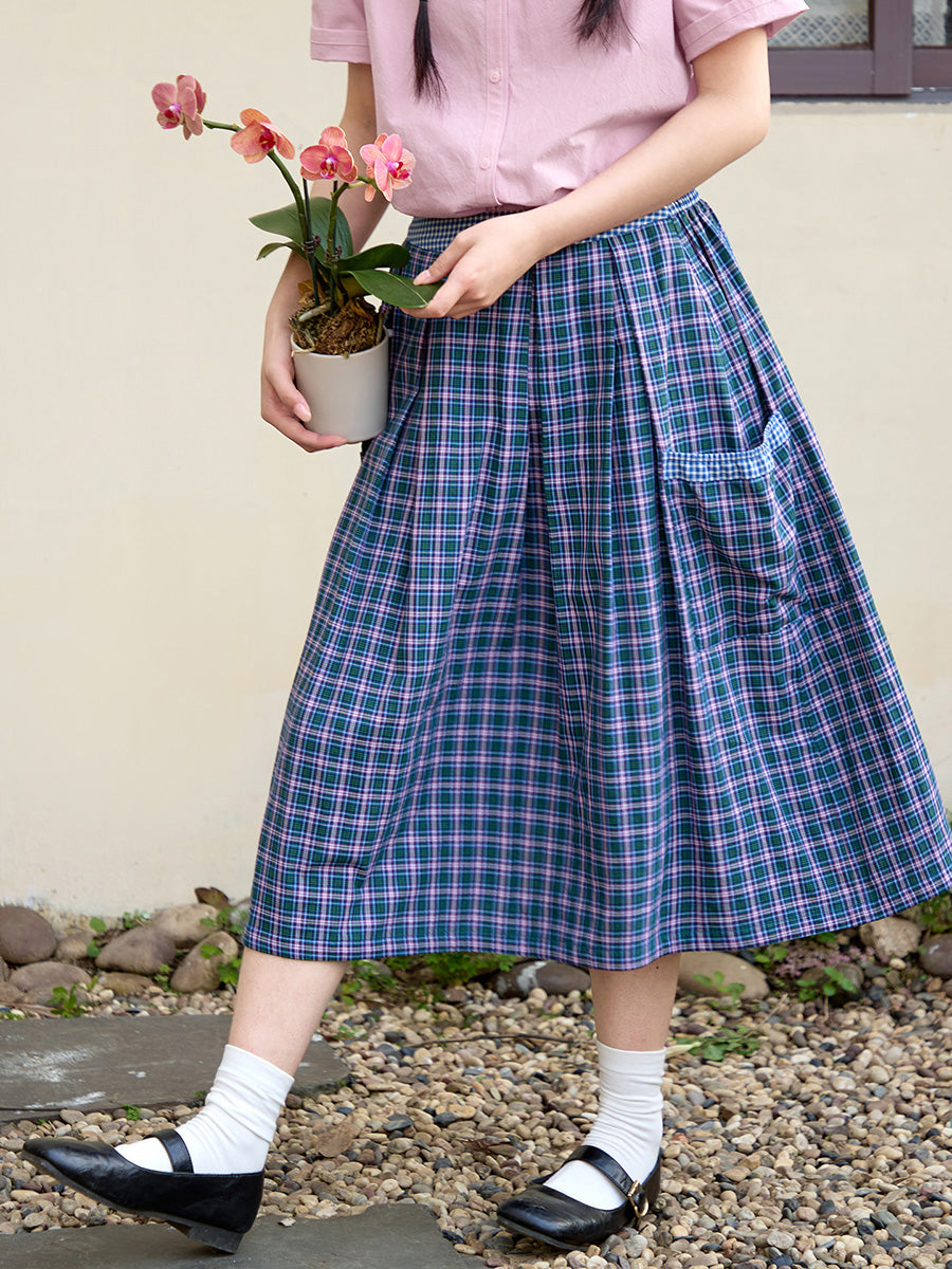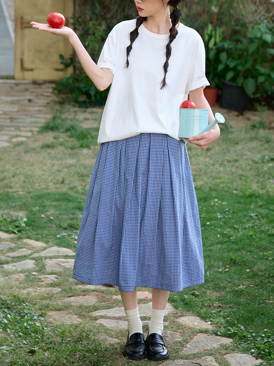 Women Summer Plaid Two-side Wearing 100%Cotton Skirt