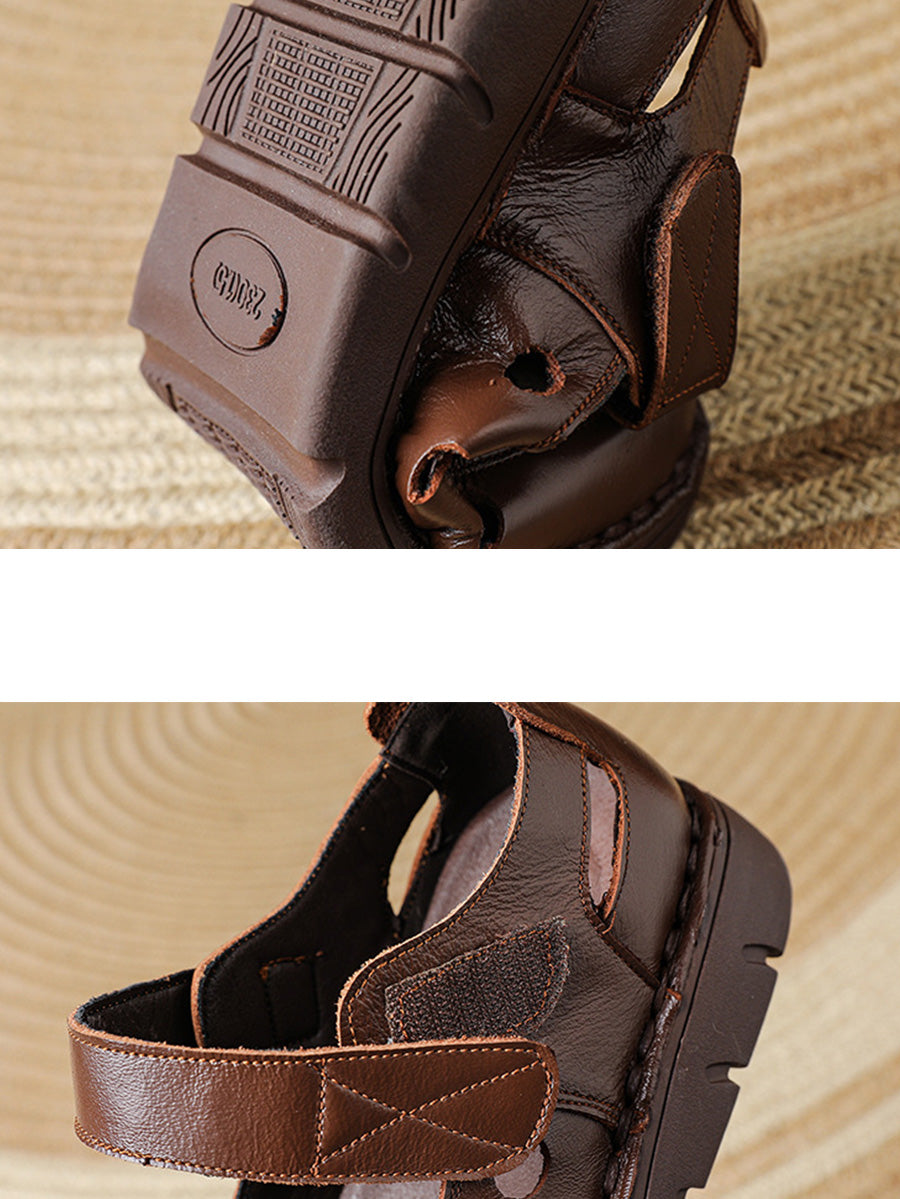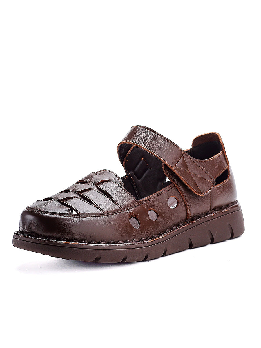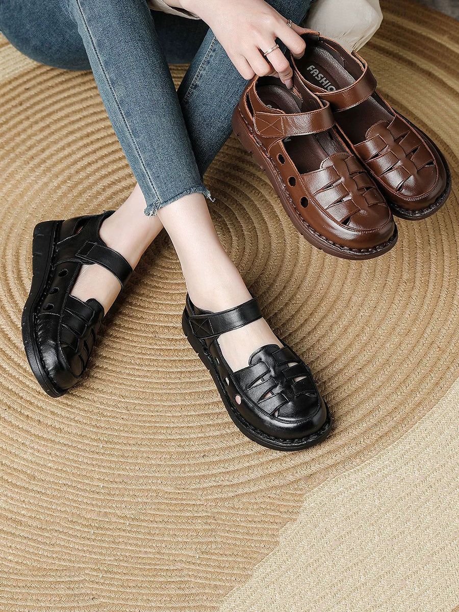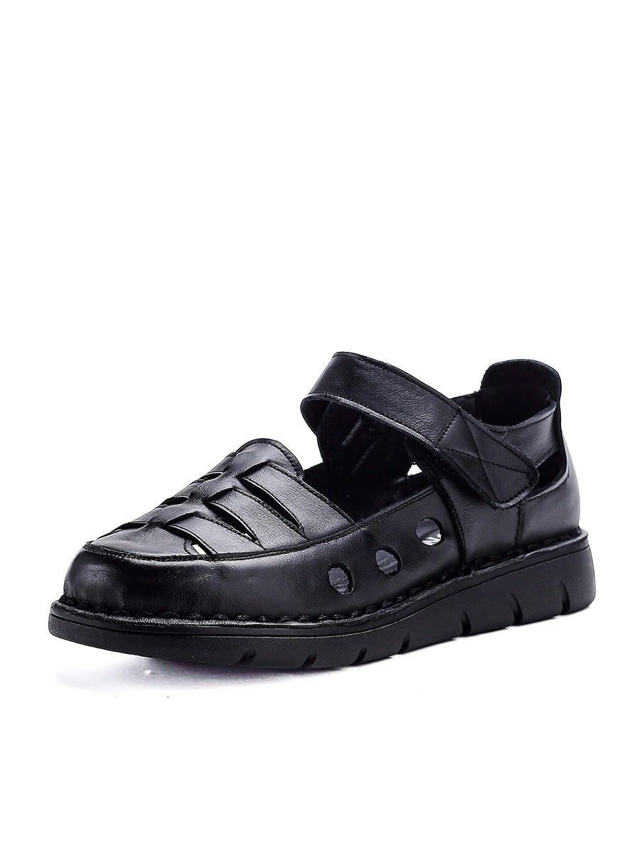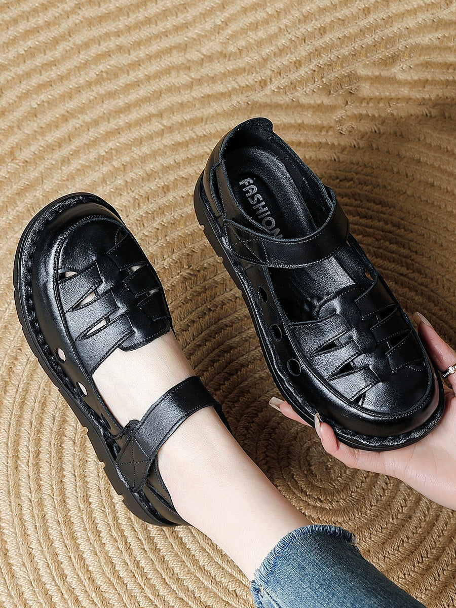 Women Summer Pure Color Genuine Leather Flat Sandals