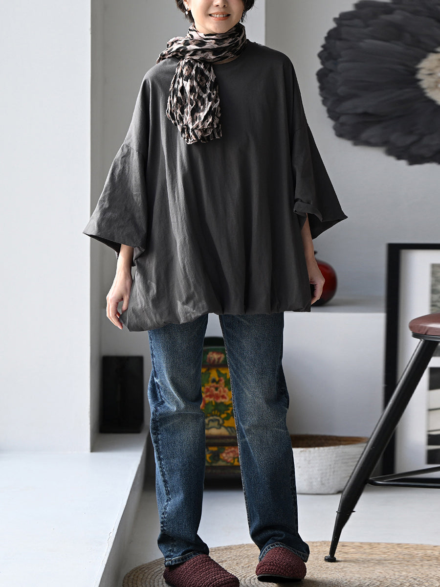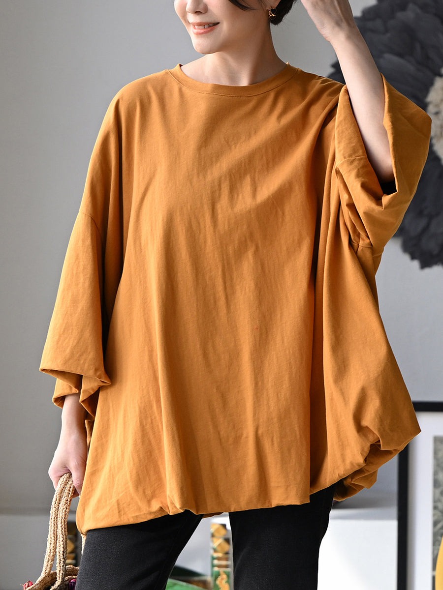 Women Summer Pure Color O-Neck 100%Cotton Blouse