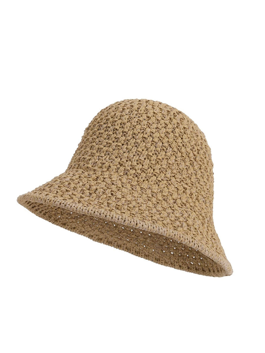 Women Summer Pure Color Weave Bucket Hat