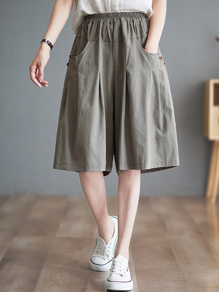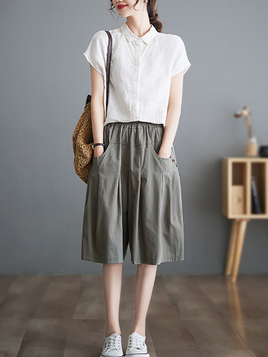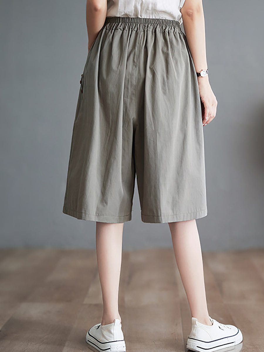 Women Summer Pure Color Wide-leg Middle Pants